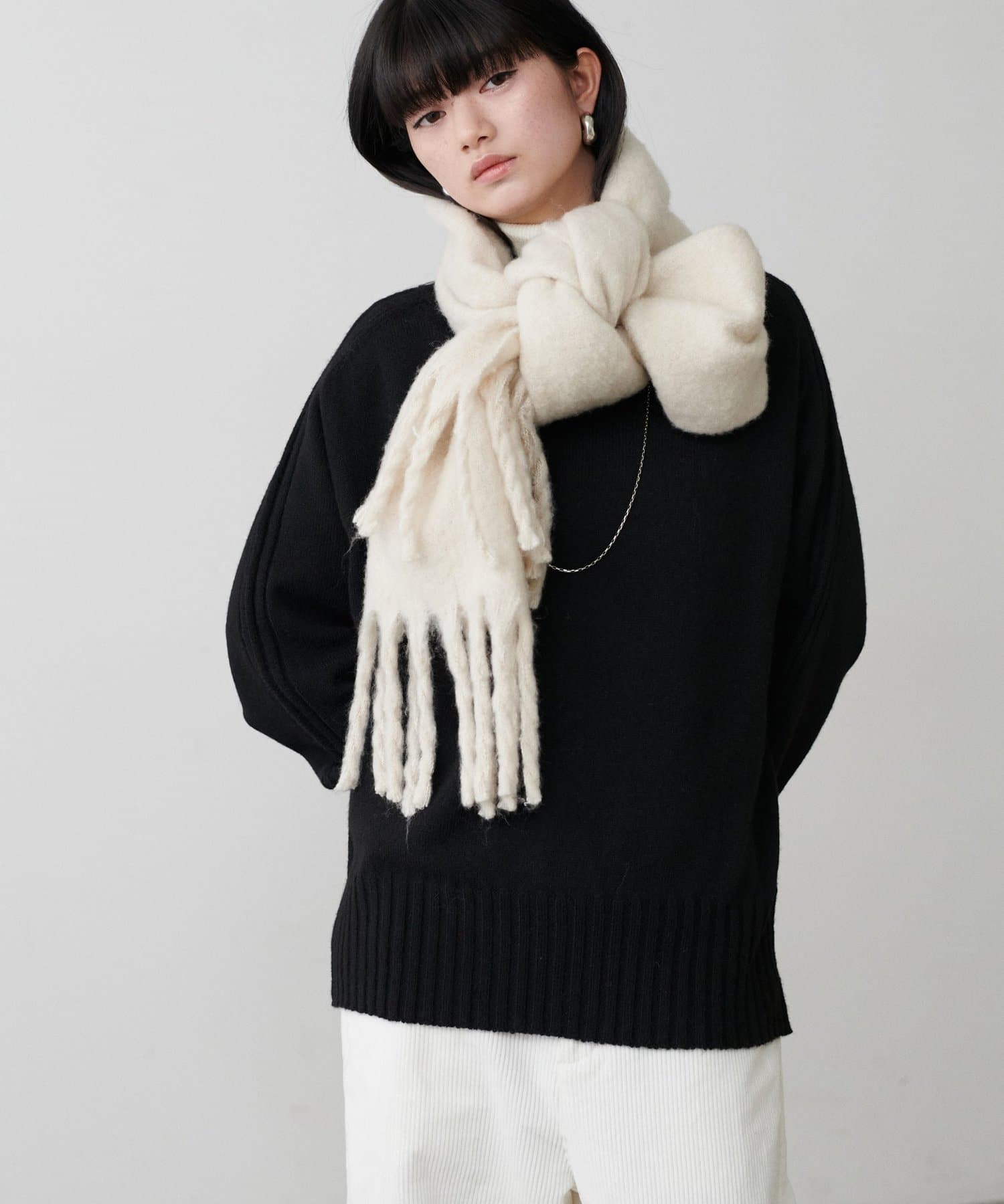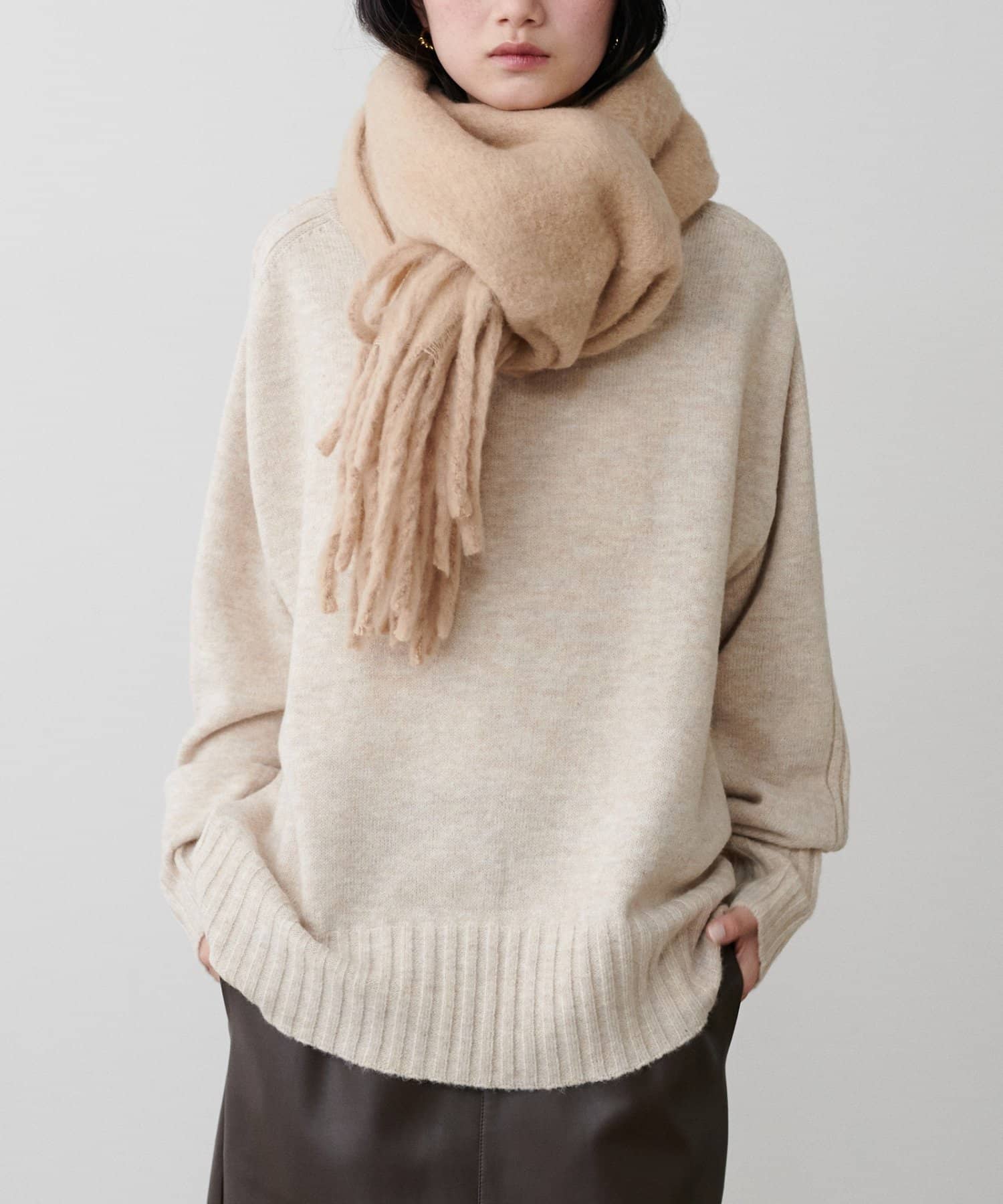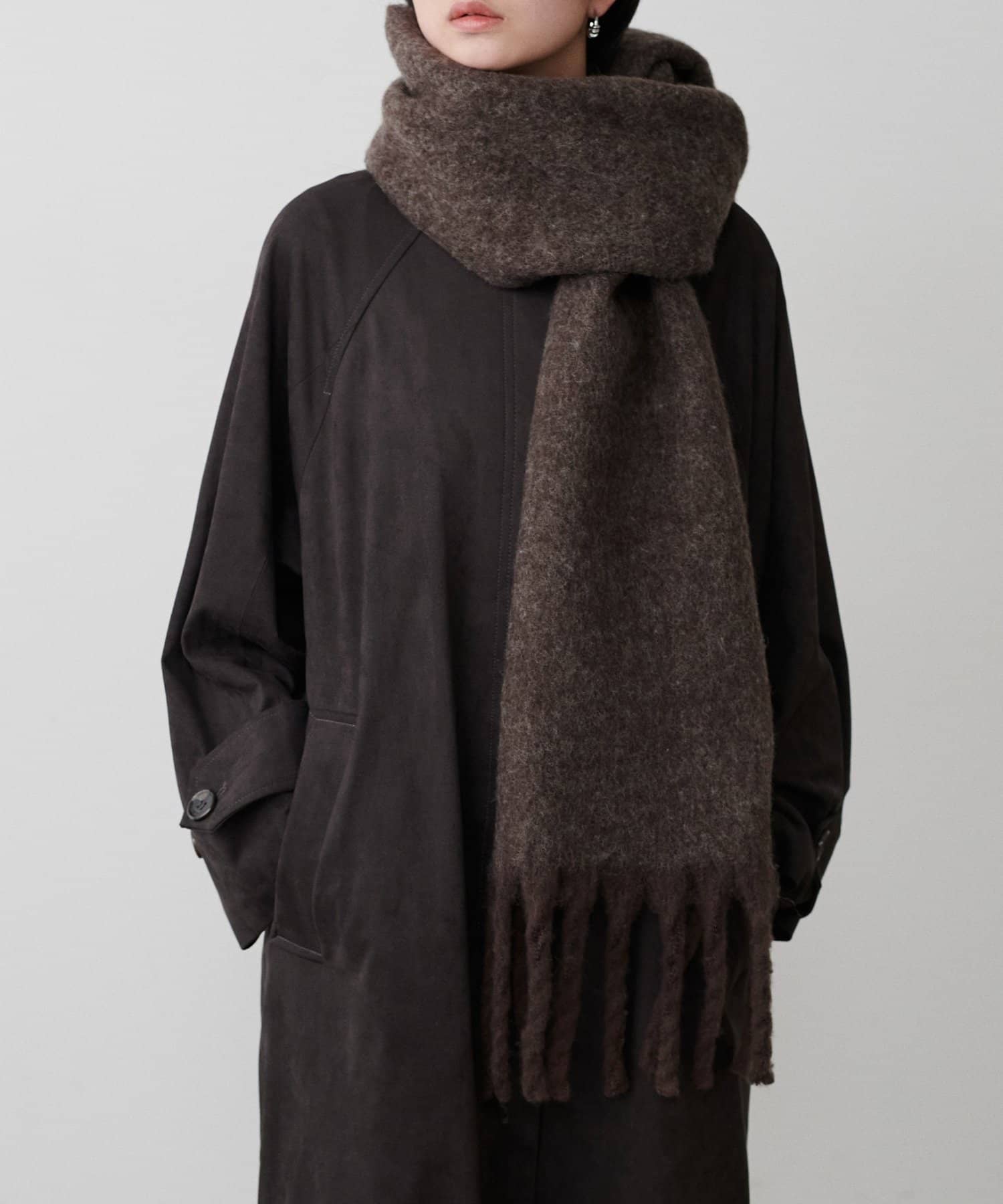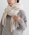 柔らかなブークレの質感と、ほのかなあたたかみが魅力のウール混マフラー。