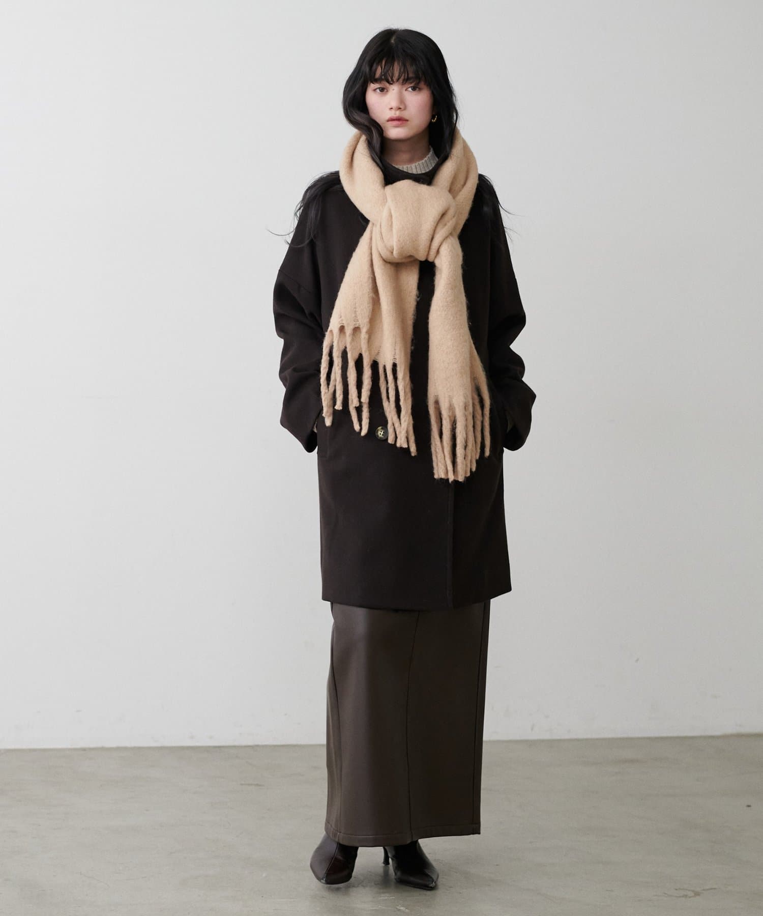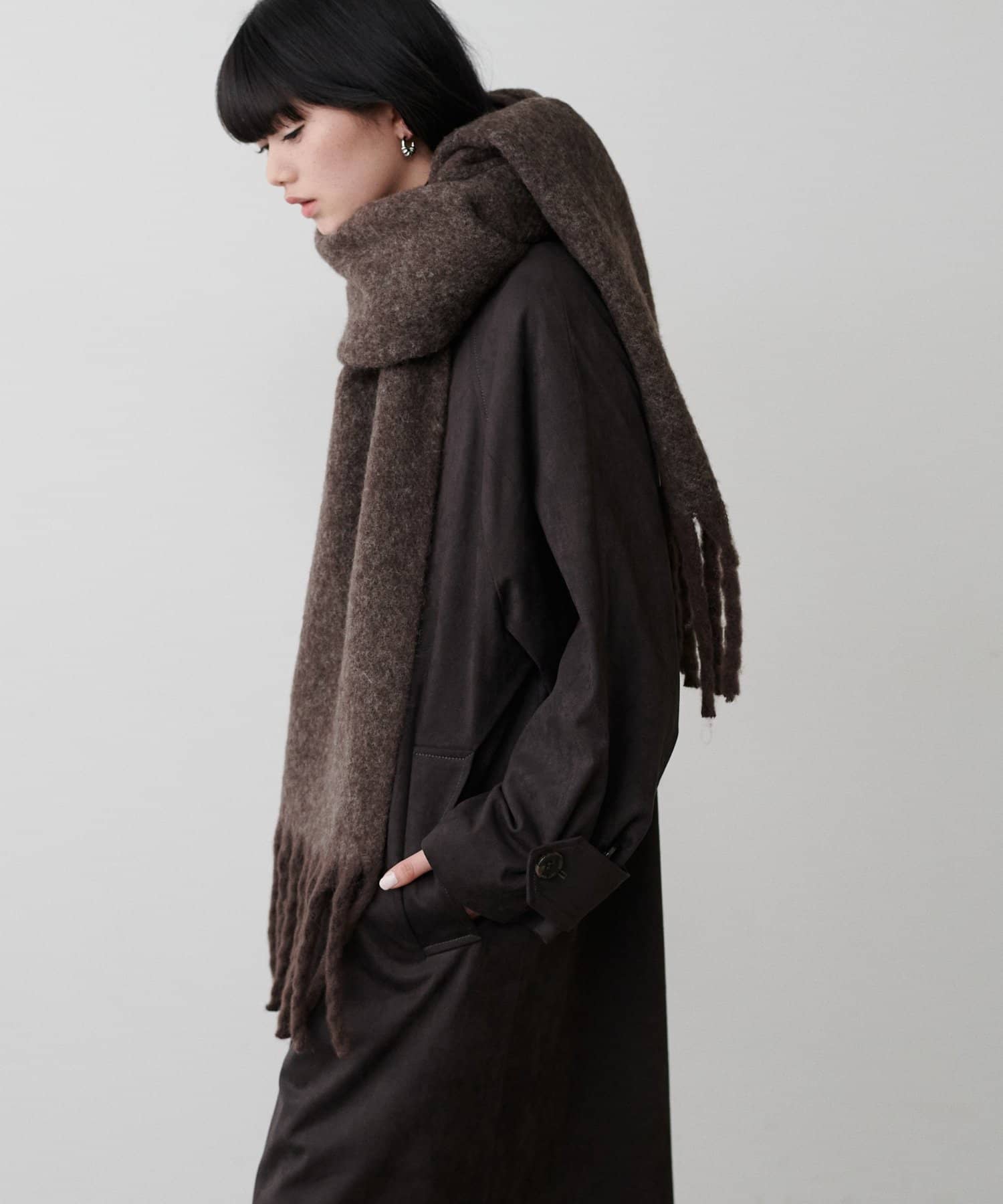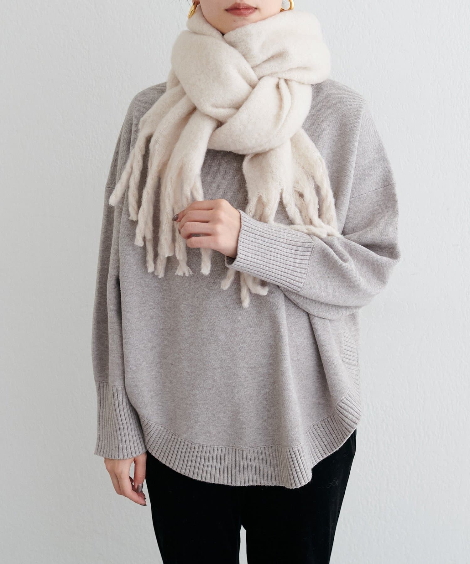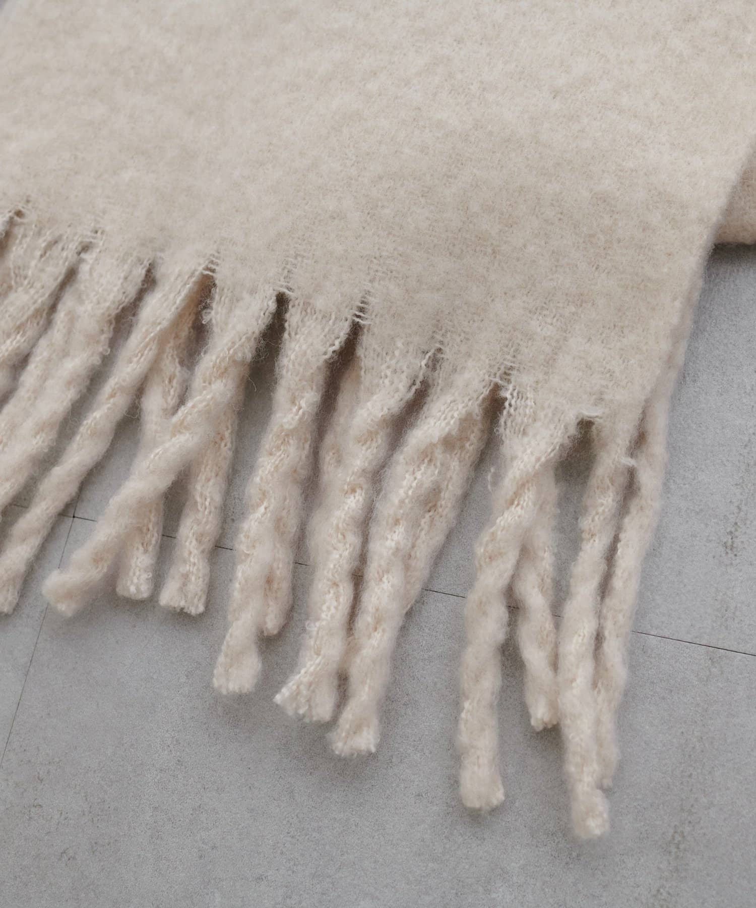 柔らかなブークレの質感と、ほのかなあたたかみが魅力のウール混マフラー。