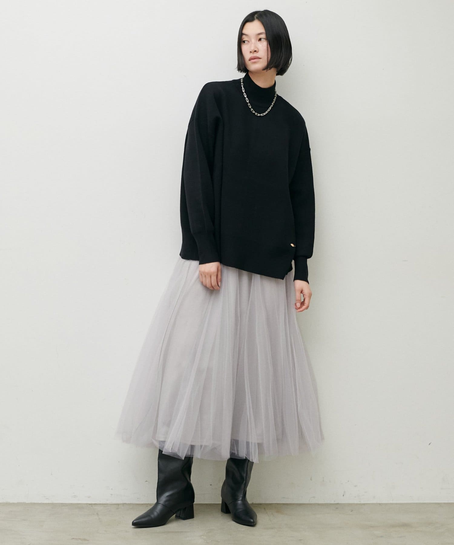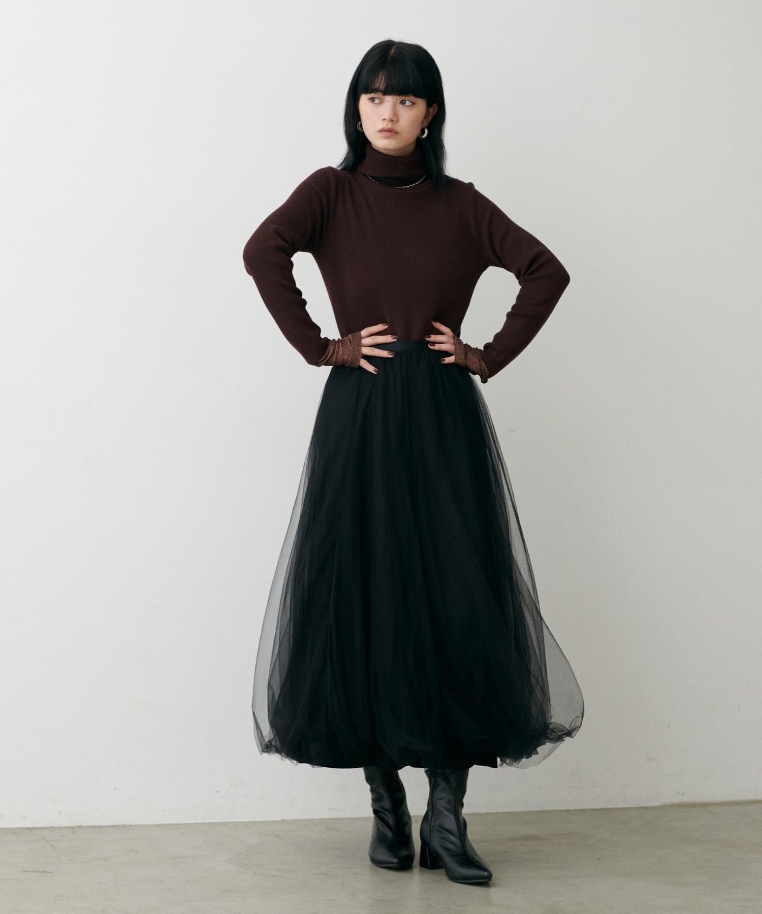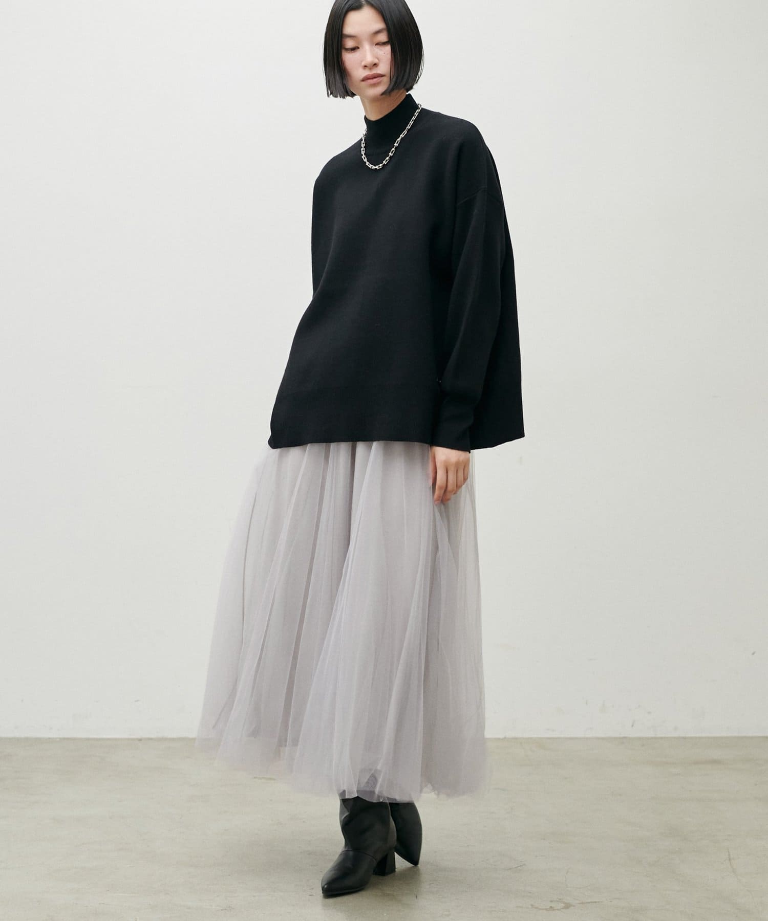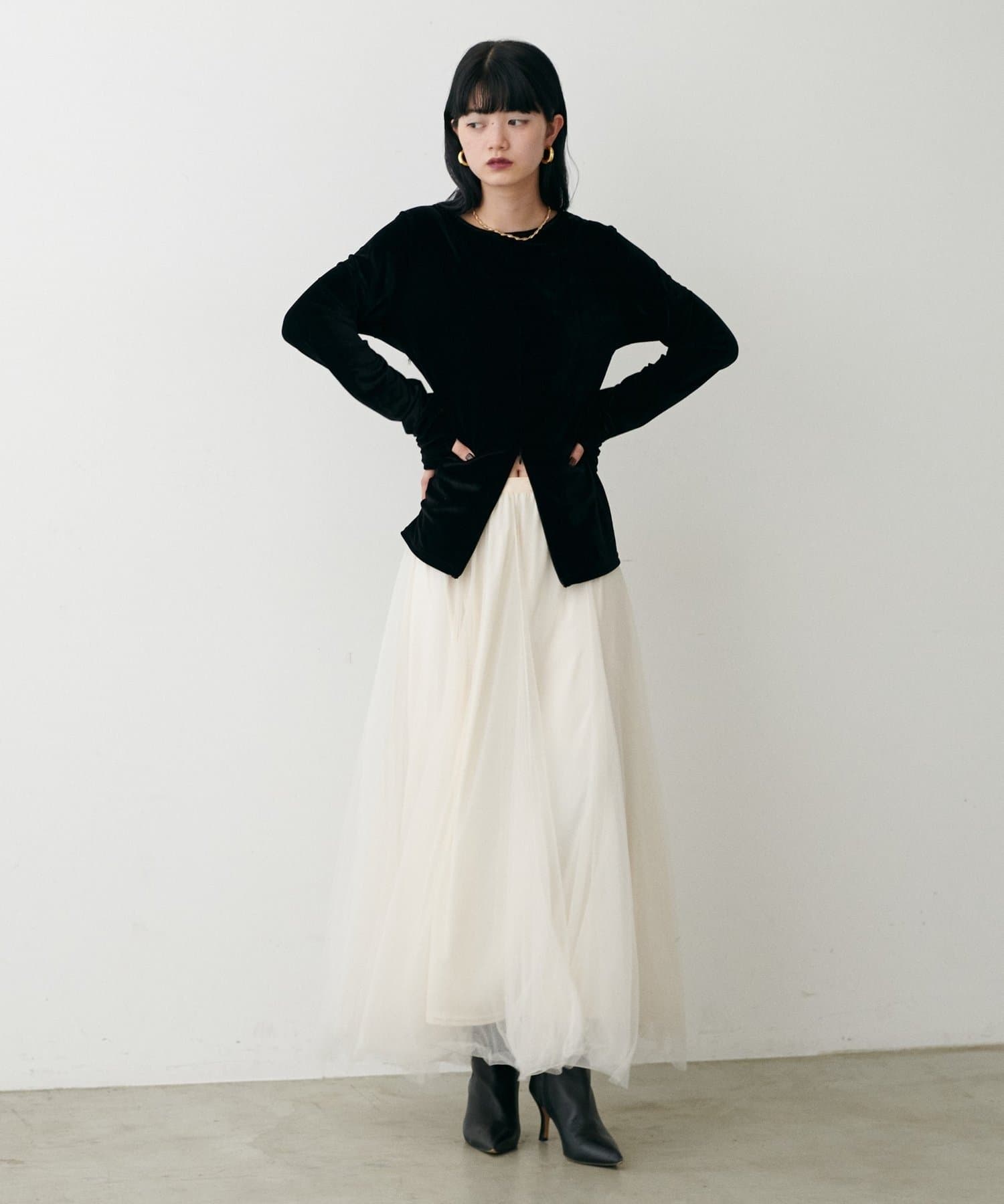 チュールを2枚重ねてふんわりとボリュームを持たせたエレガントなフレアスカート。