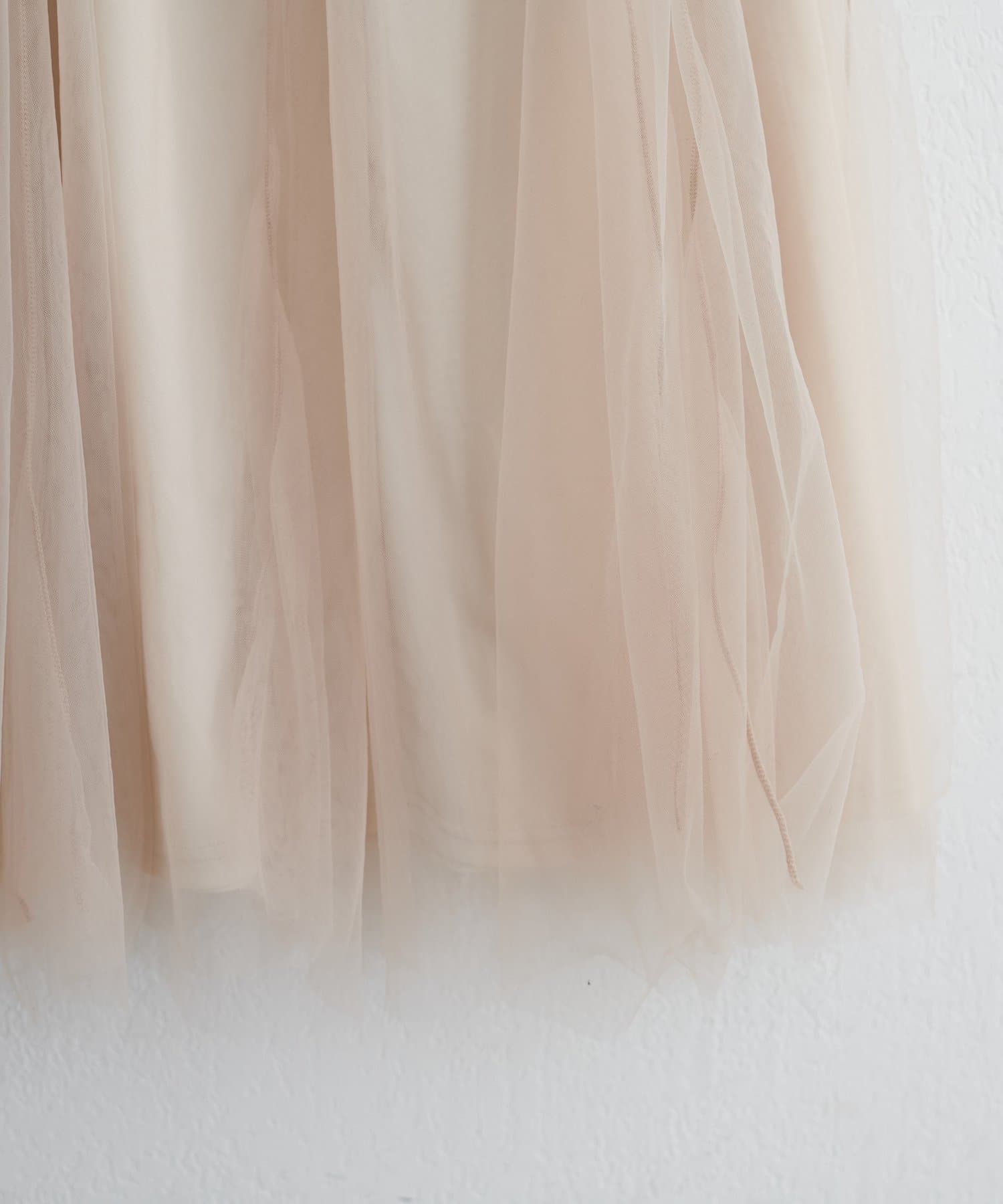 裾にかけてふんだんにチュールを使用し、