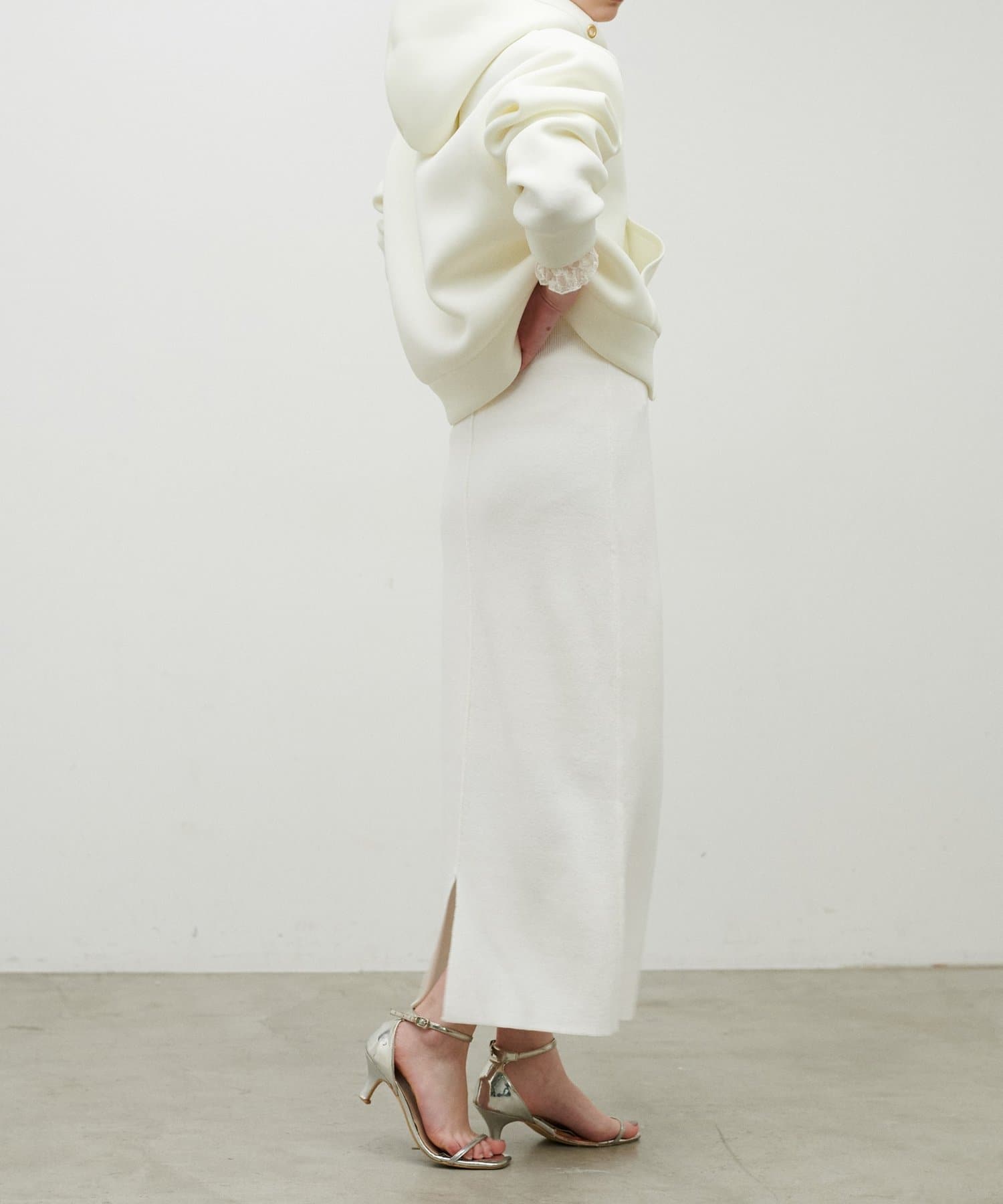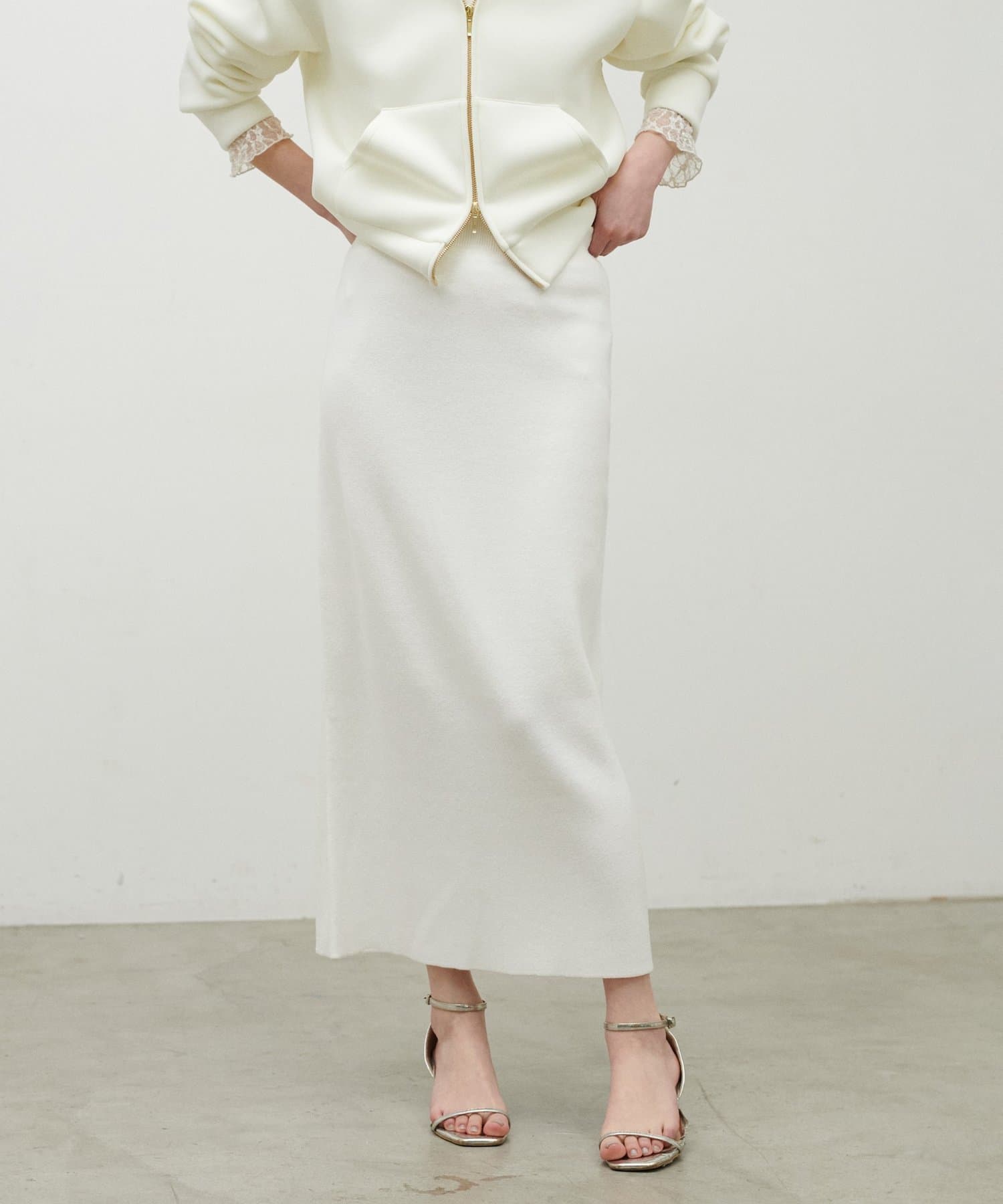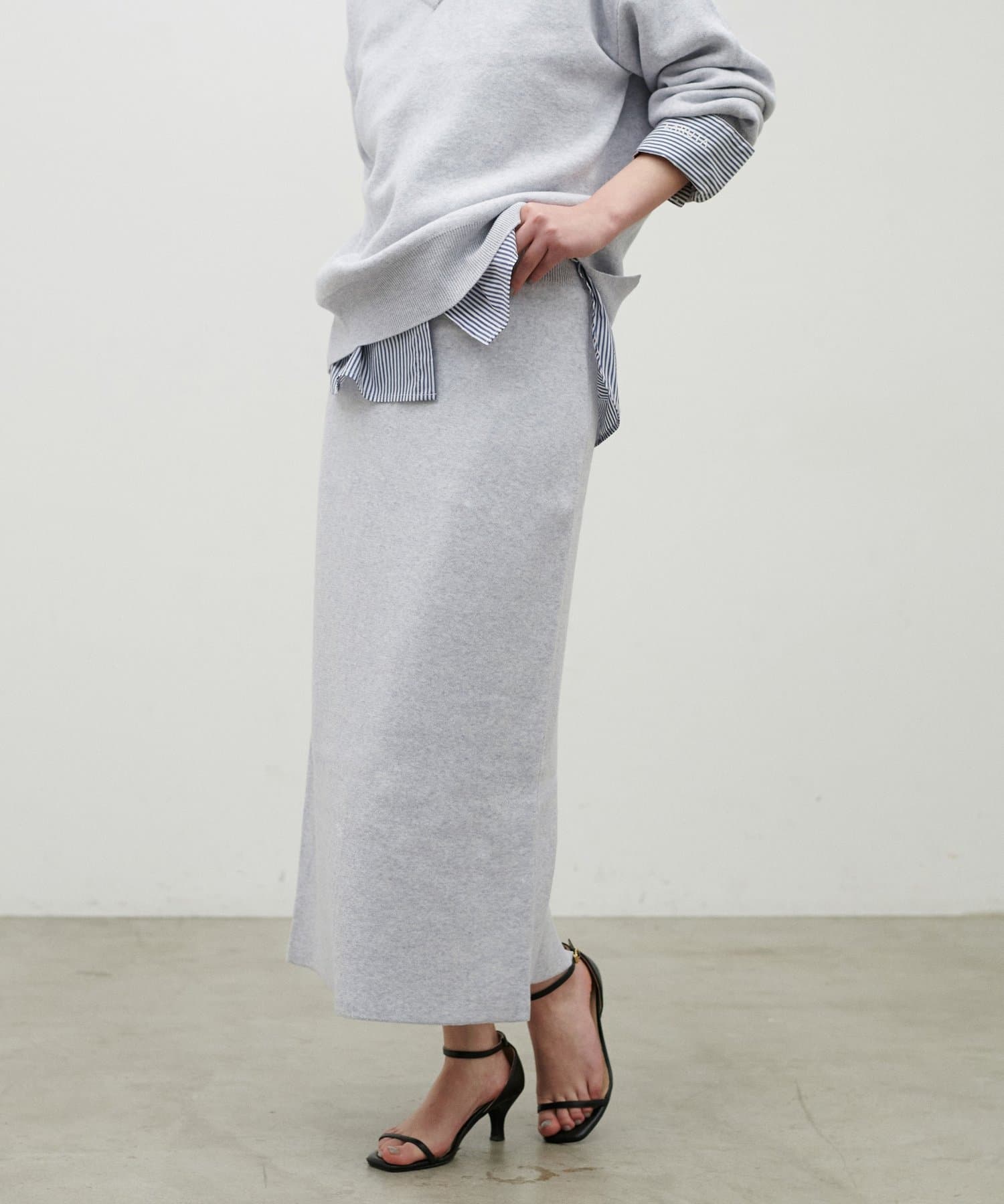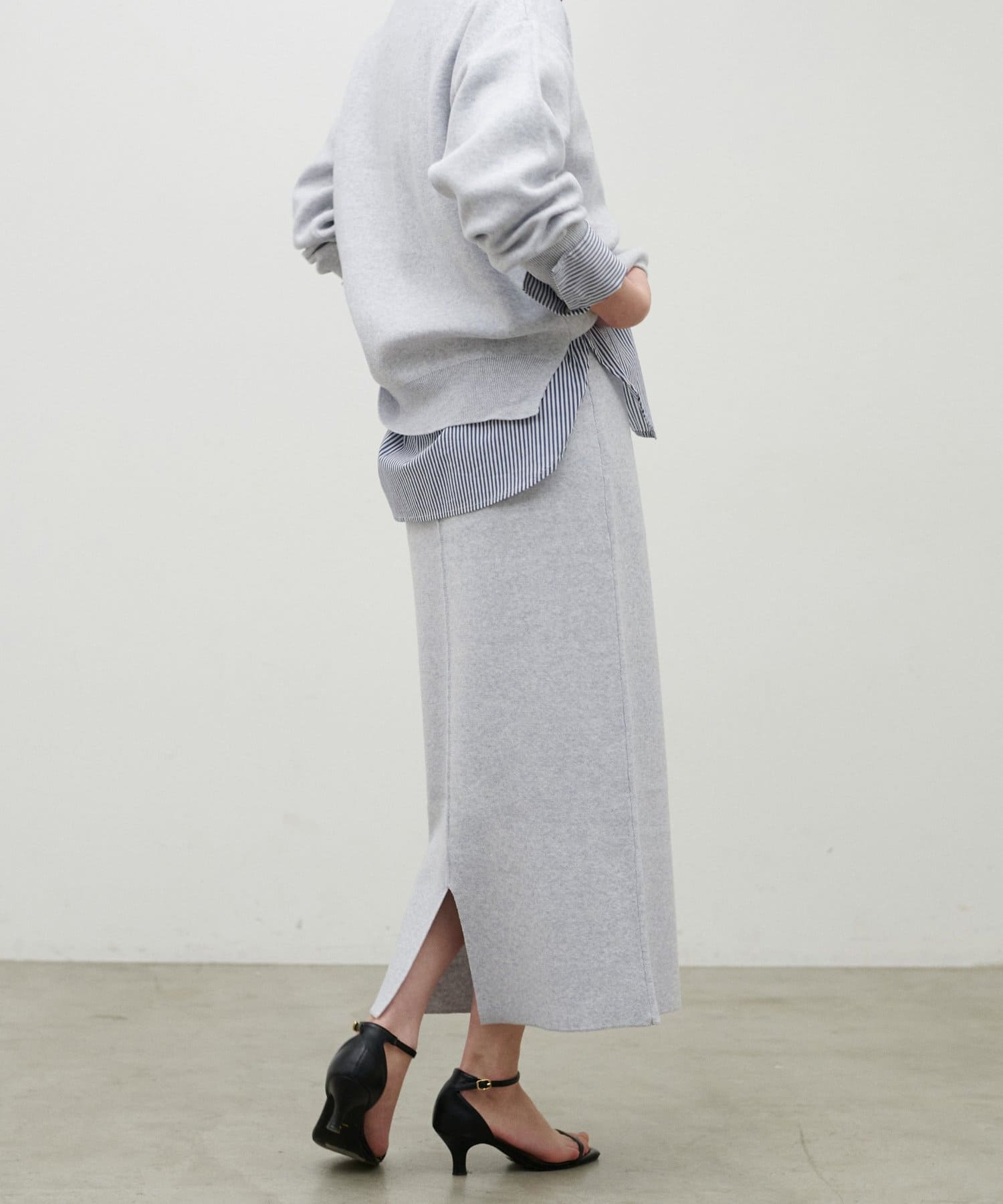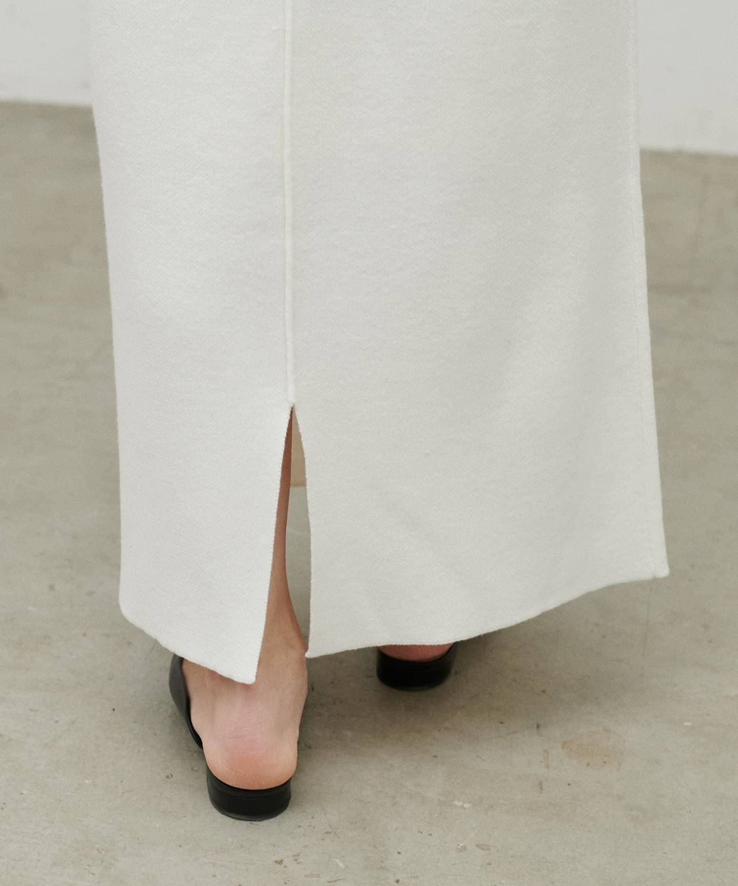 スウェットのような柔らかな着心地と、ダブルジャガードならではのきれいな表面感が魅力のニットスカート。