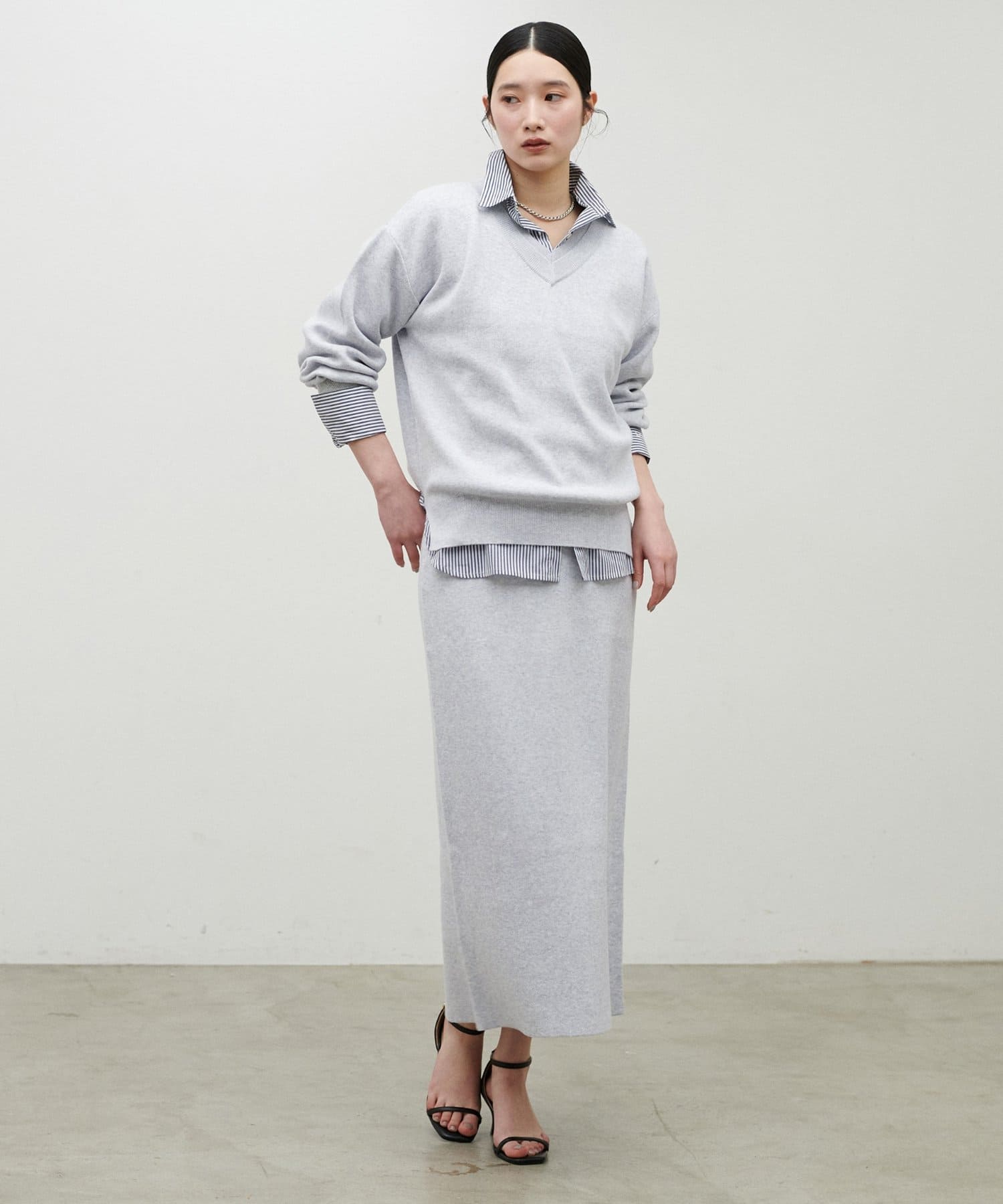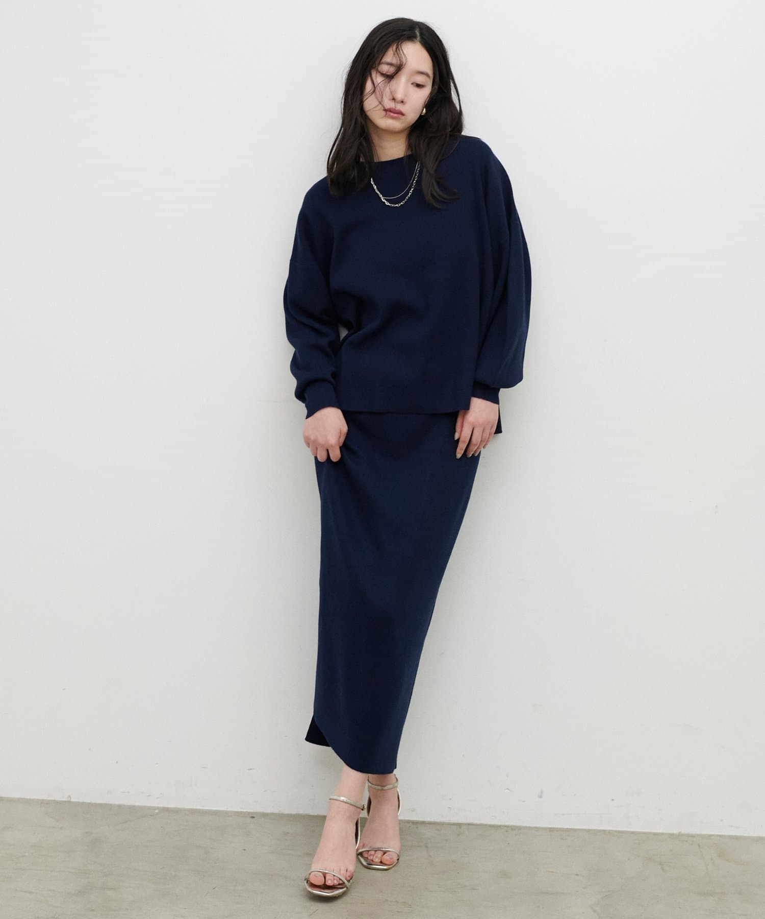 同シリーズのニットプルオーバーと合わせた統一感のあるスタイルがおすすめ。