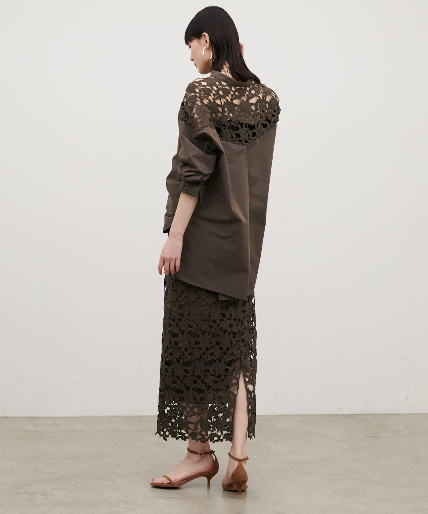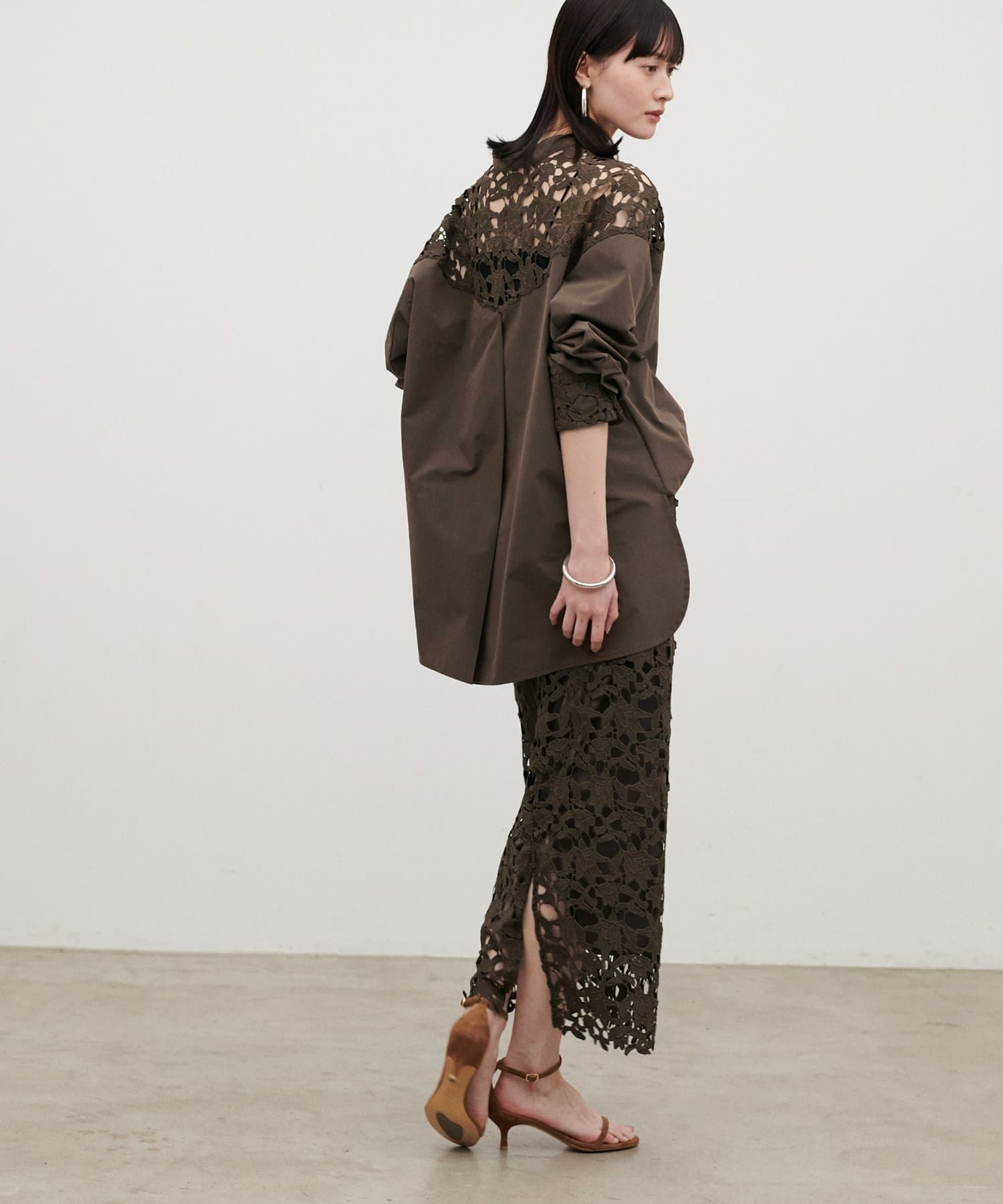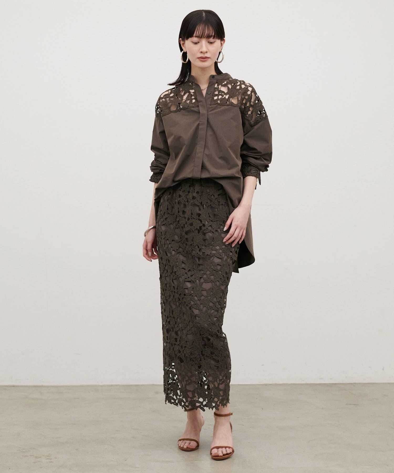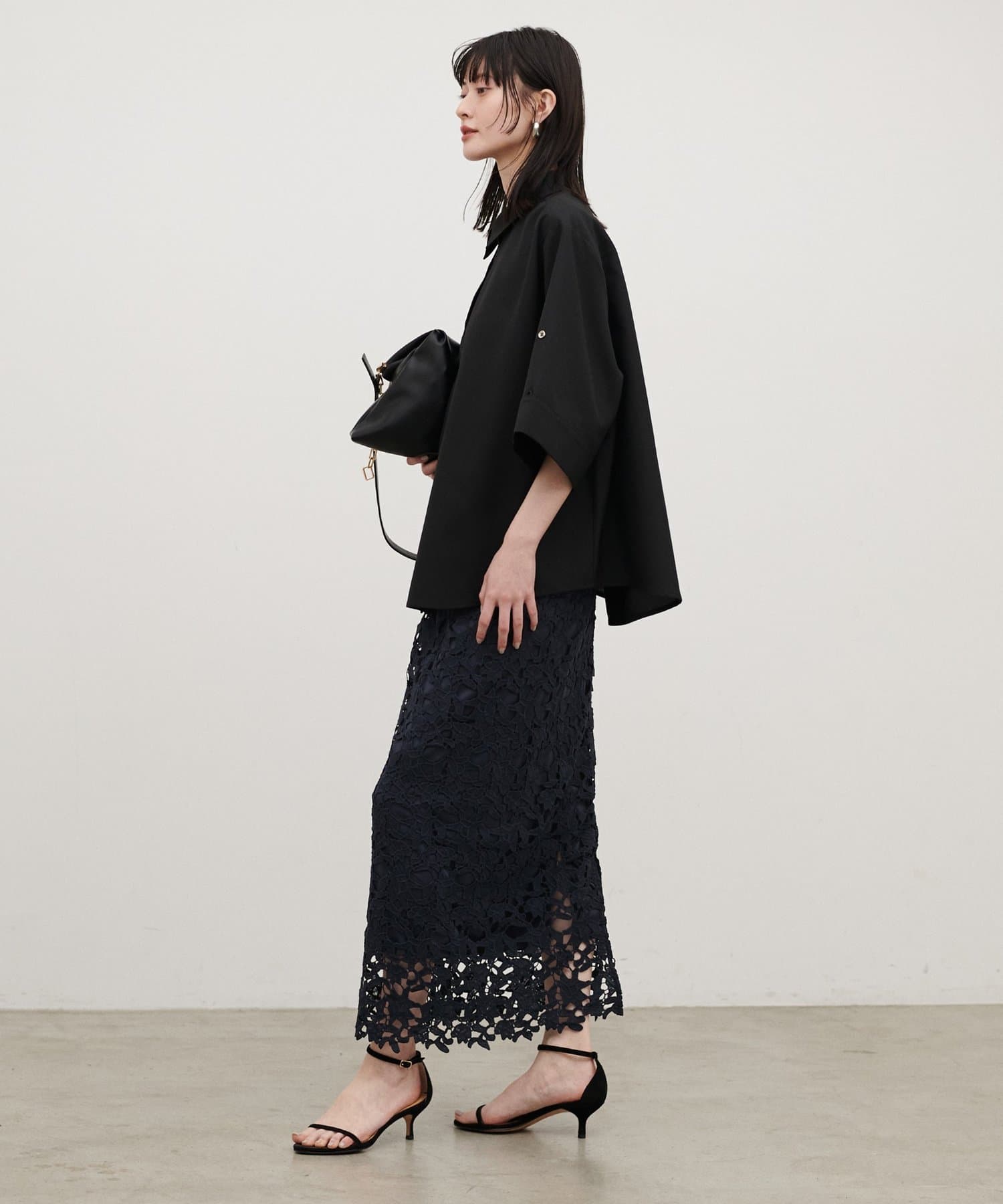 ジャケットやシャツと合わせれば、レースの表情が引き立つきれいめな印象に。