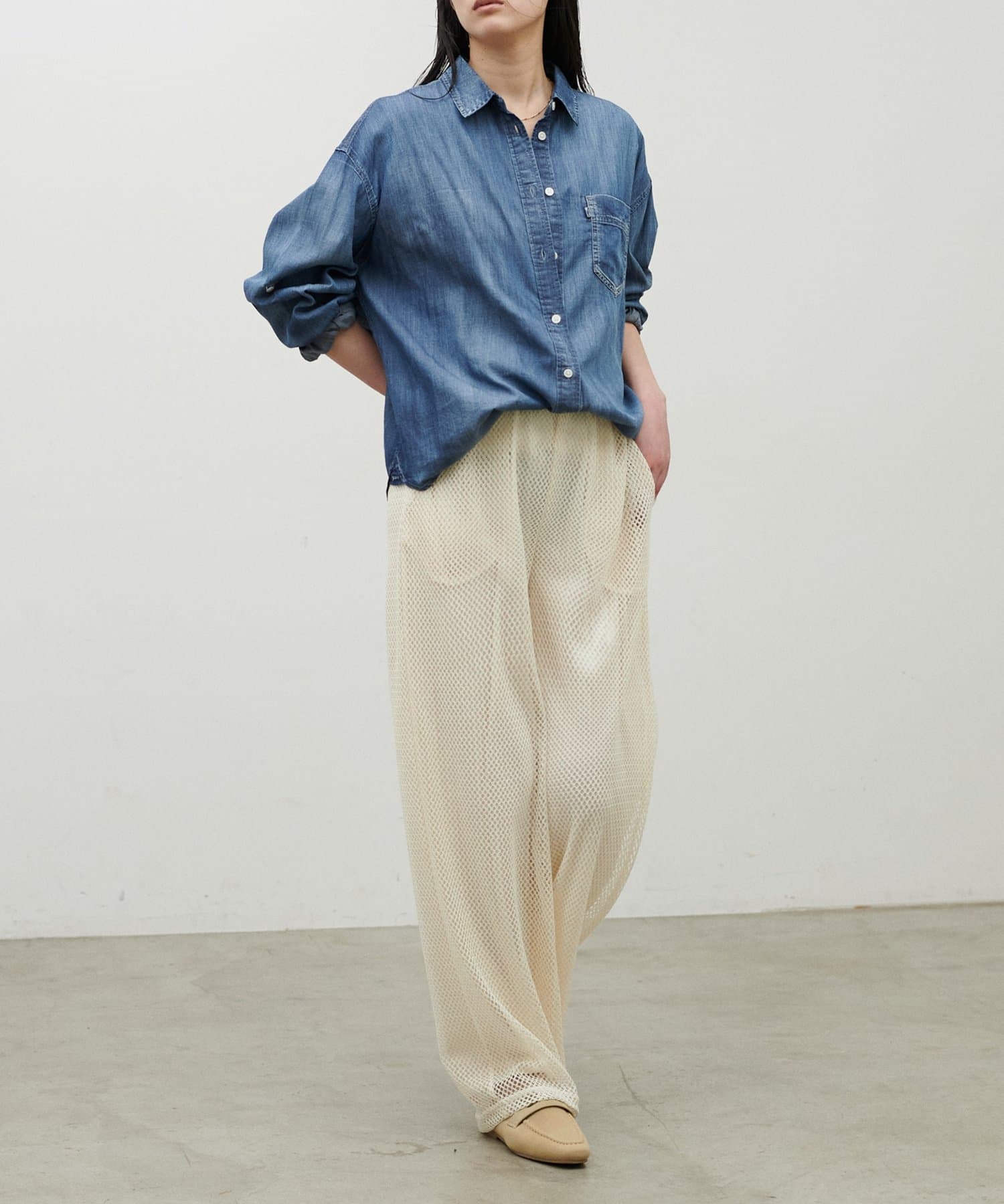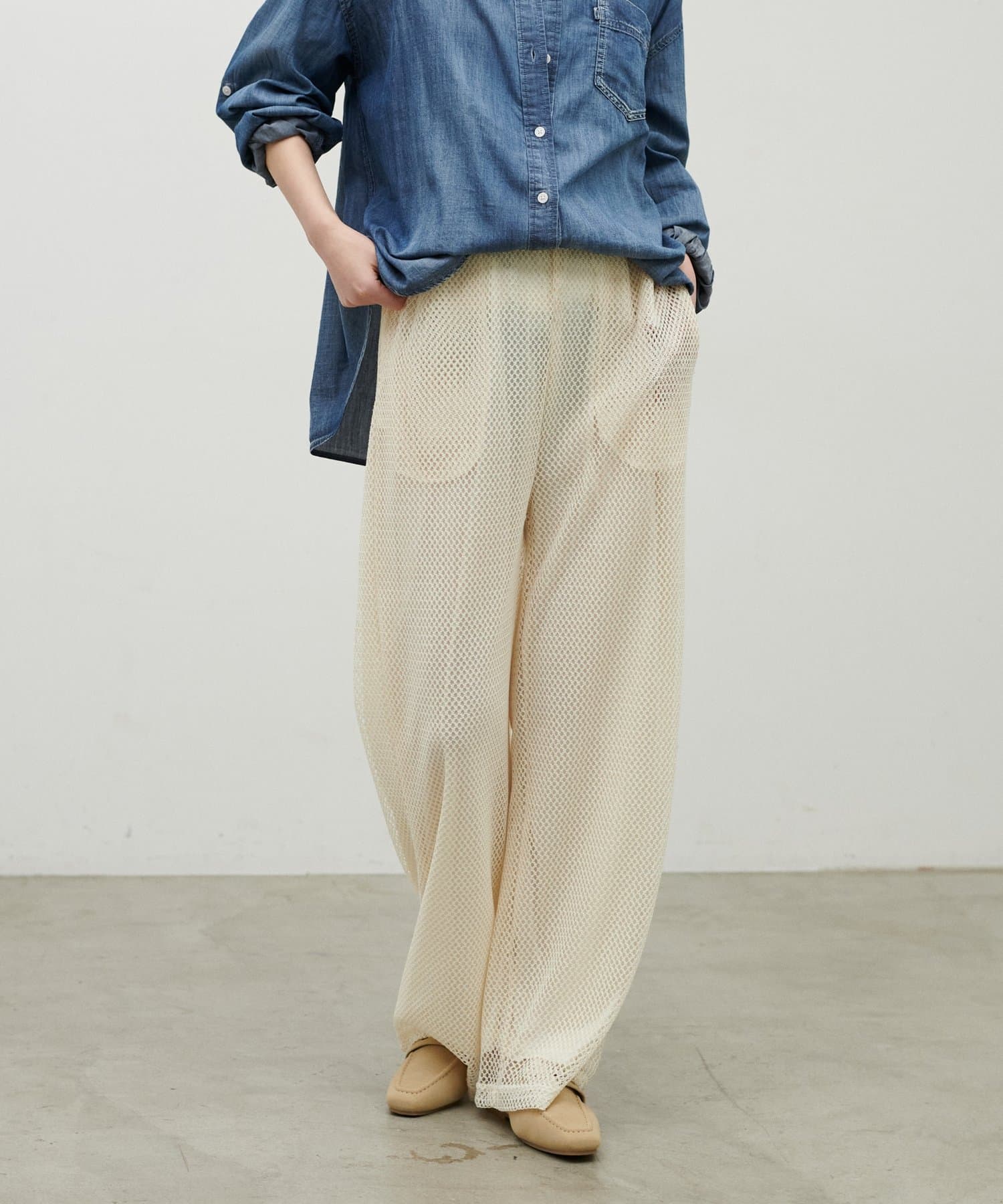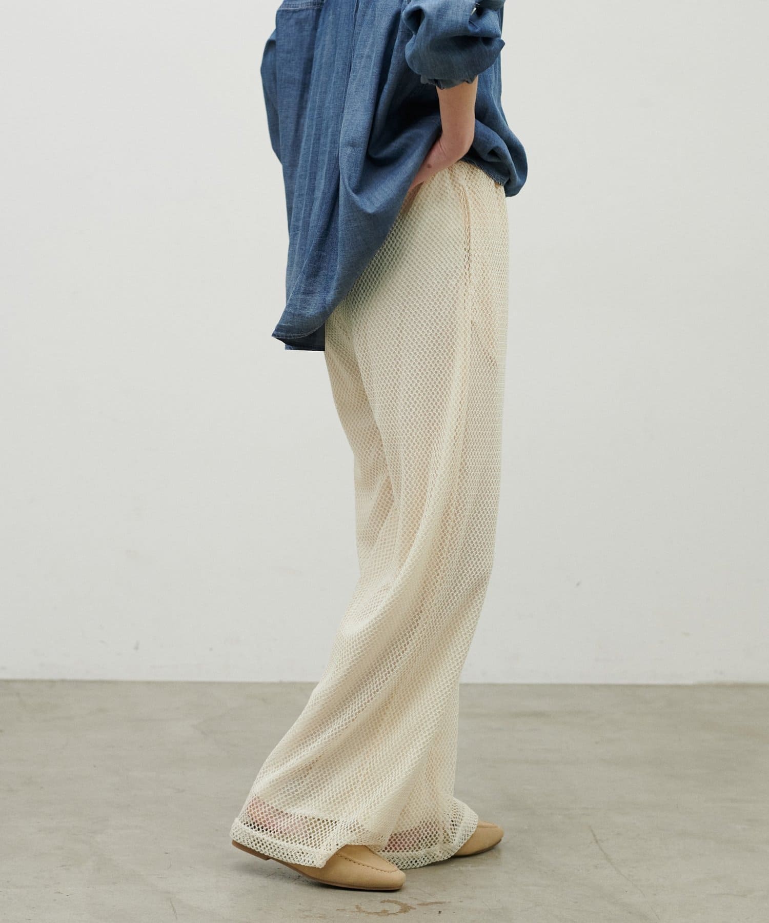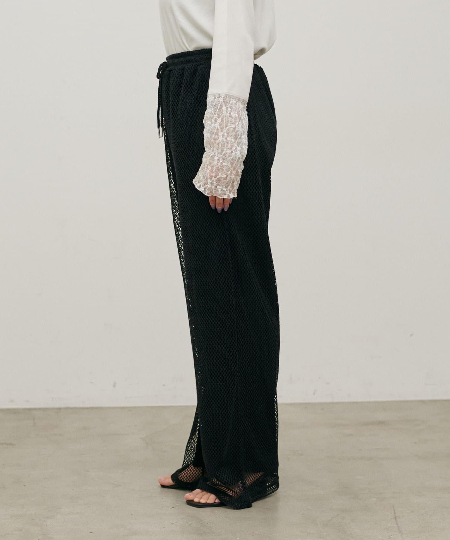 軽やかなメッシュ素材を使用した、抜け感のあるイージーパンツ。