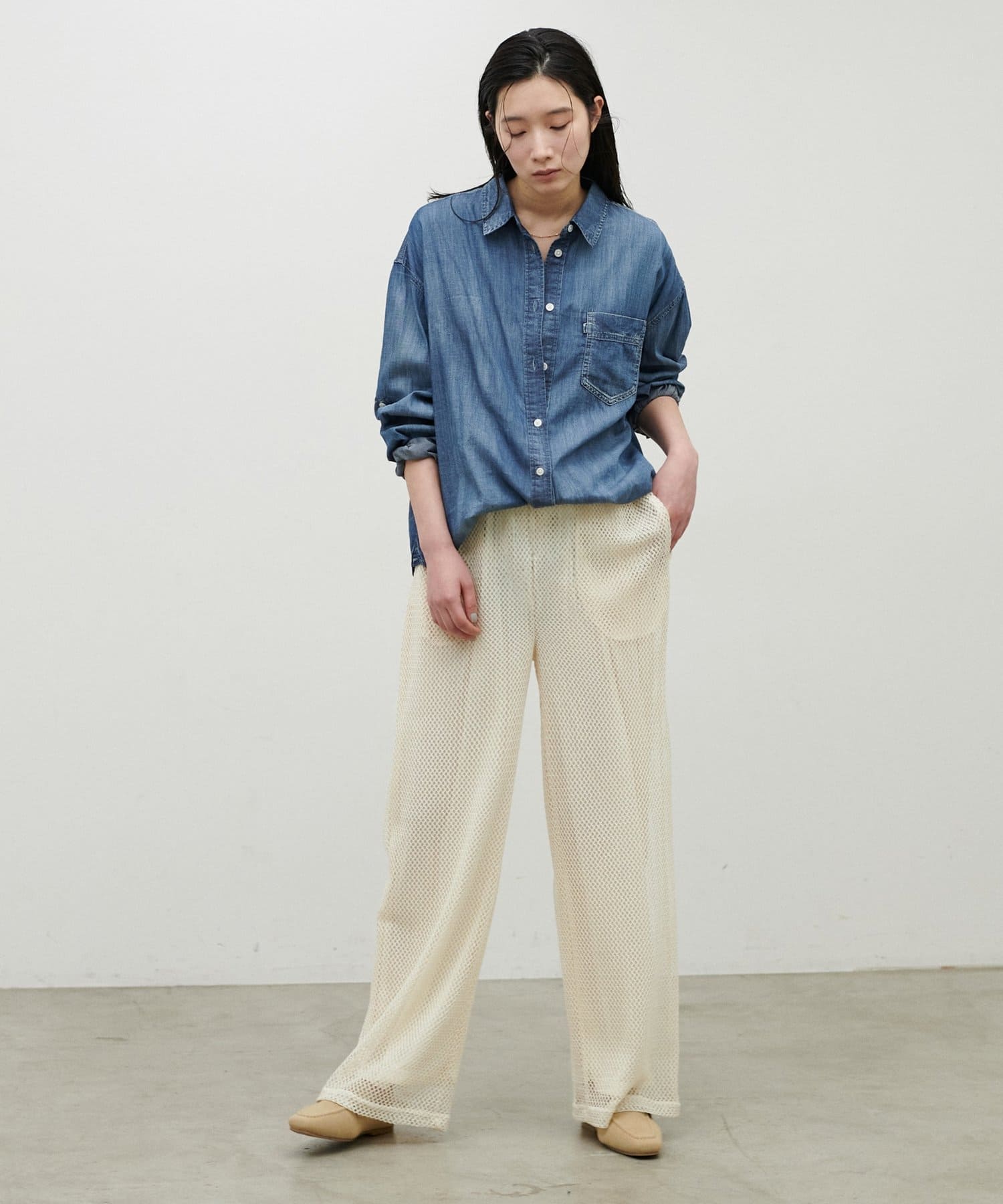 サンダルやスニーカーなど、足元次第で雰囲気を変えて楽しめます。