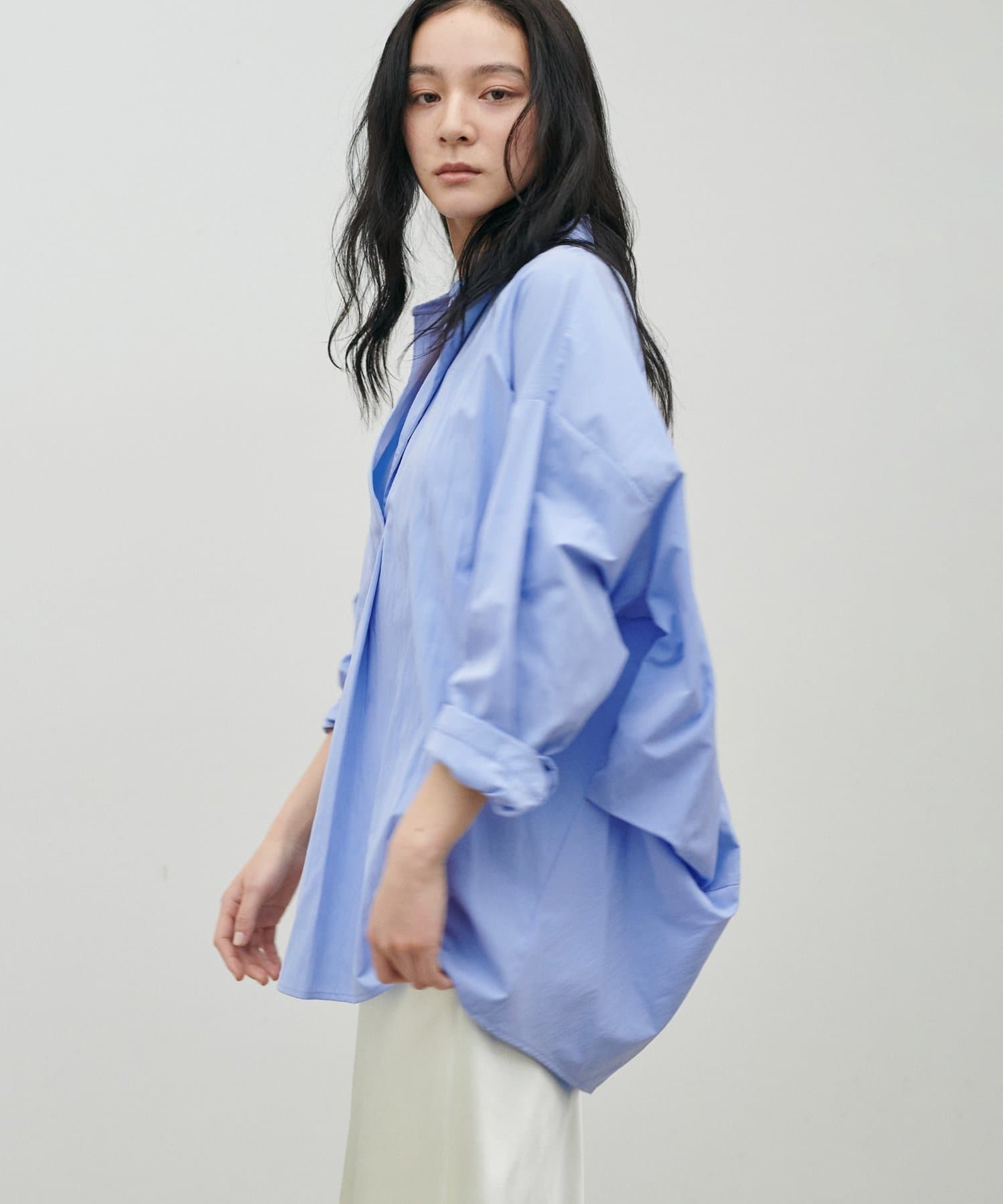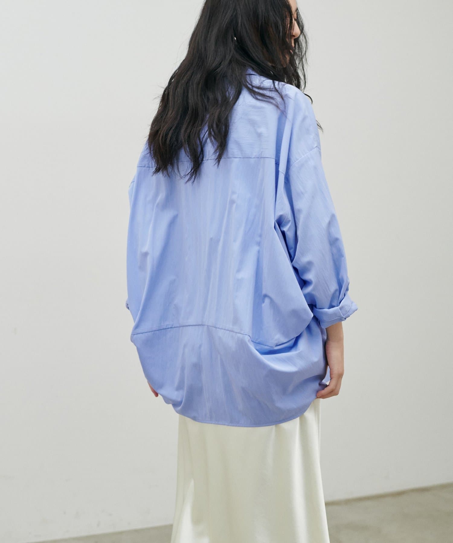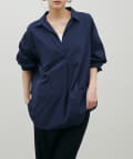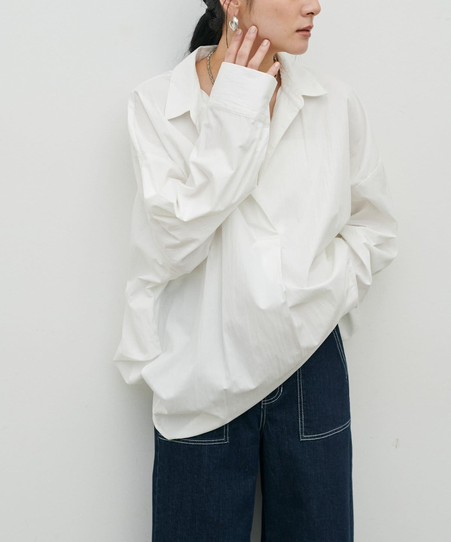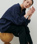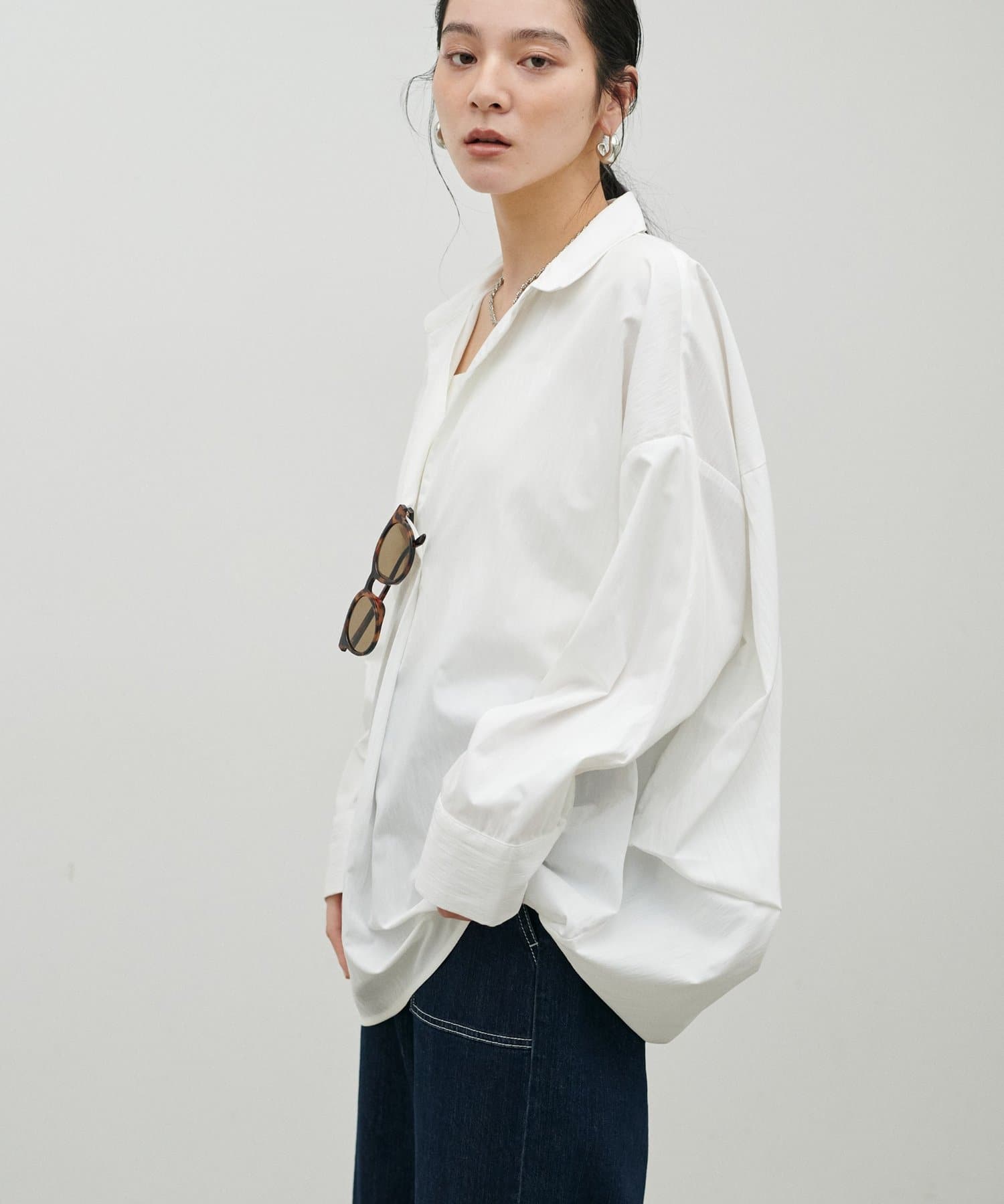 ゆったりとしたオーバーサイズで、脇線後ろのタックにより立体的なコクーンシルエットに。