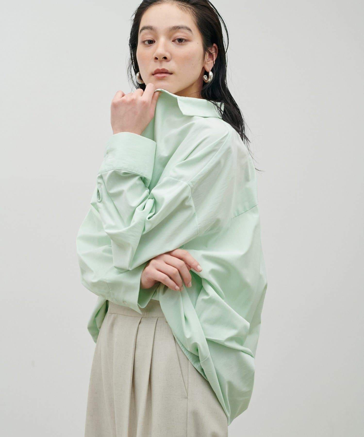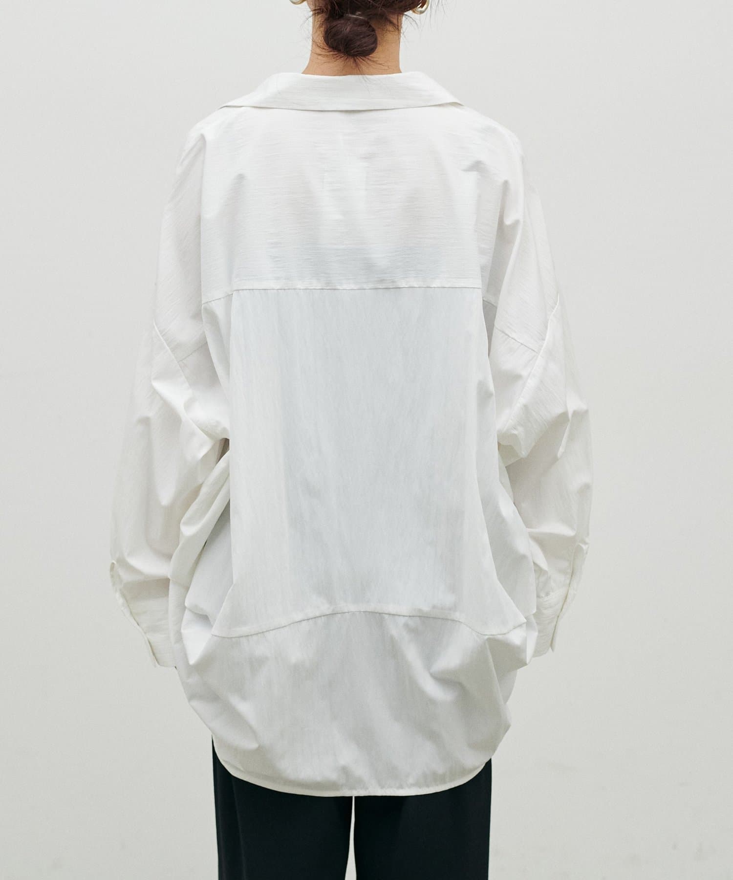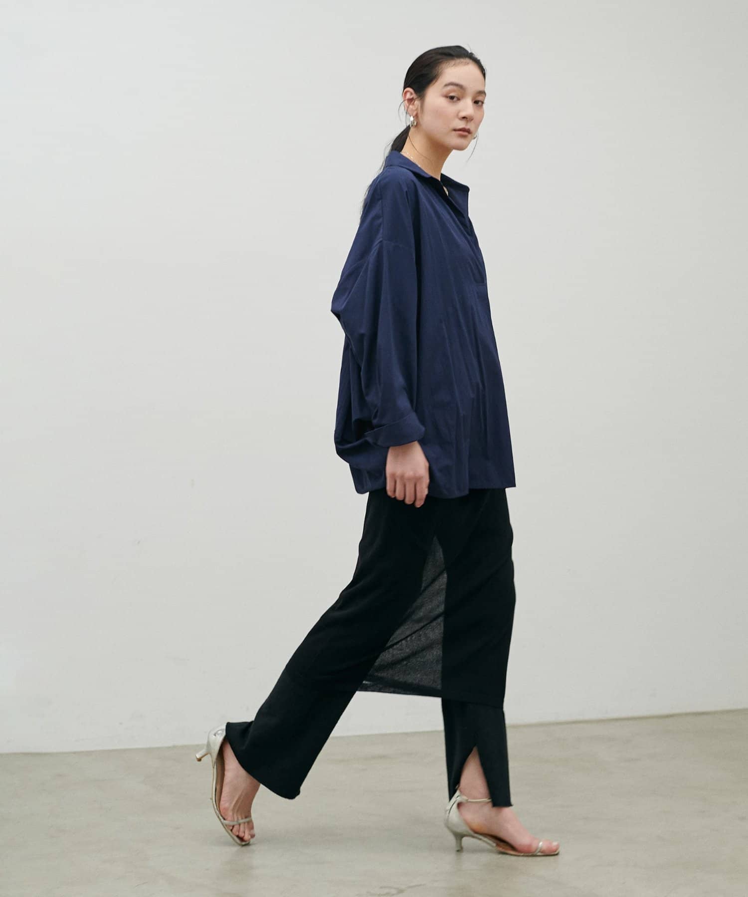 ゆったりとしたオーバーサイズで、脇線後ろのタックにより立体的なコクーンシルエットに。