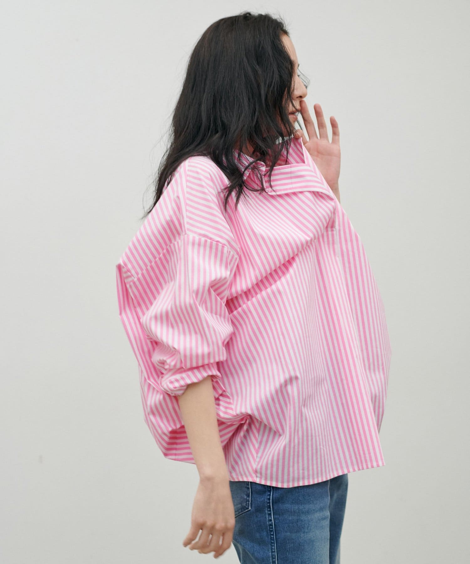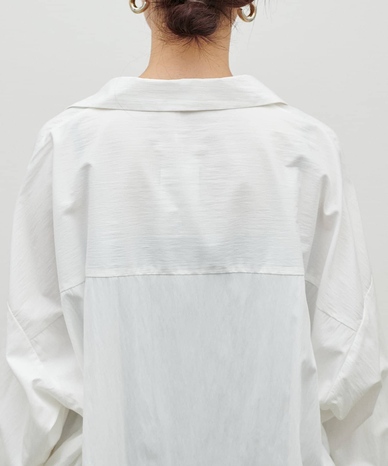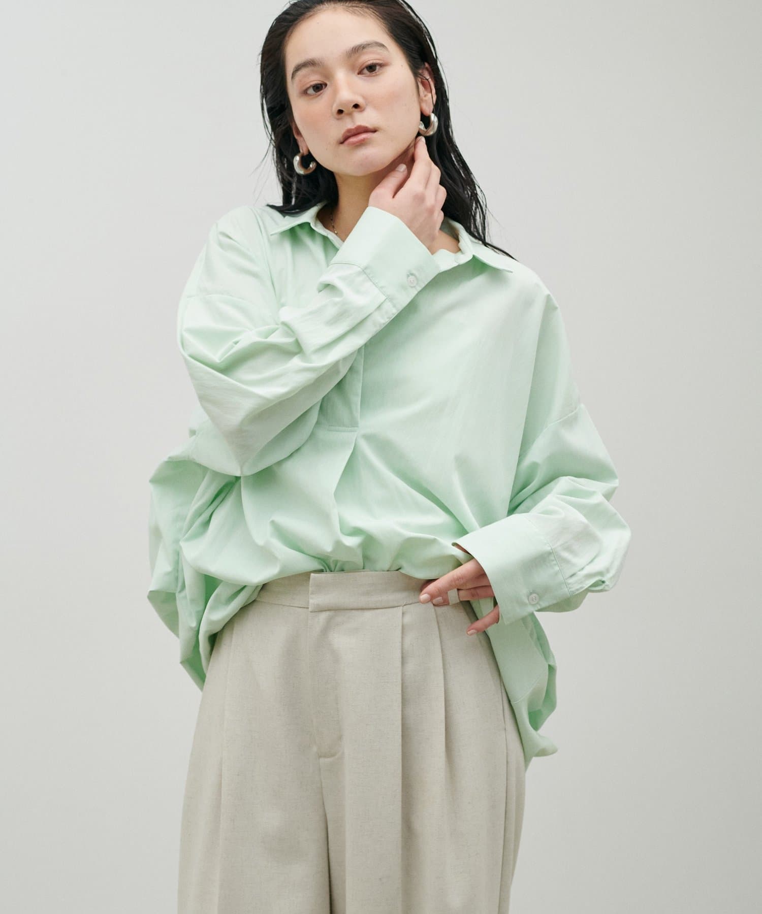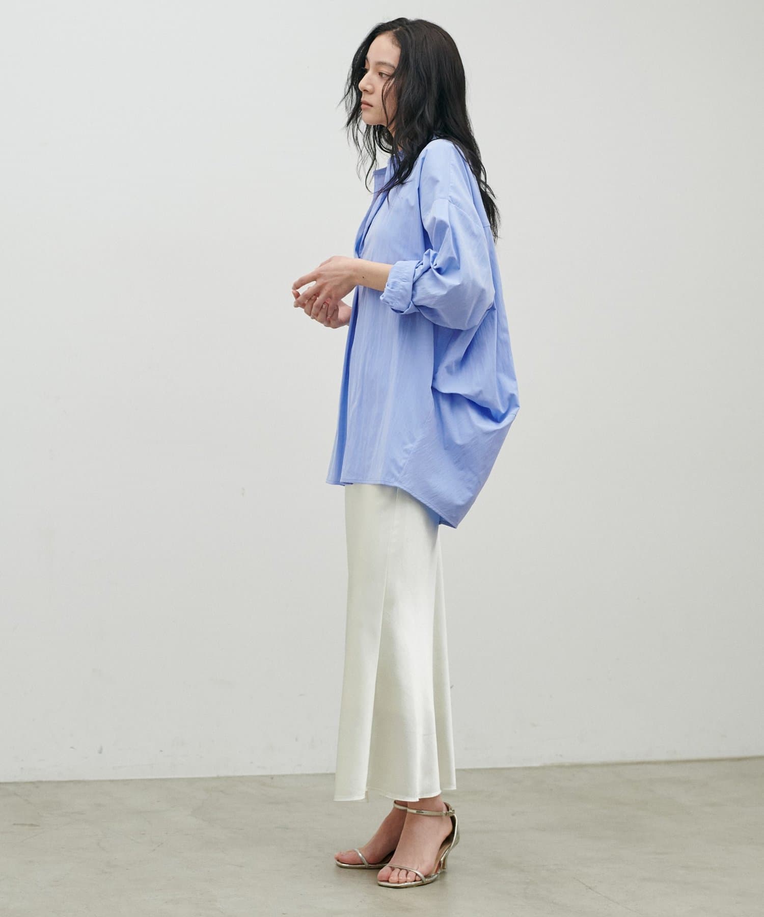 ゆったりとしたオーバーサイズで、脇線後ろのタックにより立体的なコクーンシルエットに。