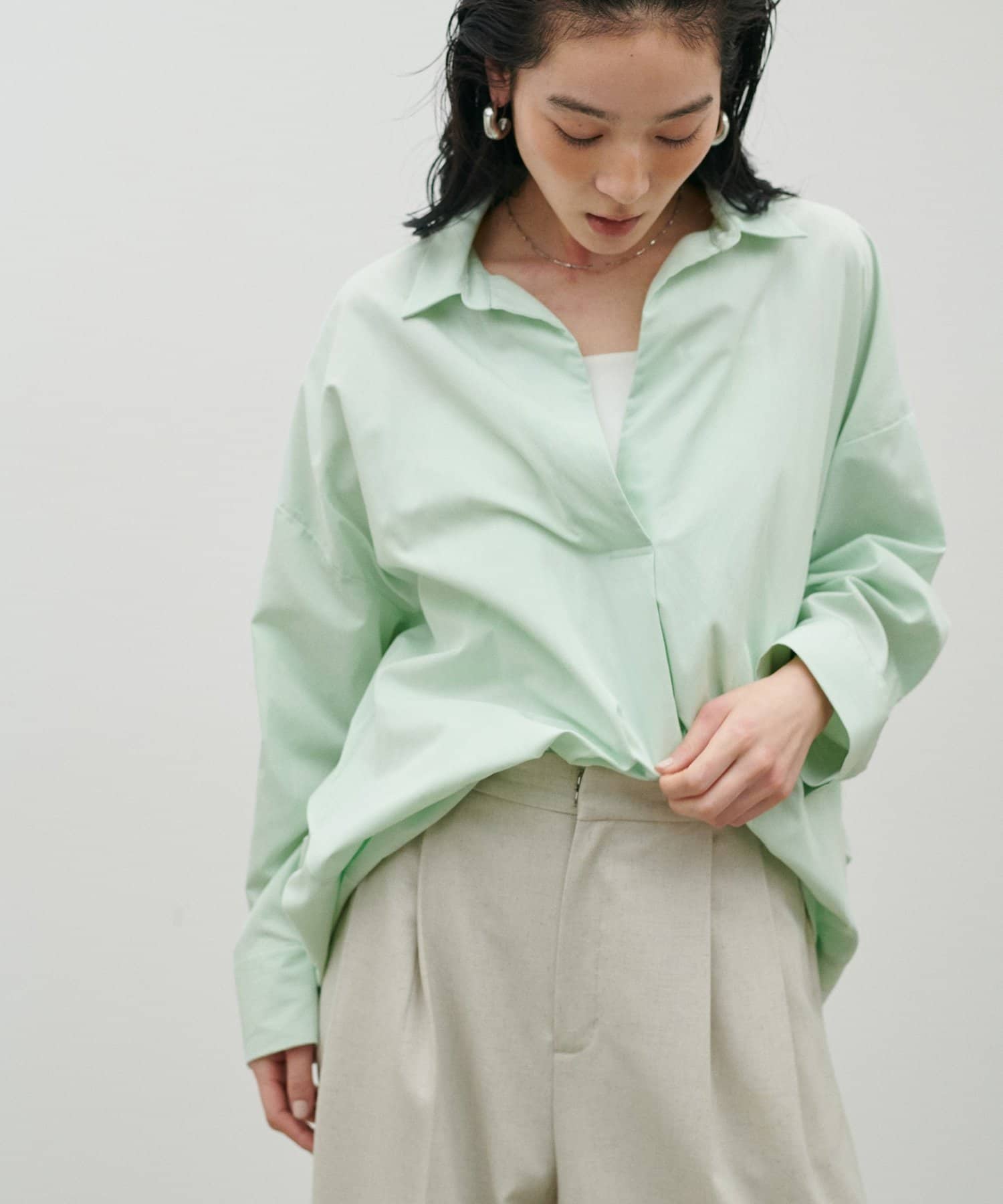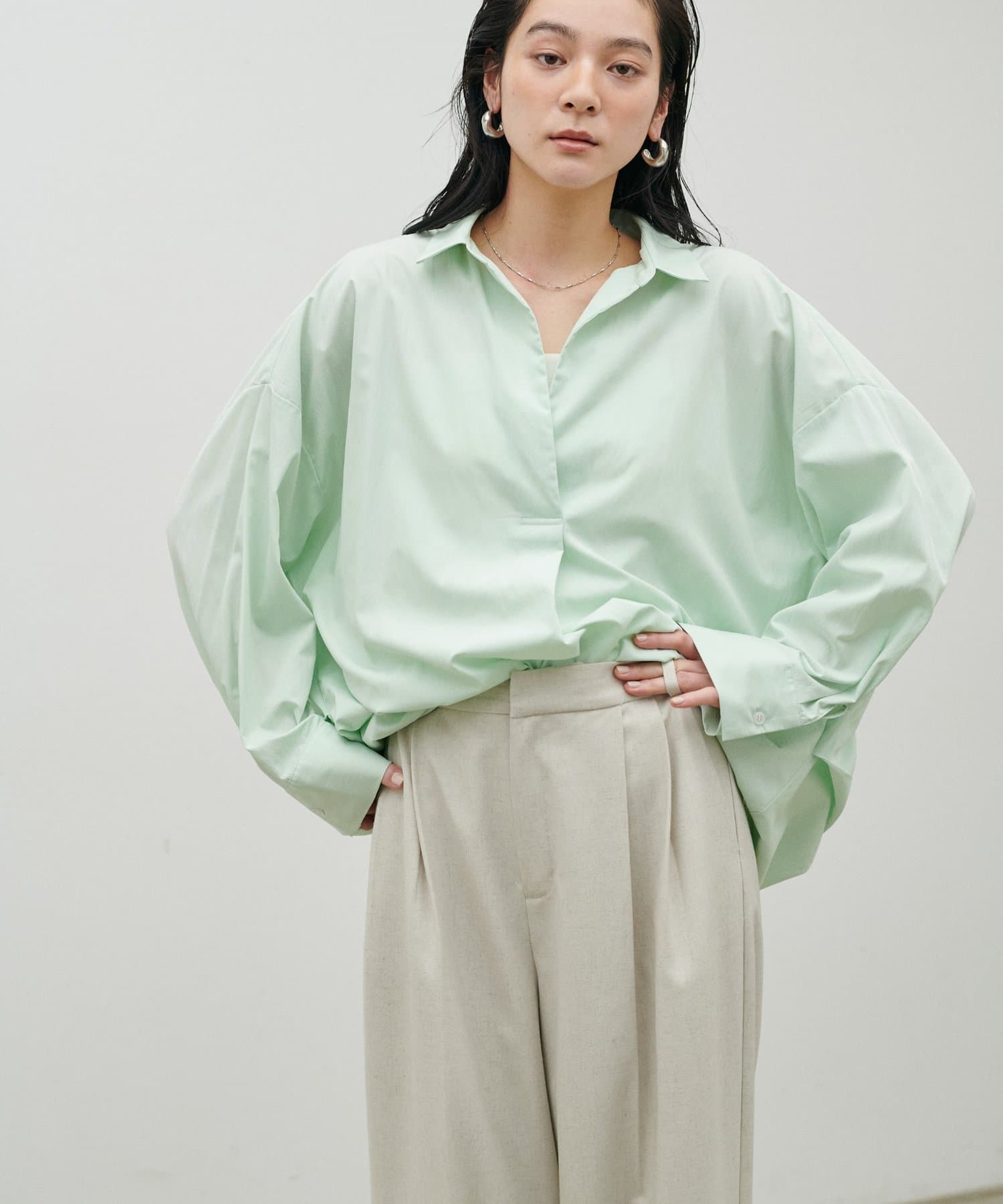 襟を抜いてニュアンス感のあるシルエットが楽しめます。