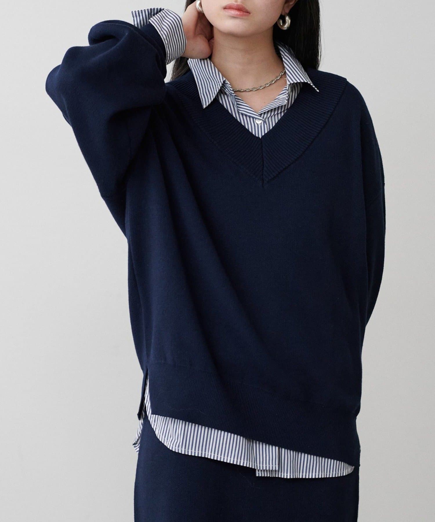 ニットの柔らかさと、スウェットのようなカジュアルさを両立したVネックプルオーバー。
