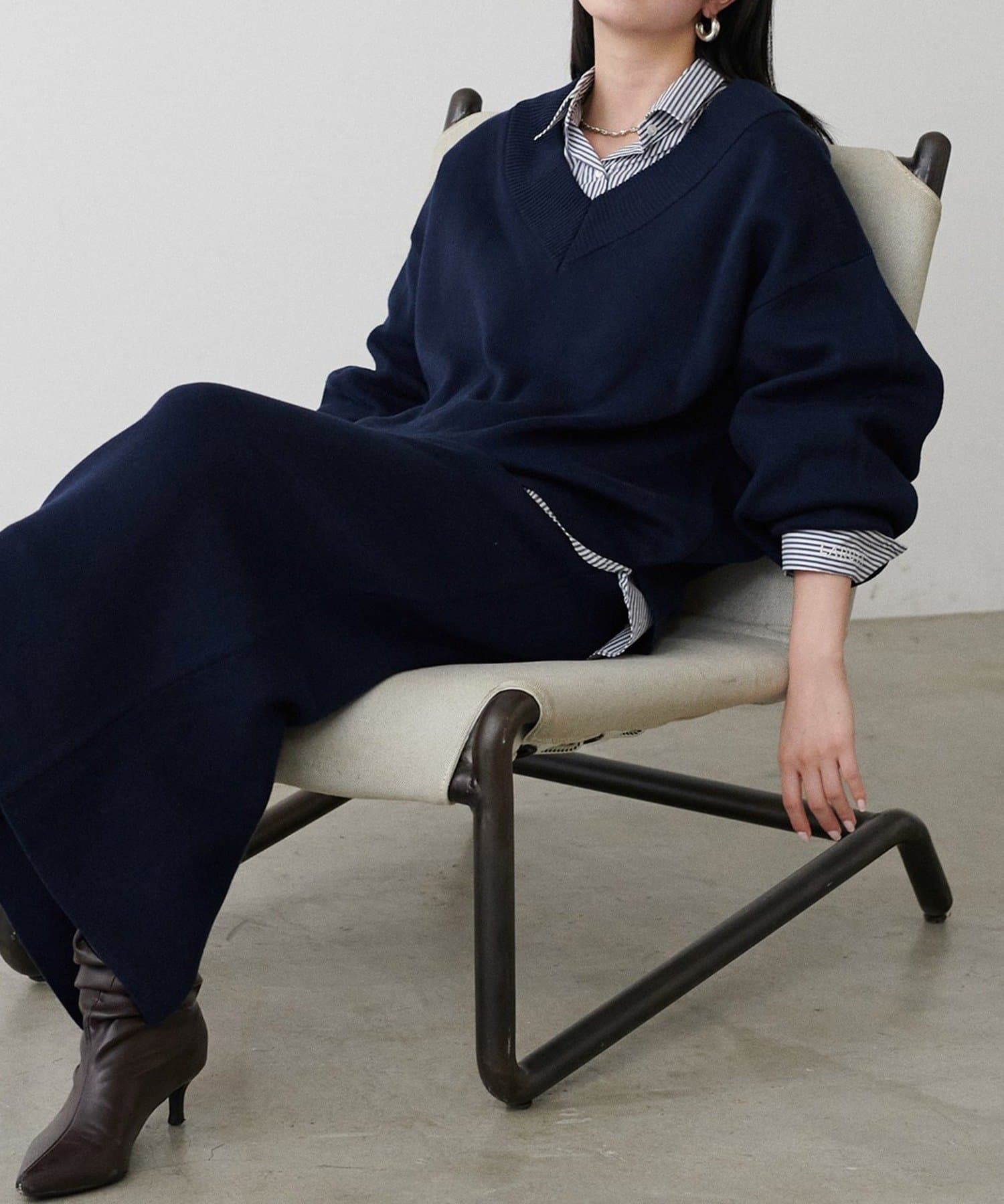 シャツやタートルをインナーに重ねてもバランスよく、秋冬のレイヤードにも活躍します。