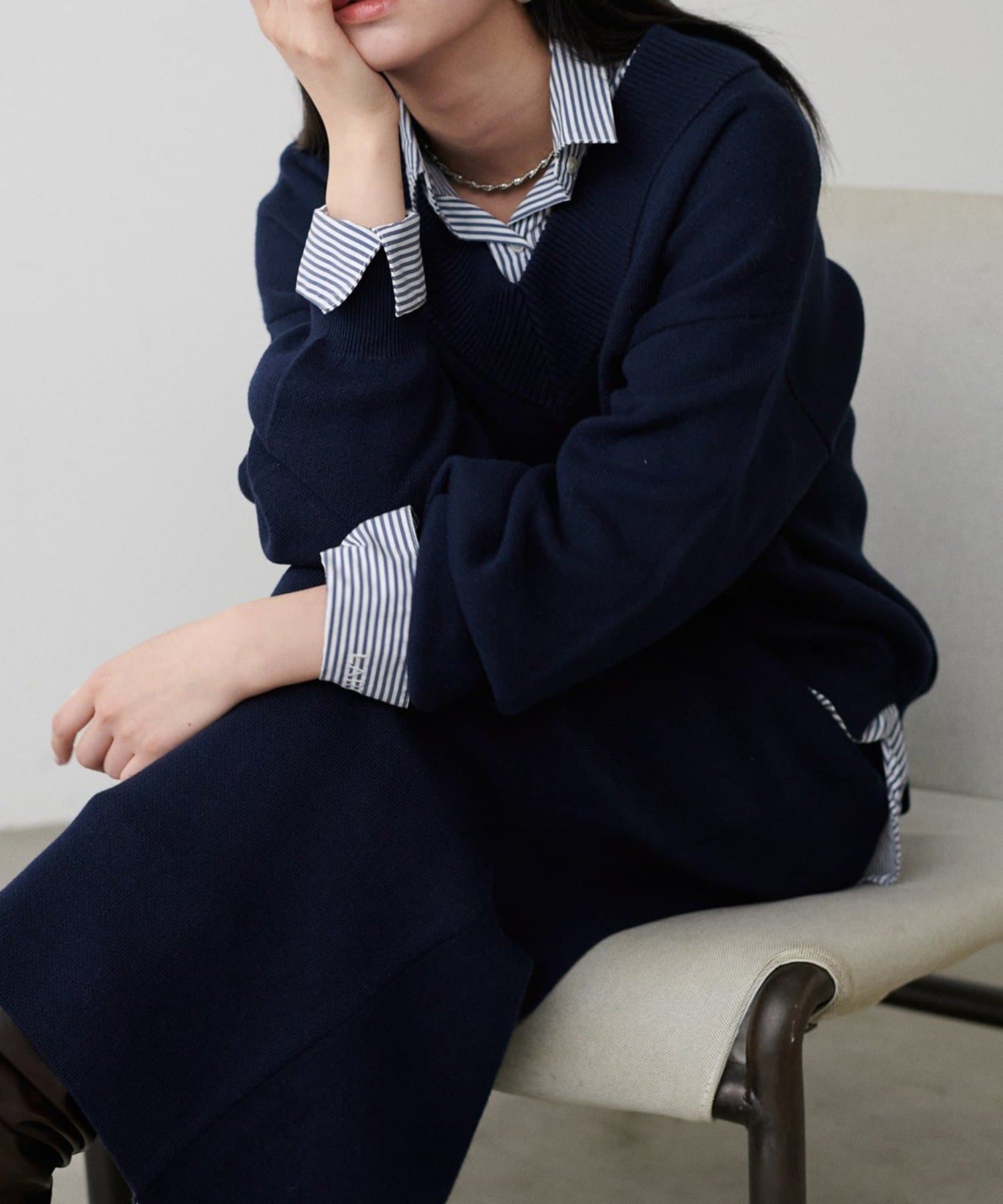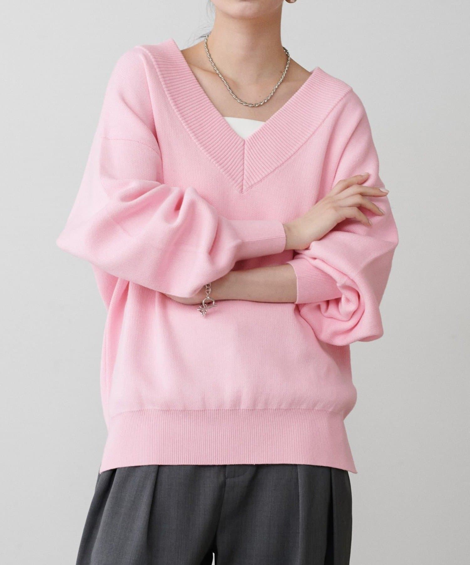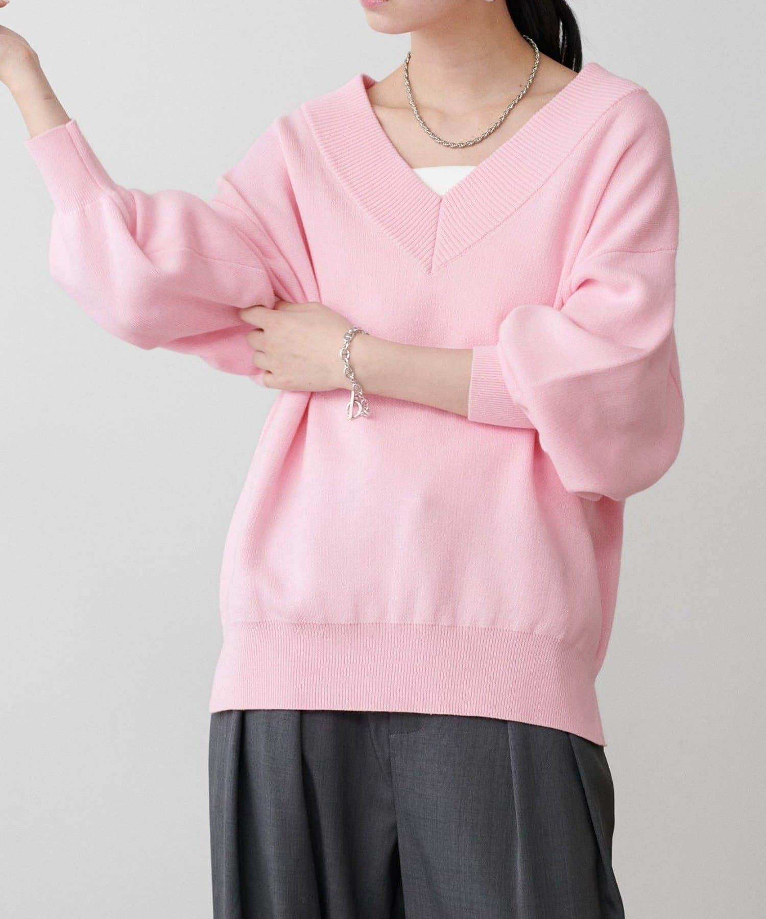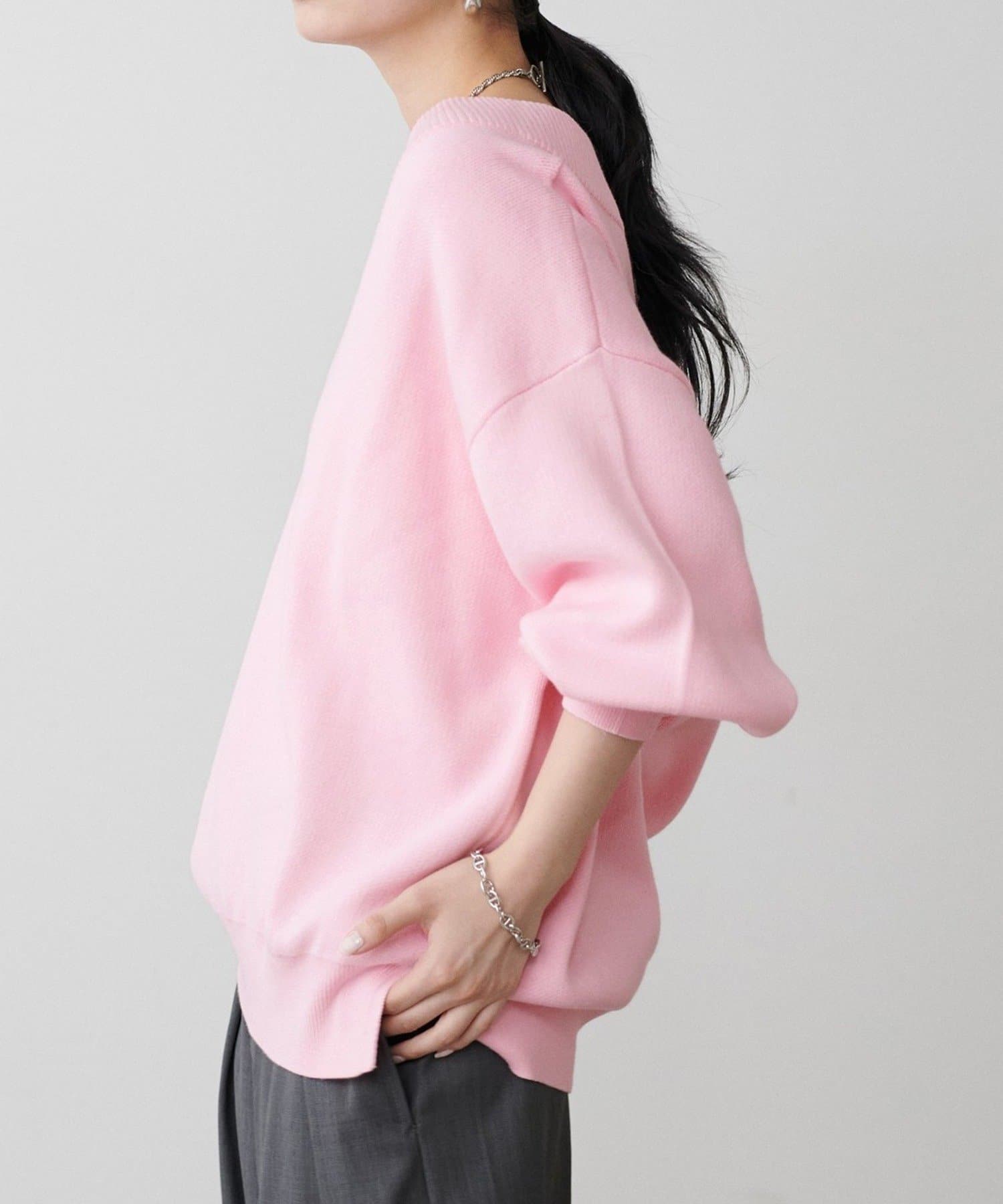 【LARUTA】スウェットライクVネックニットプルオーバー