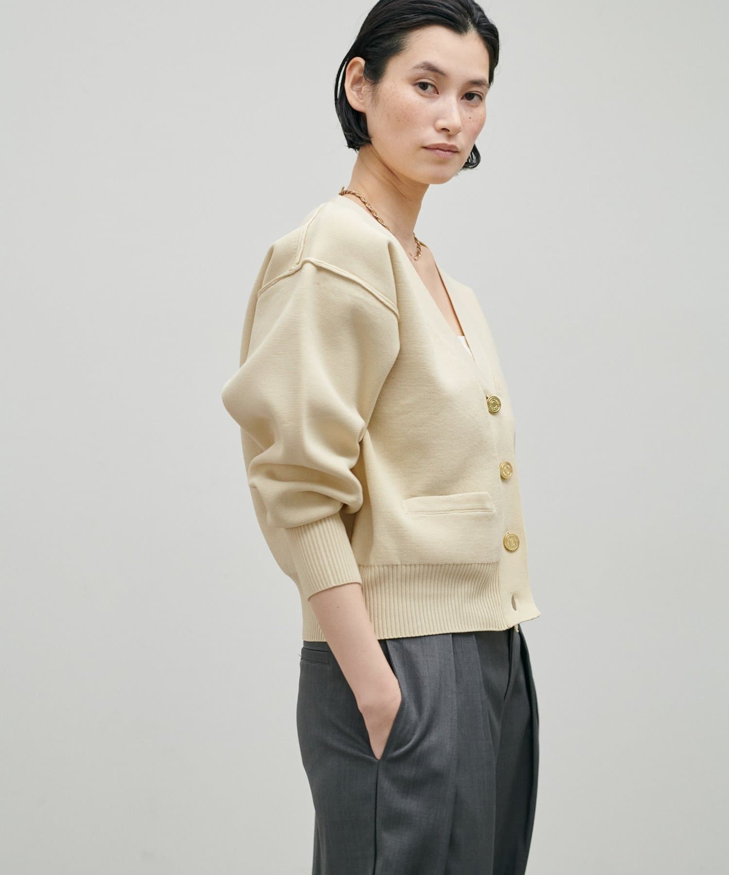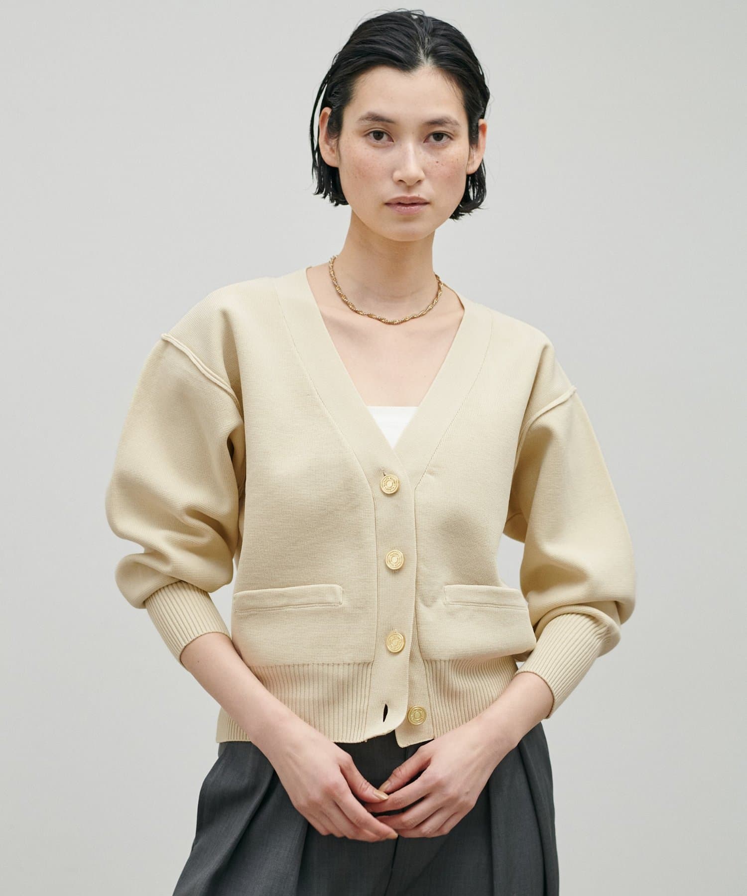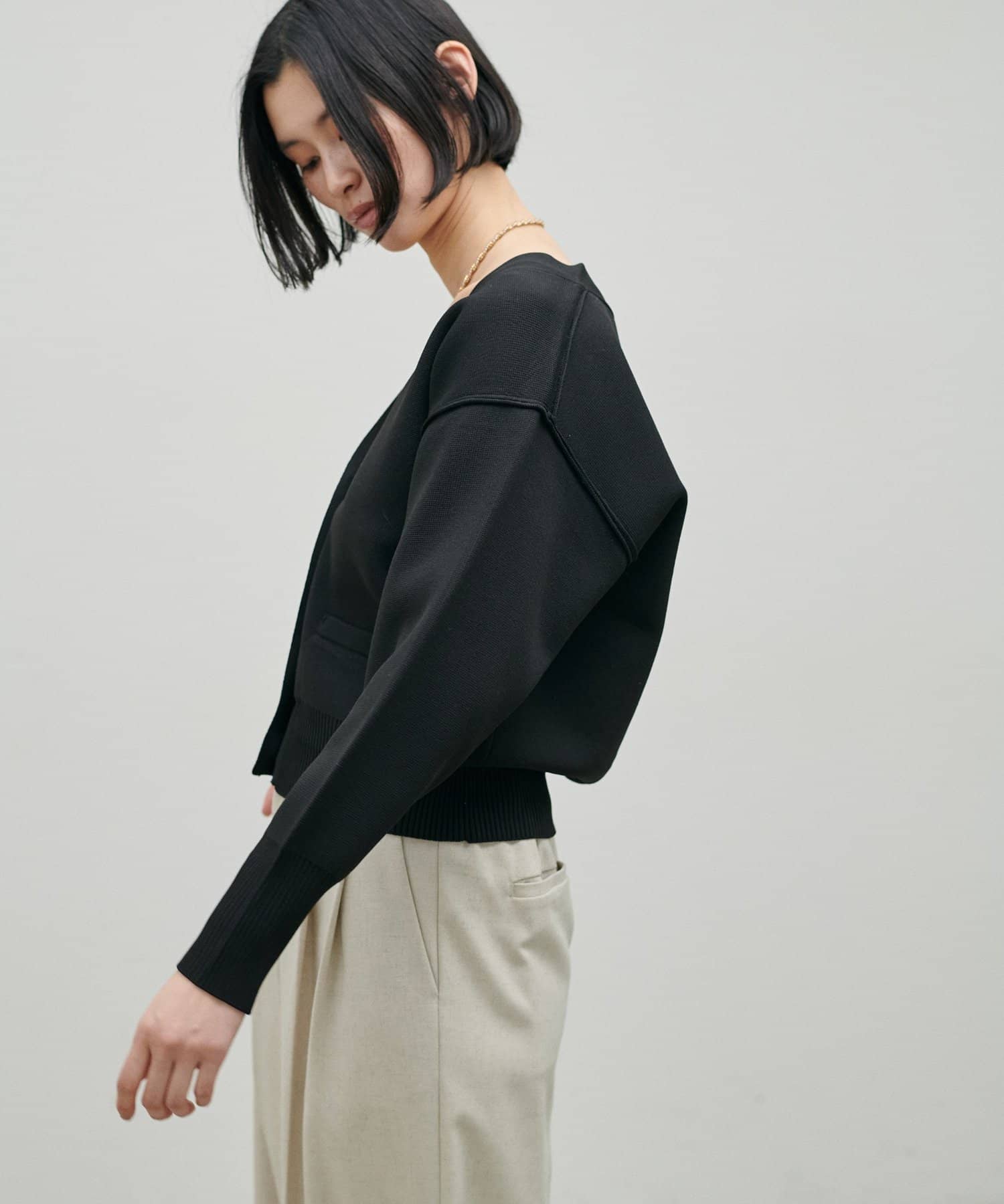 ショートカーディガンをベースに肩のラインを少し後ろ振りにしたり、