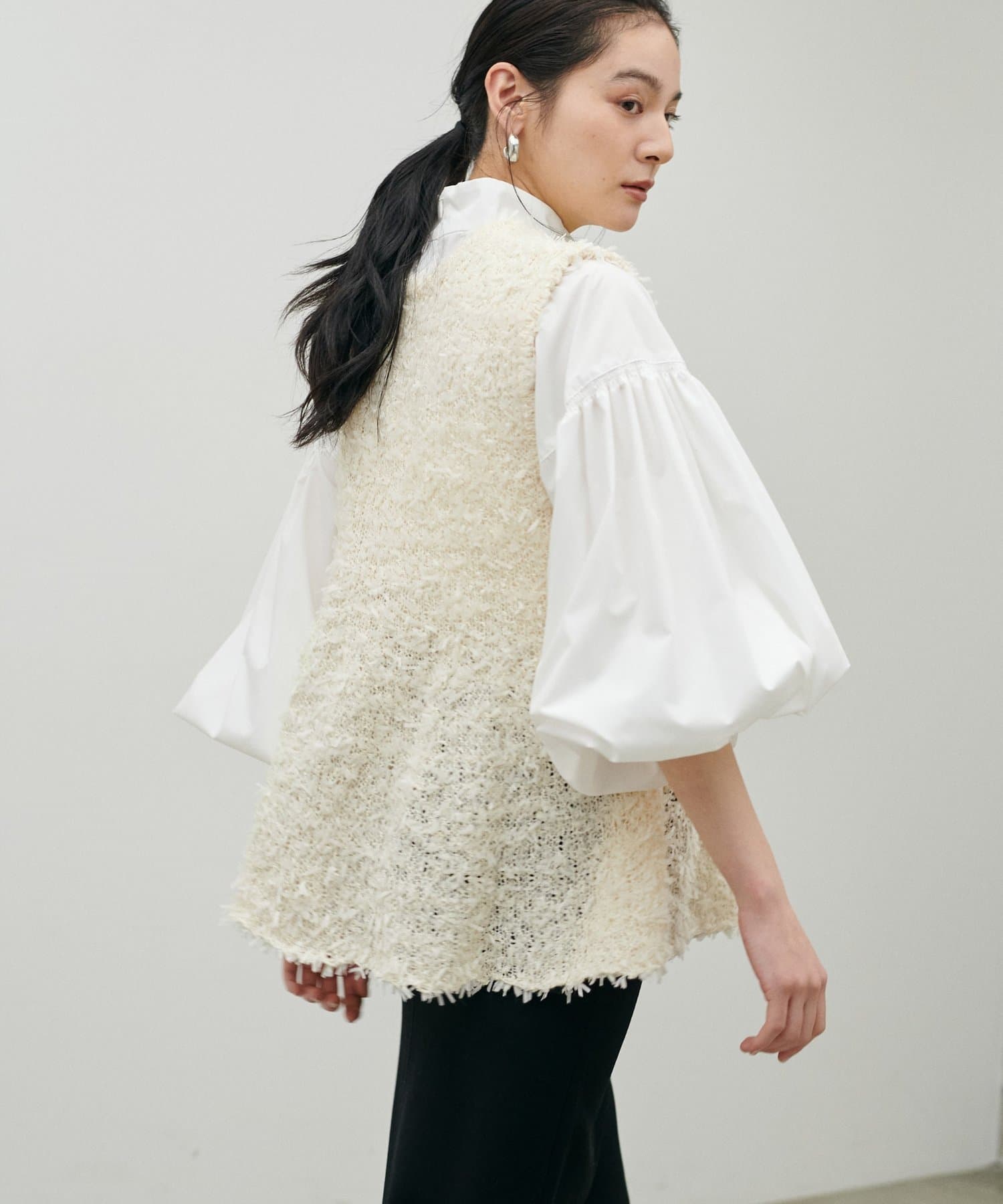 奥行きを与え、着るだけでスタイリングのポイントになる一枚です。