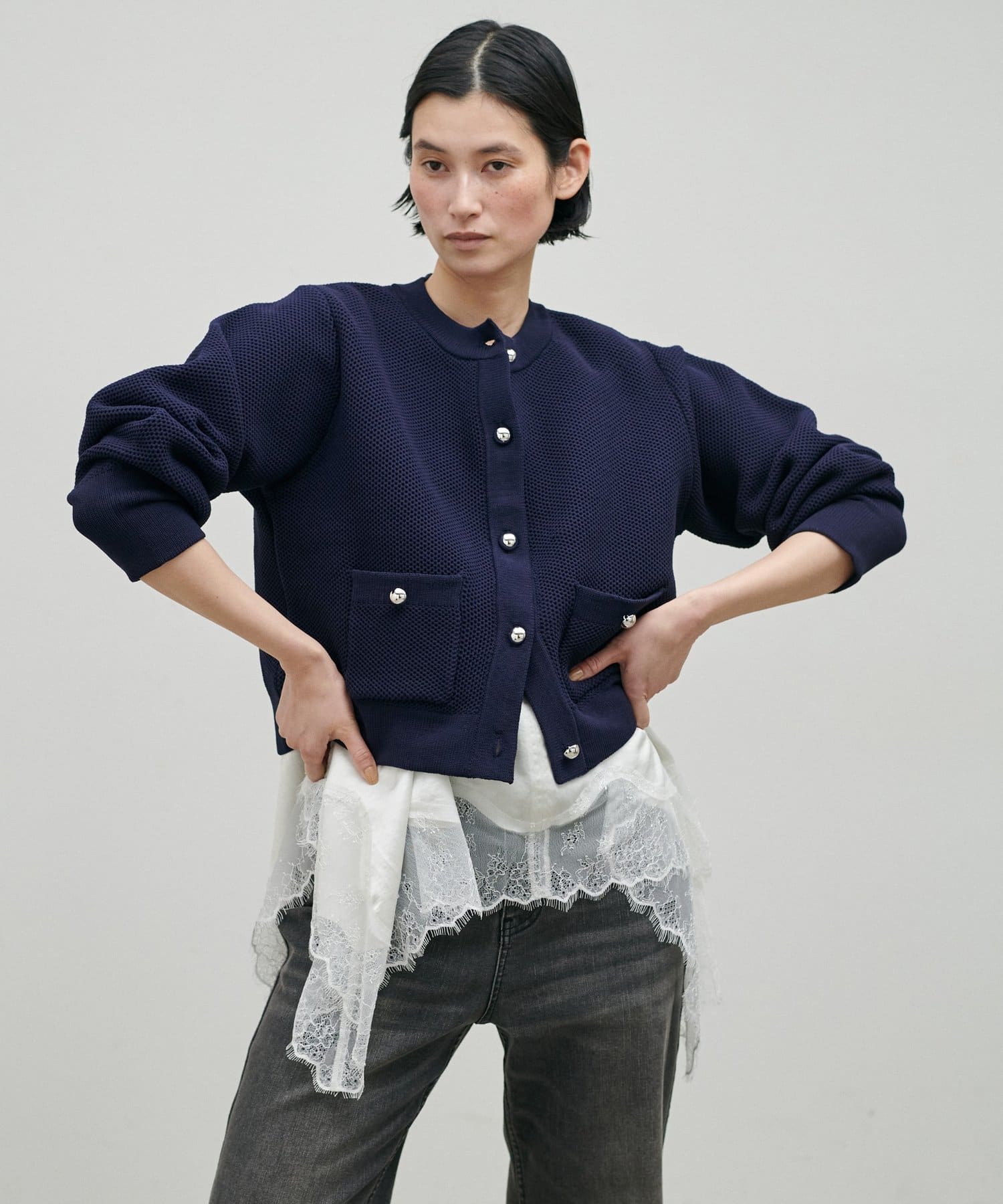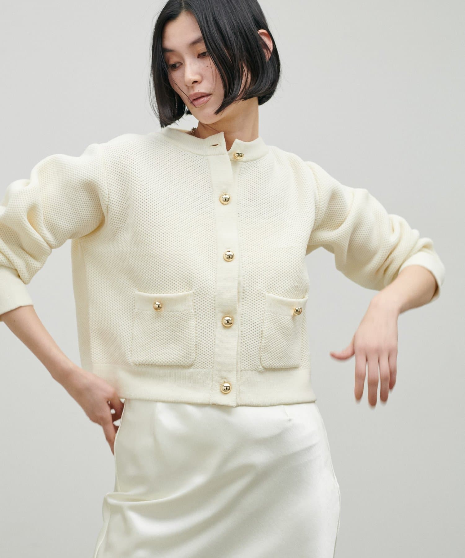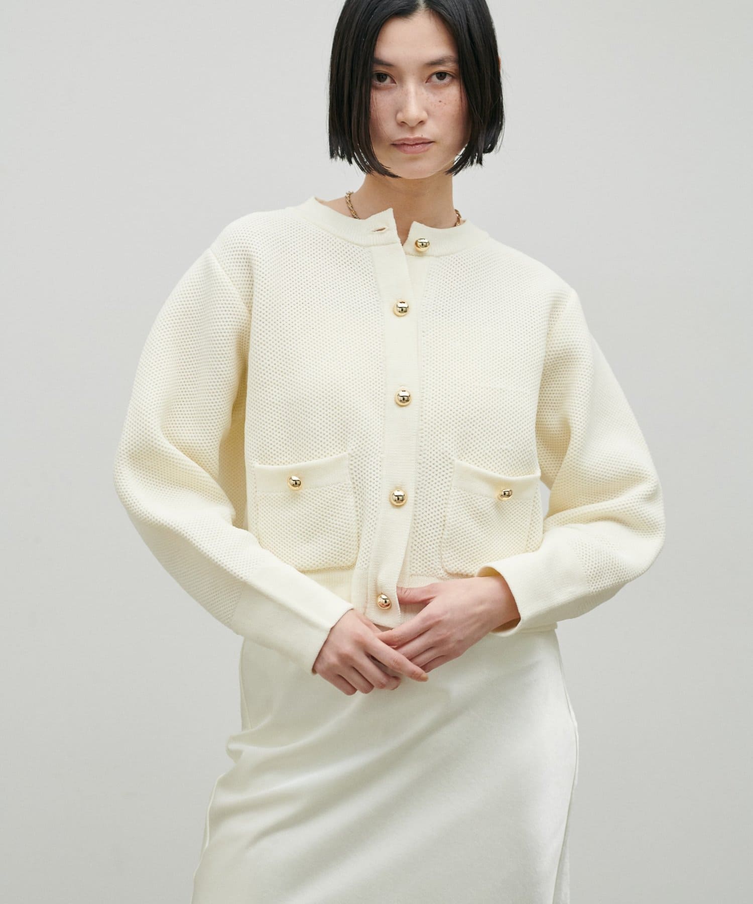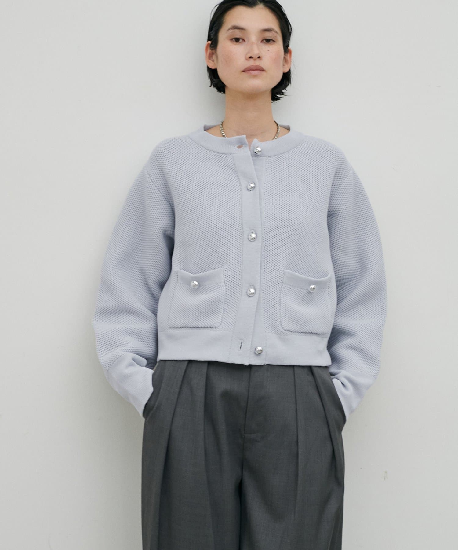 軽やかなハニカム編みニットカーディガン