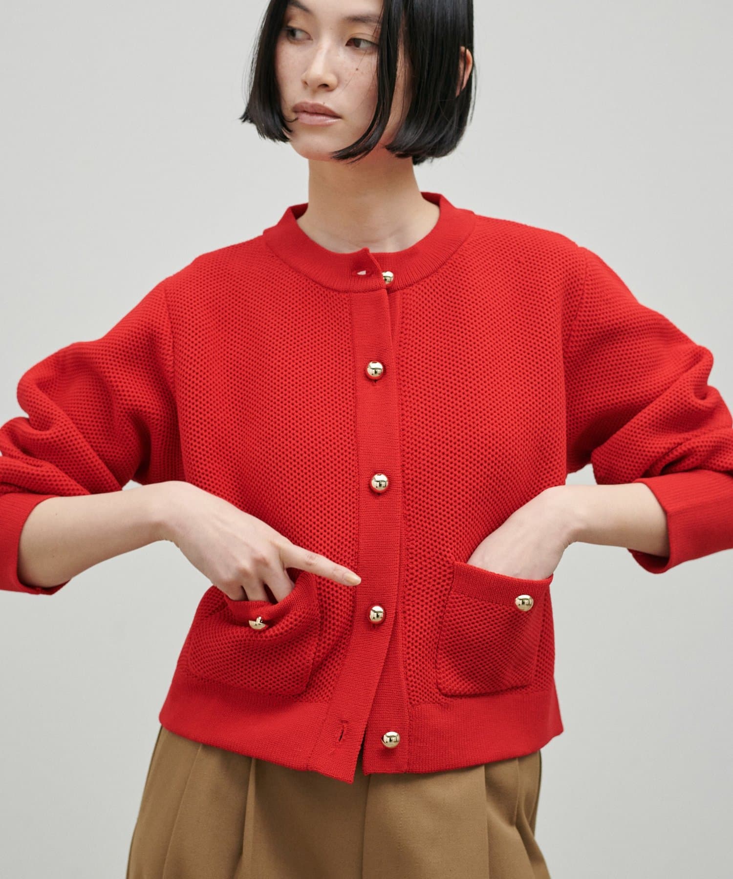 表情のあるハニカム編みが特徴のニットカーディガン。