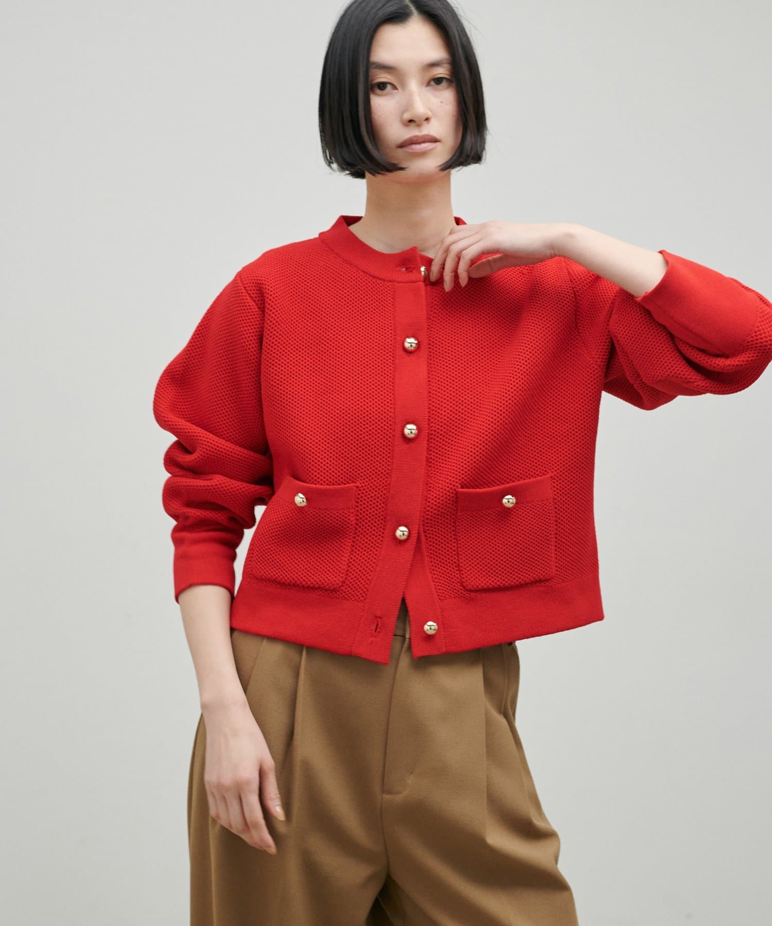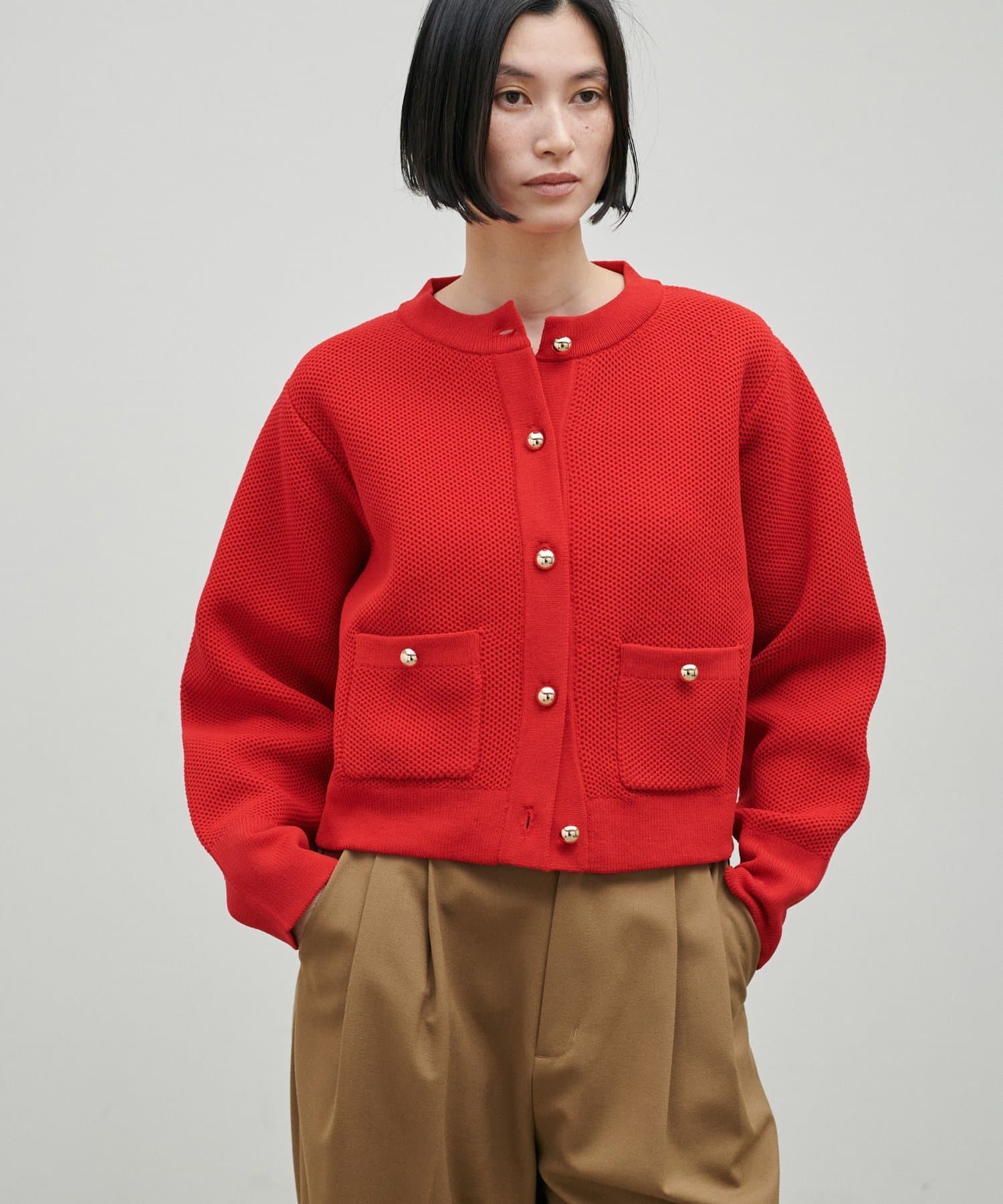 TOP > LARUTA > レディース > トップス > カーディガン/ボレロ > 軽やかなハニカム編みニットカーディガン