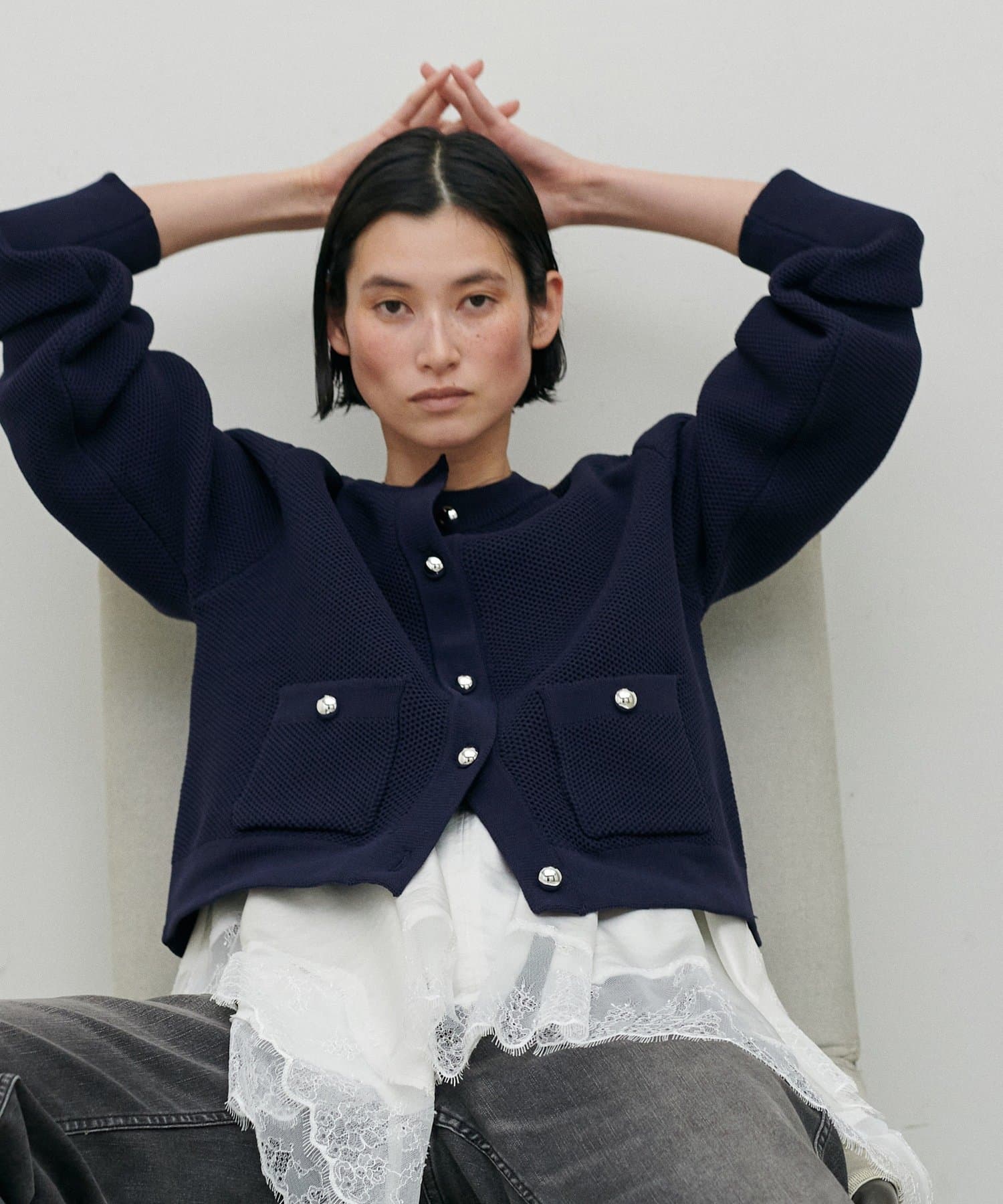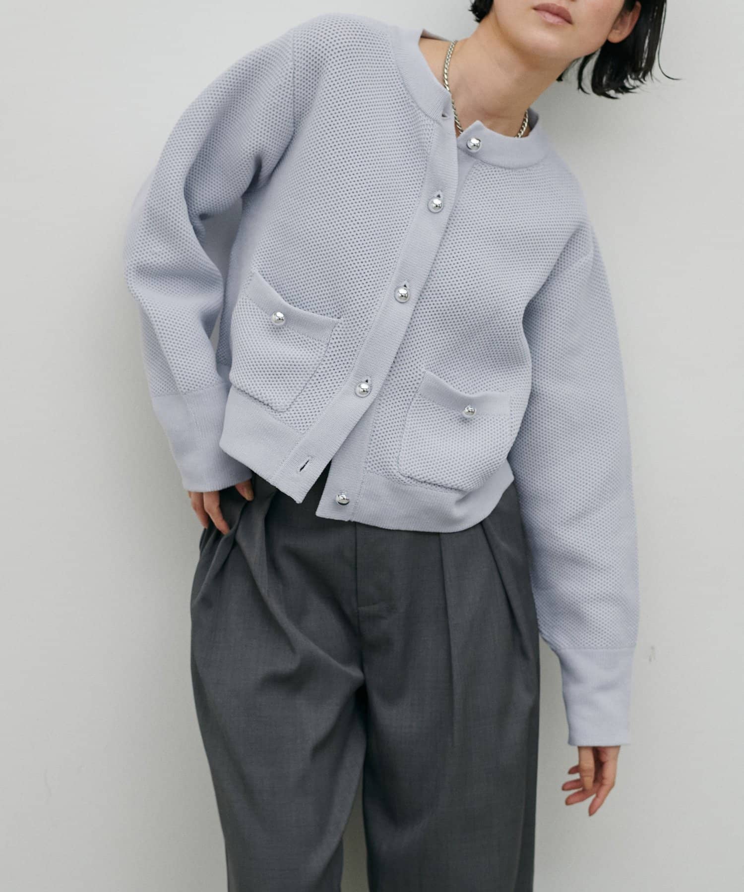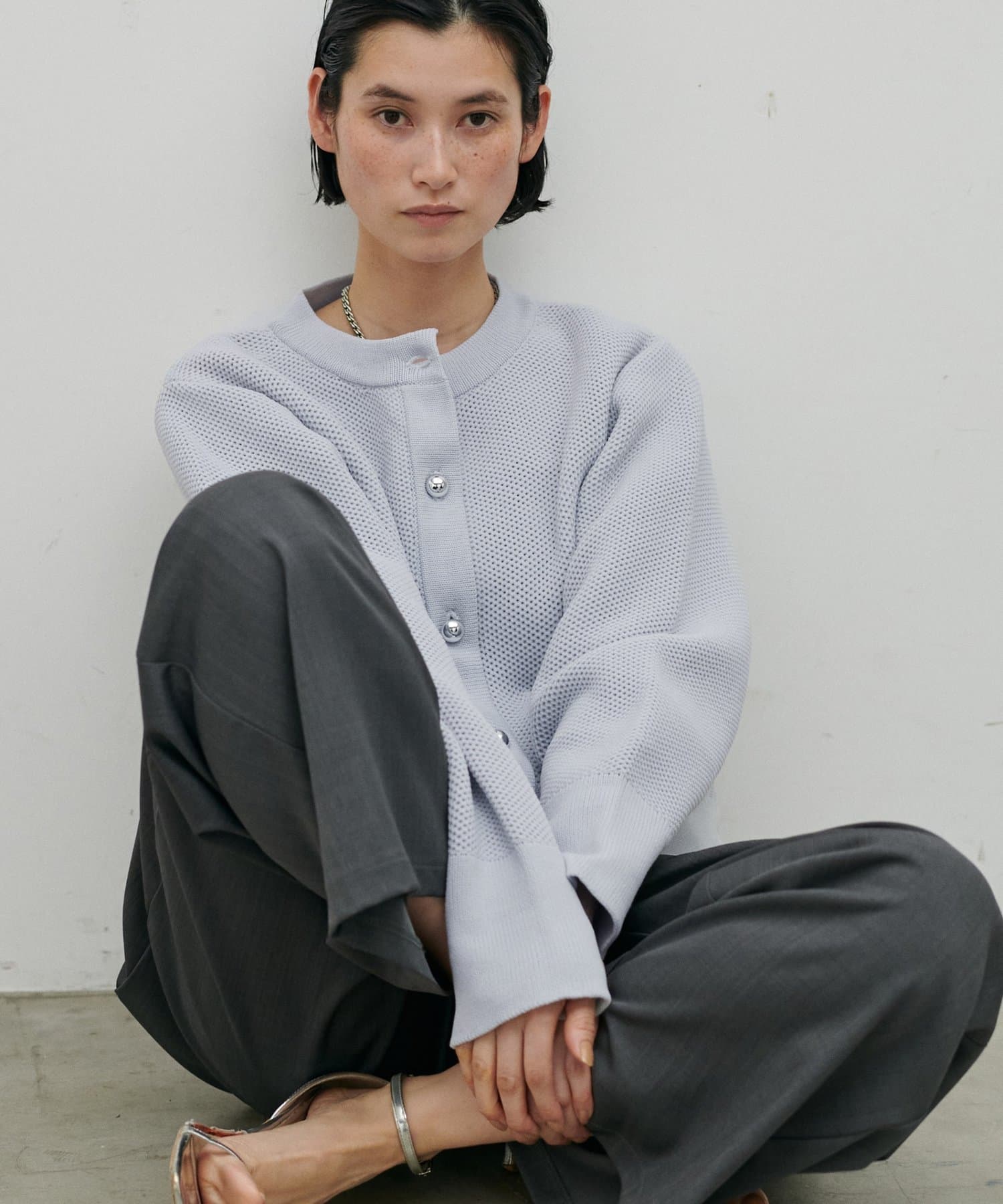 編み地がスタイリングに奥行きをプラス。