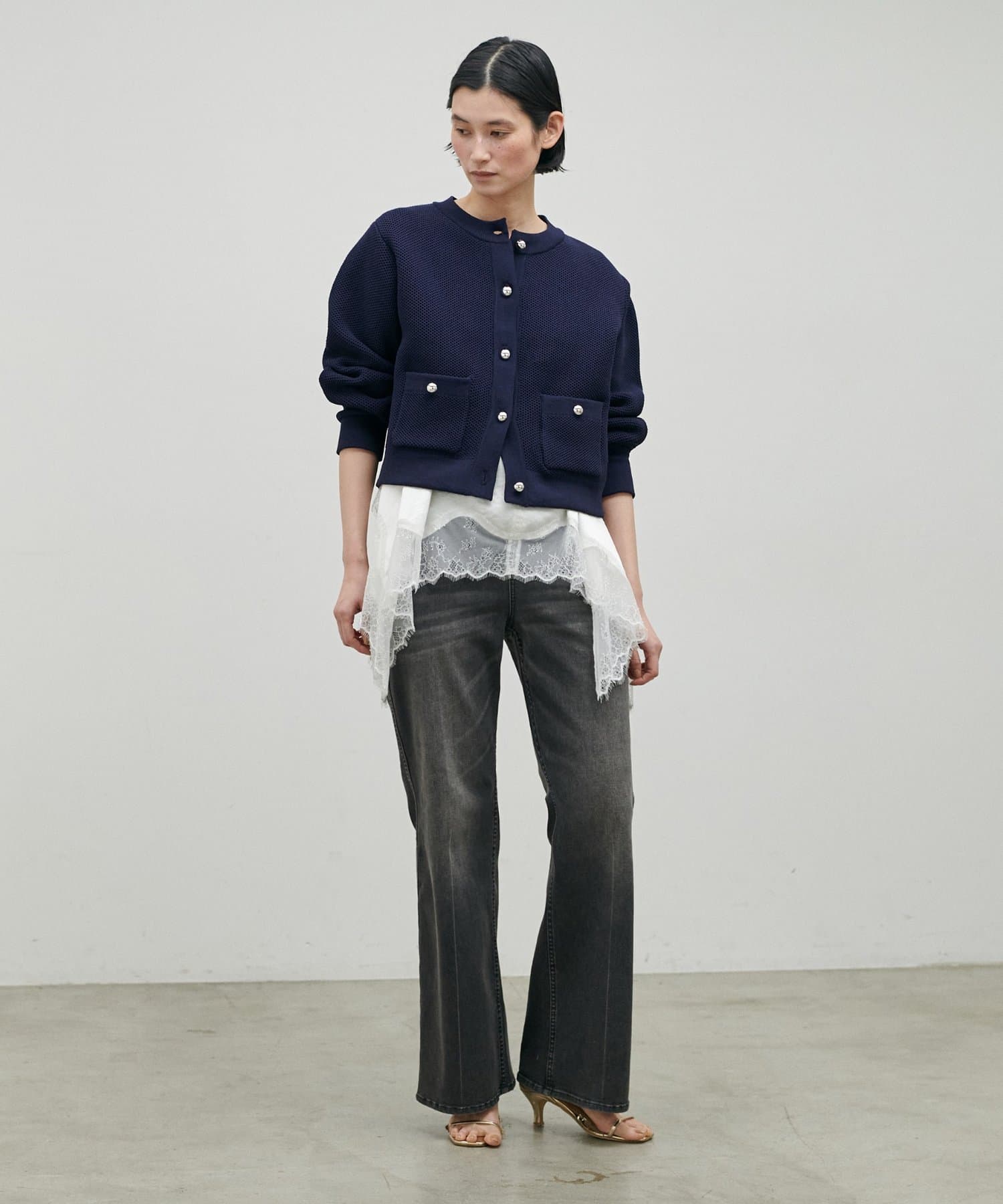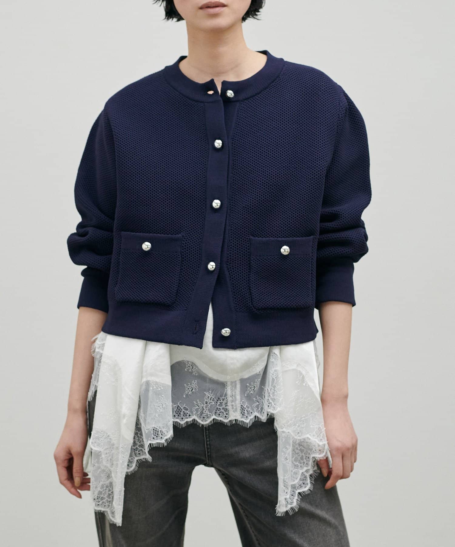 • LARUTA(ラルータ) 軽やかなハニカム編みニットカーディガン