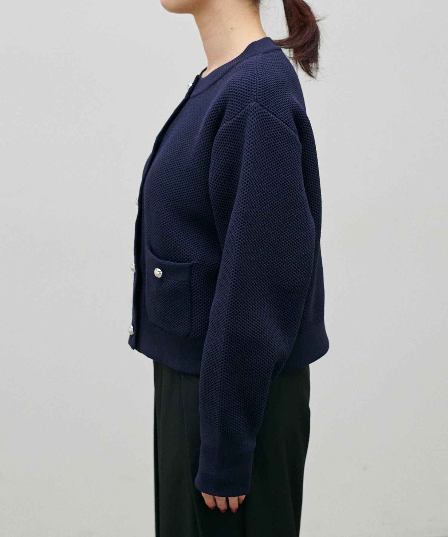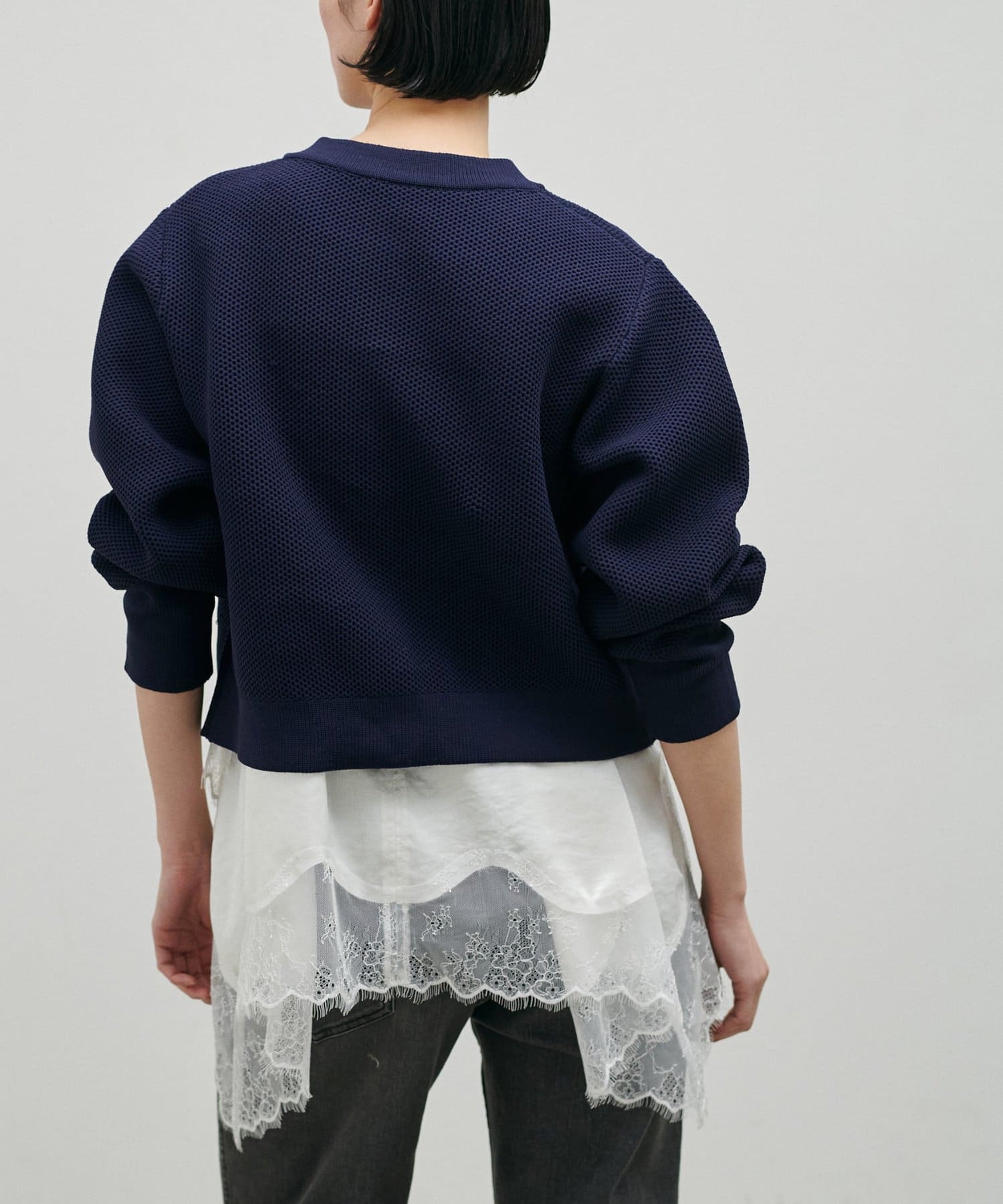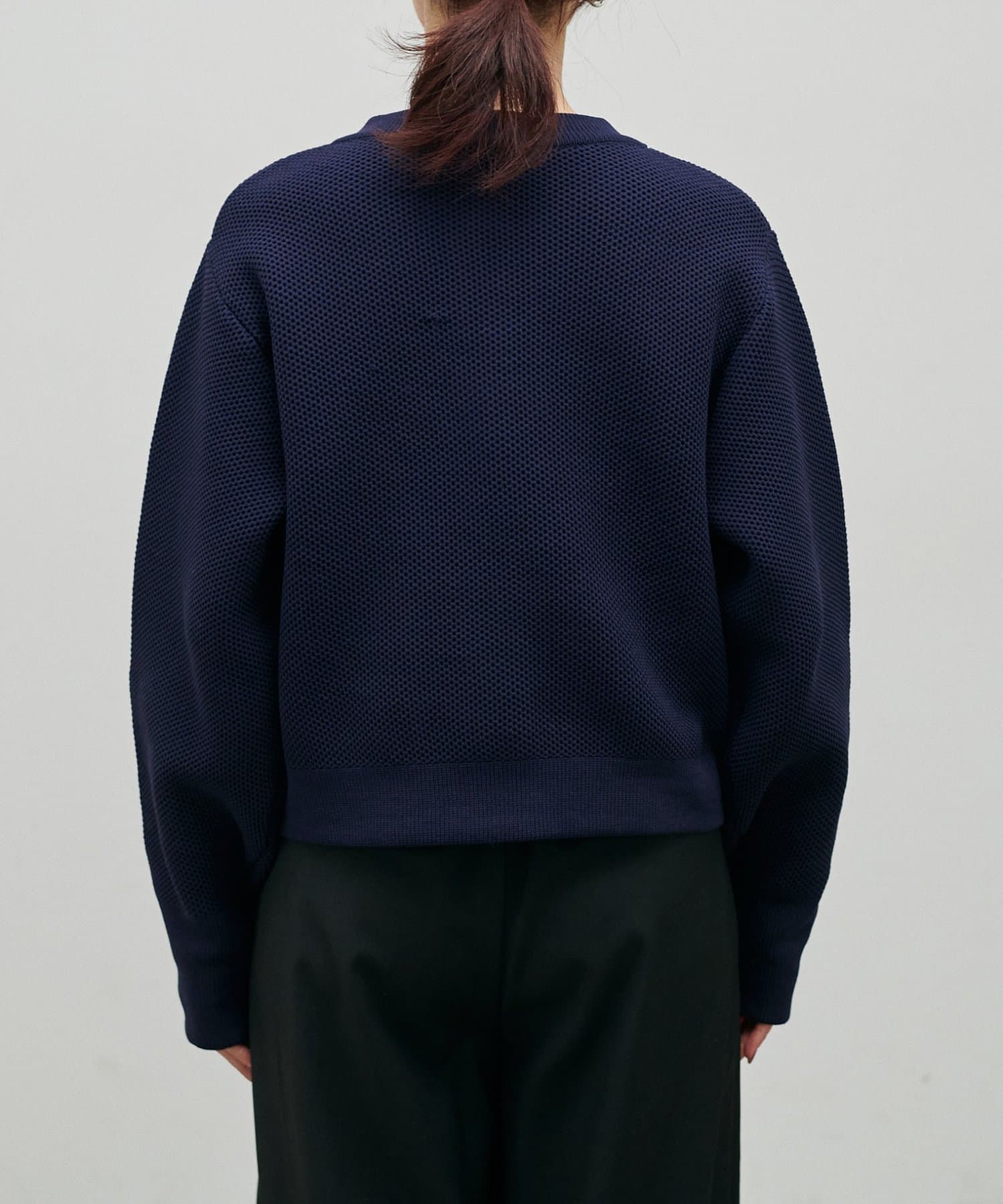 通気性の良い、凹凸のある軽やかなハニカム編みニット素材。