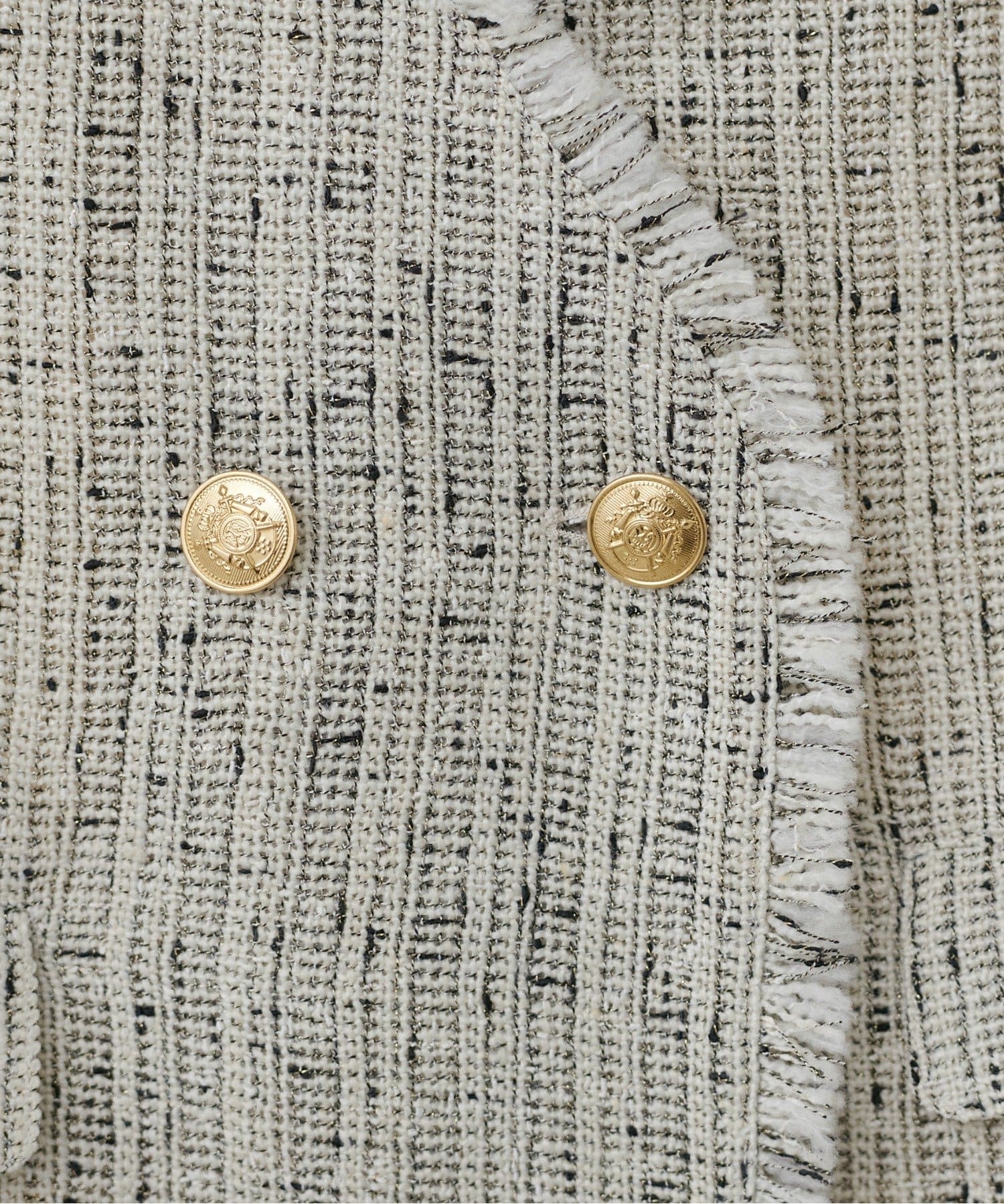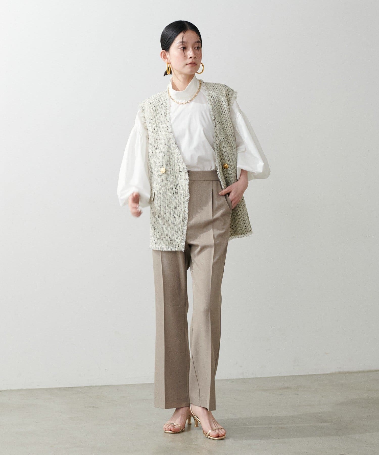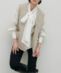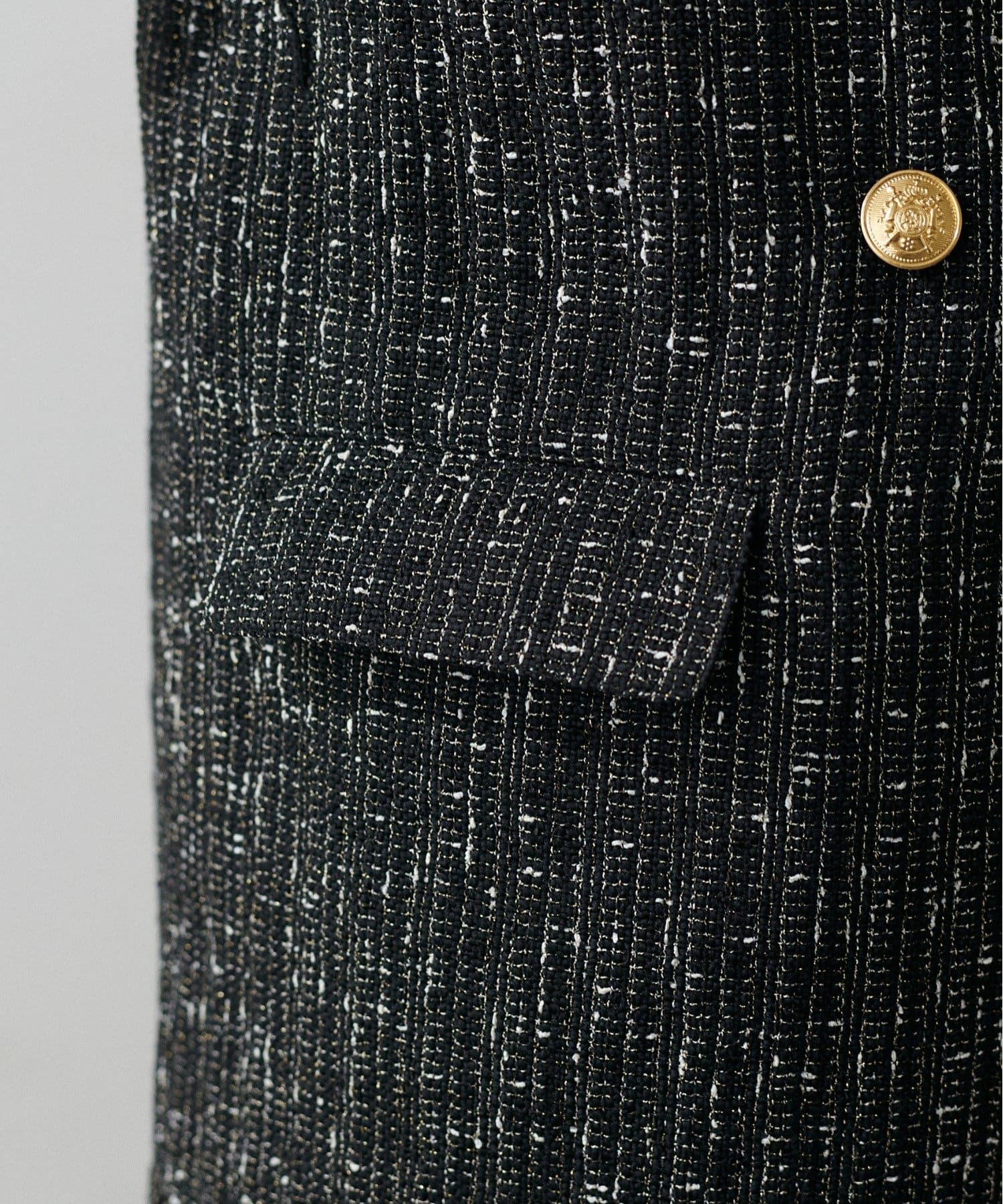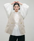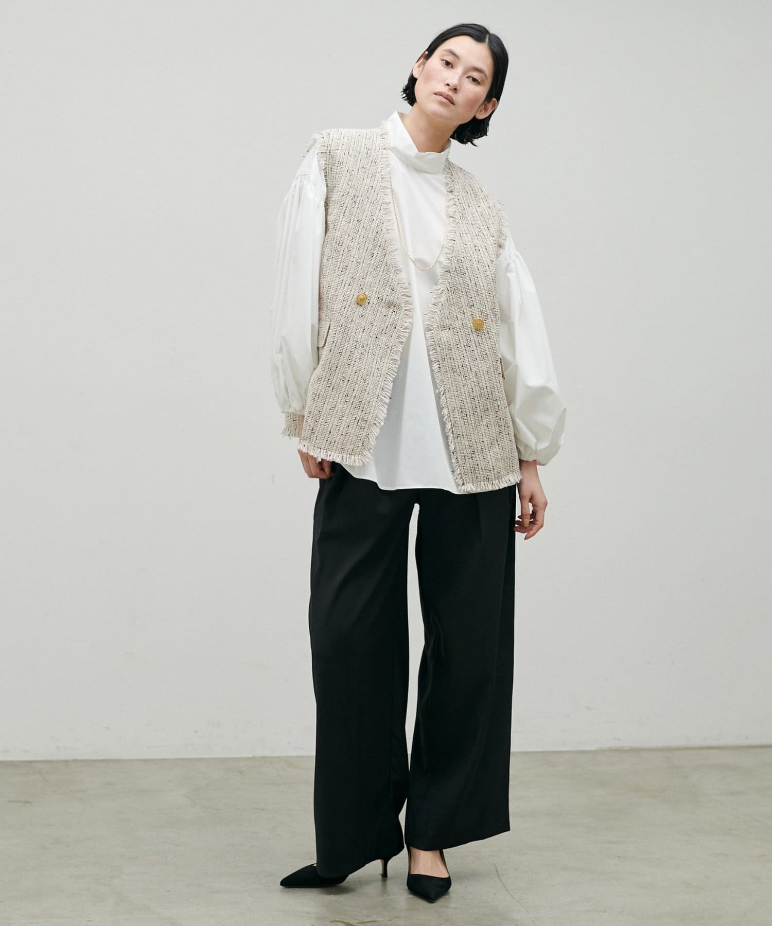 さりげなくラメ糸が織り込まれた高級感のあるツイード素材のベストが登場。