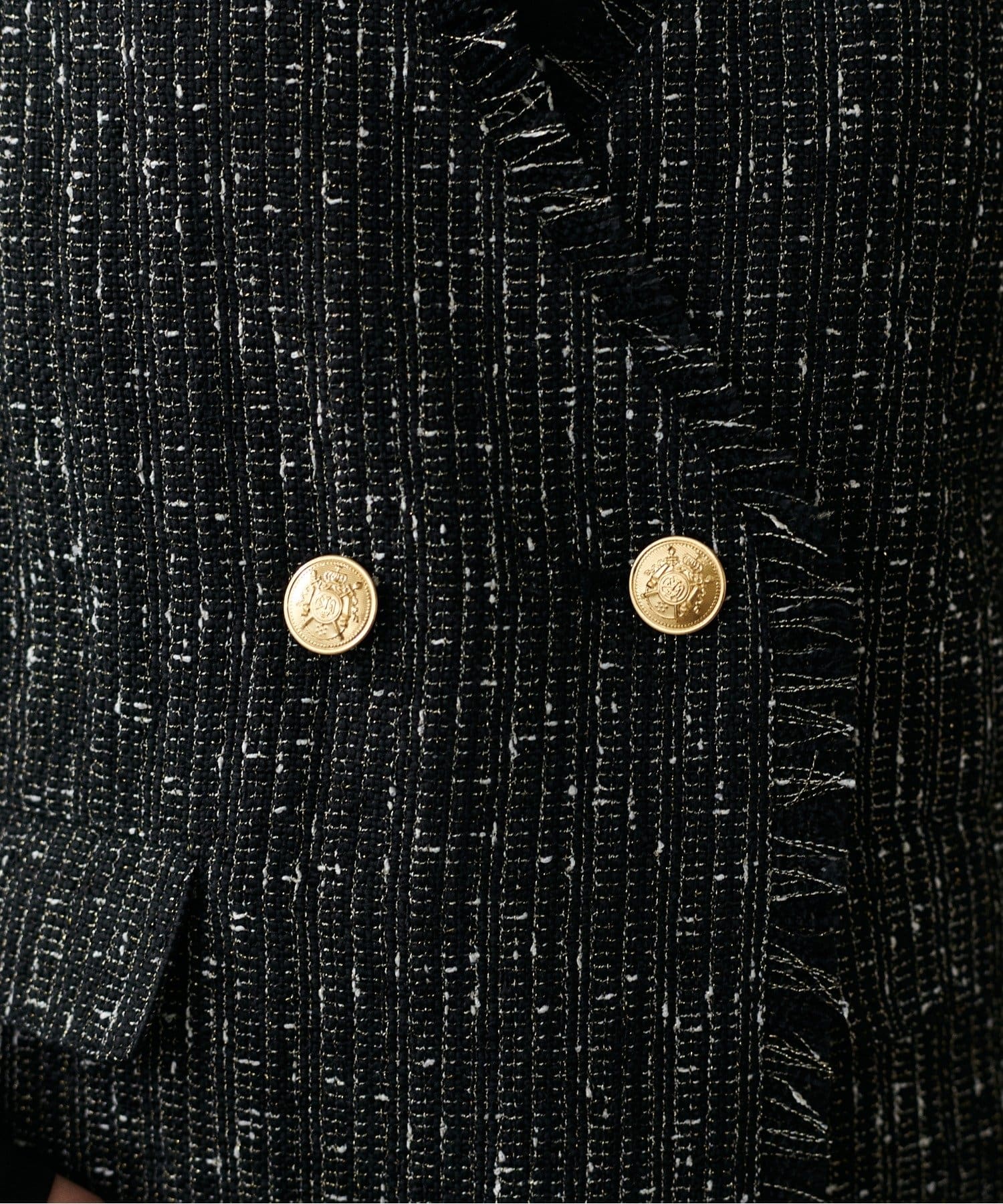 セレモニー対応可/ラメ糸フリンジツイードベスト