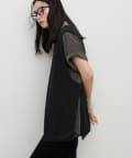 レースやシアー素材のトップスと合わせたミックスコーデもおすすめ。