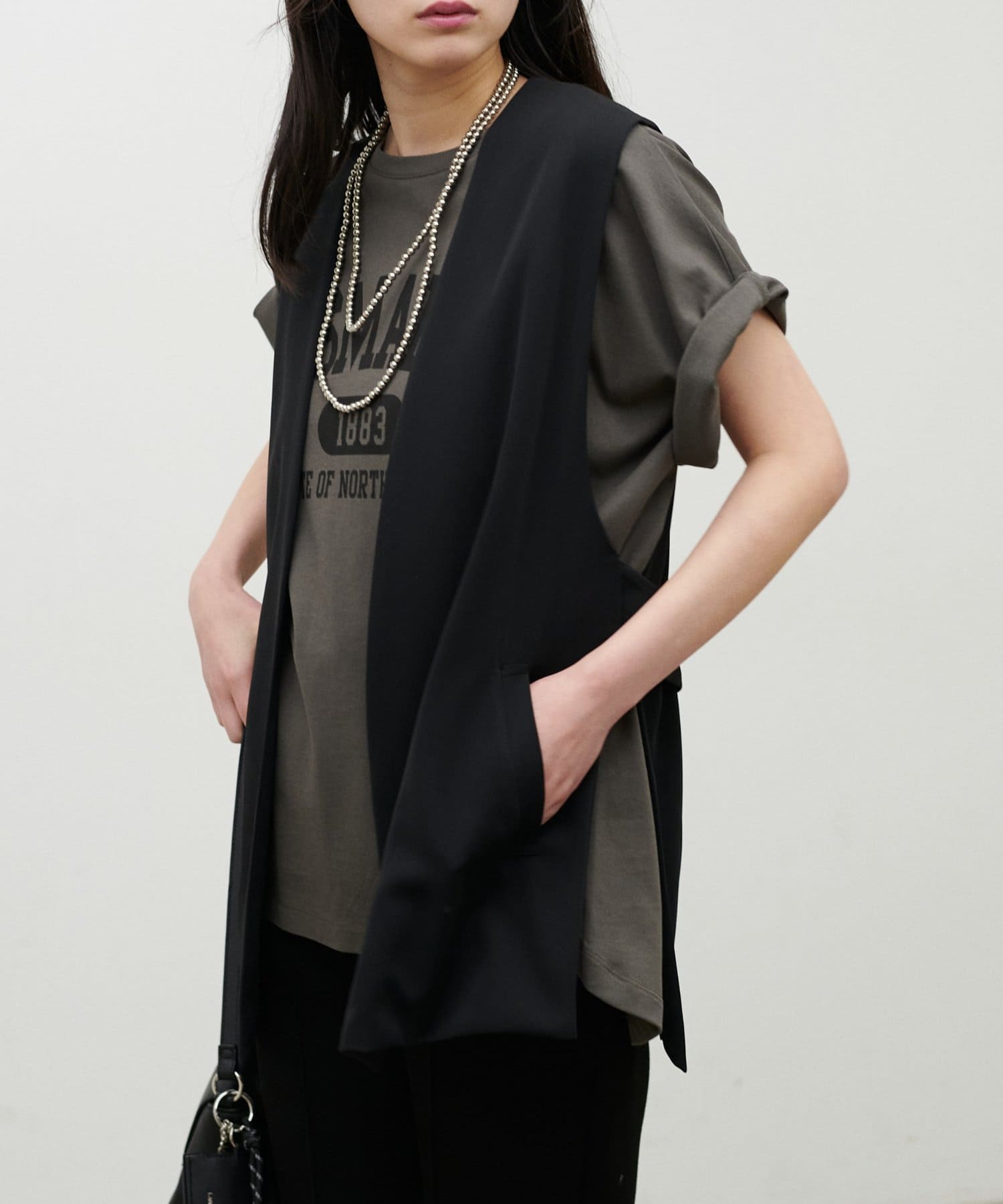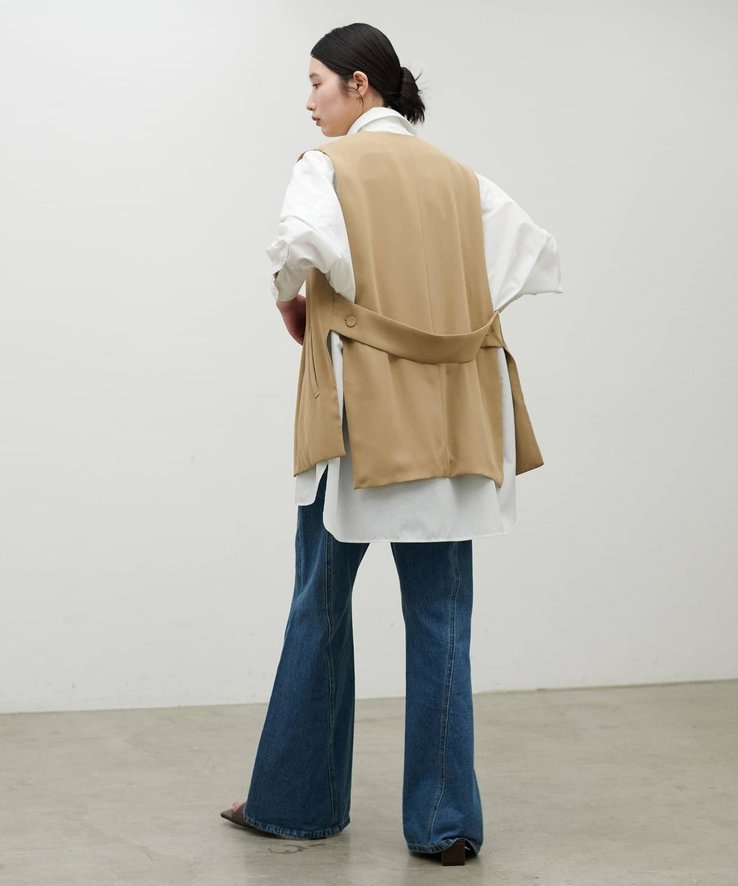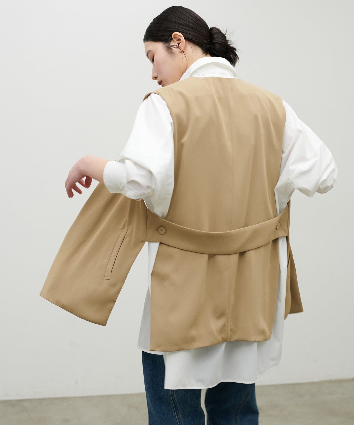 フロントはすっきりと見える設計にこだわり、羽織るだけでスタイリングに奥行きをプラスしてくれます。