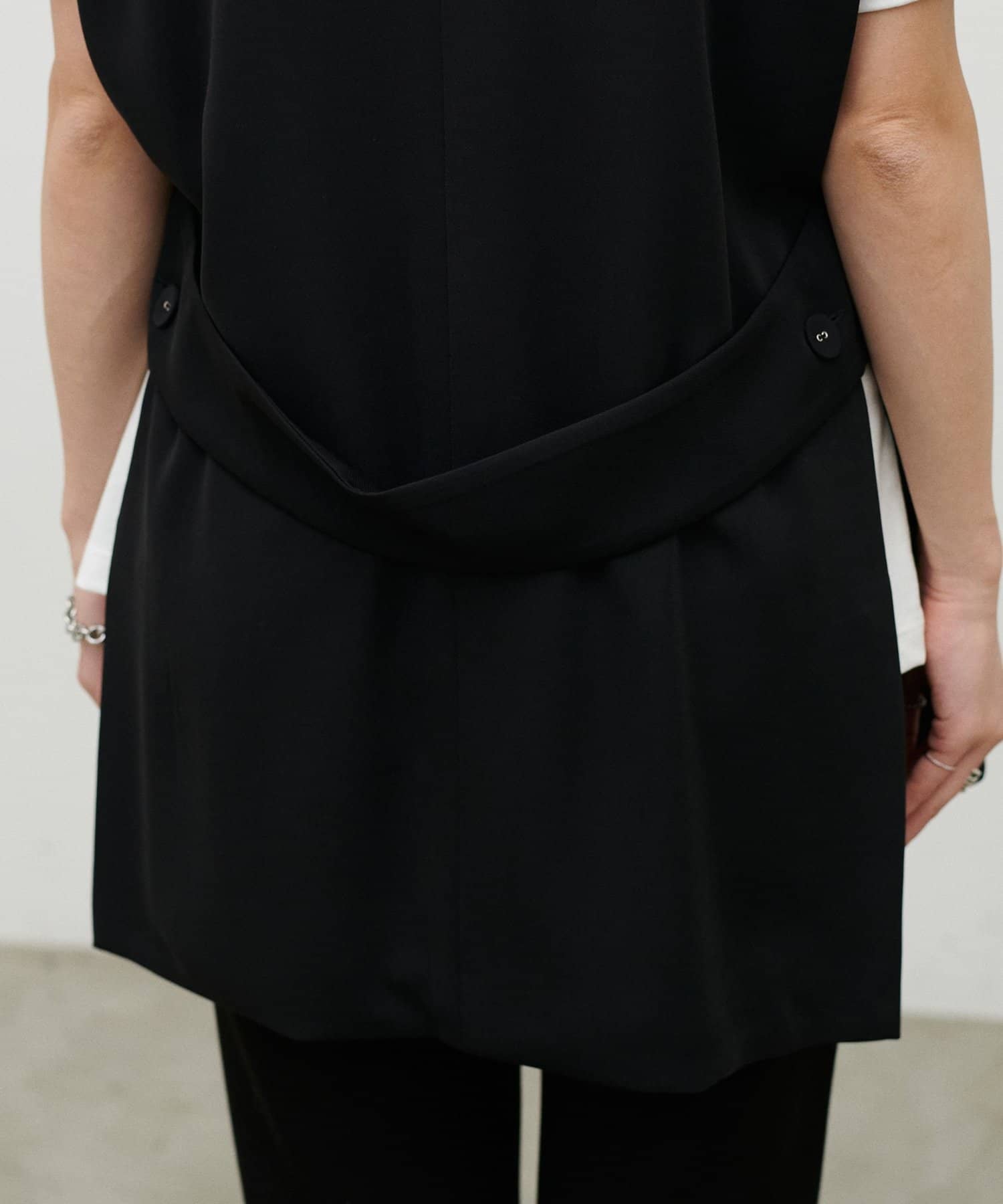 程よいハリ感のあるツイル素材を使用した、ミドル丈のジレ。