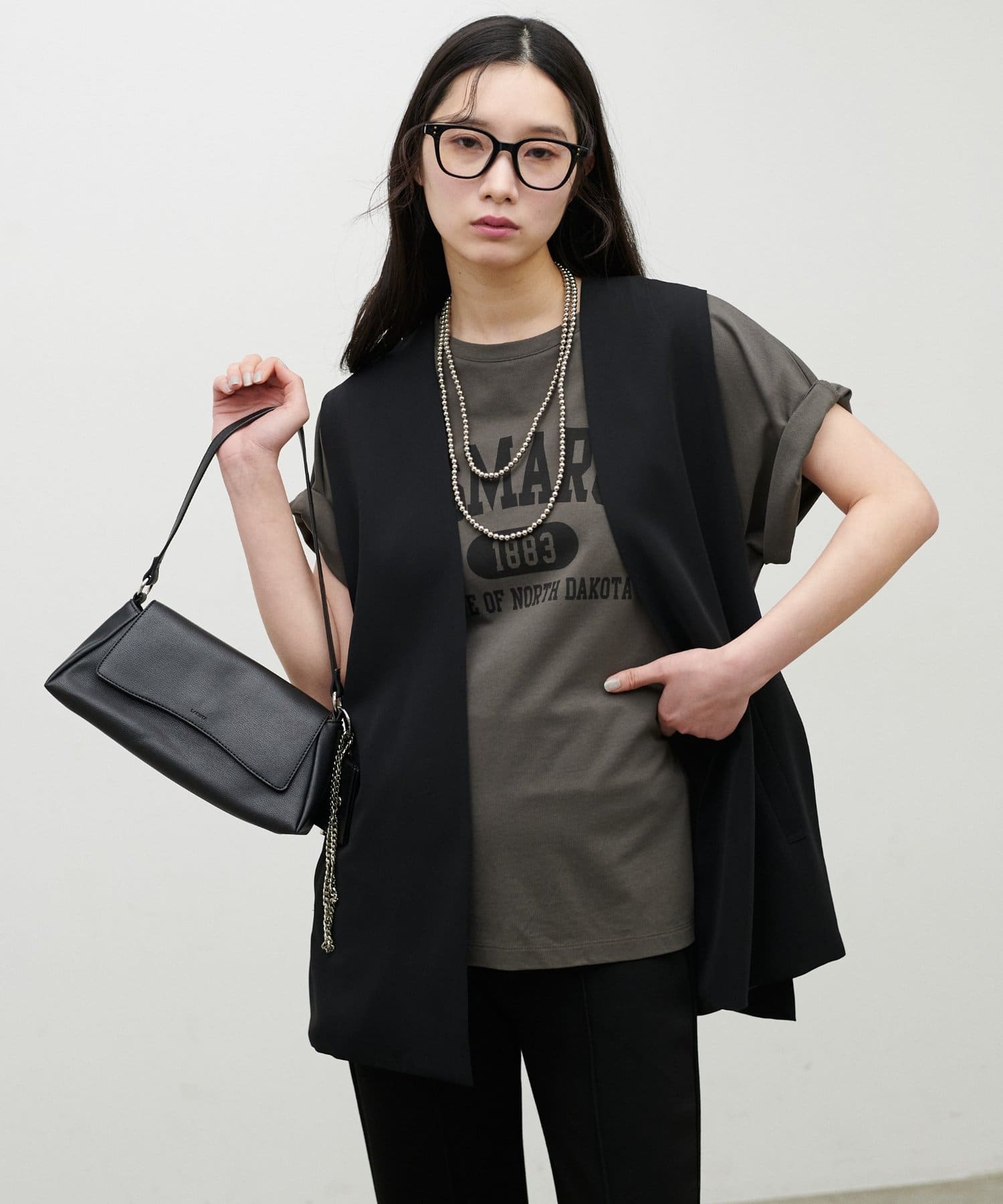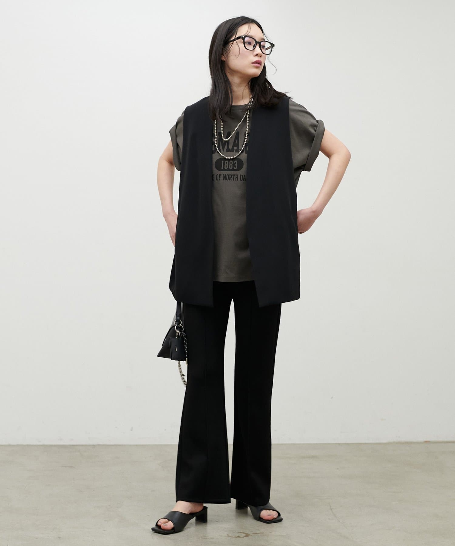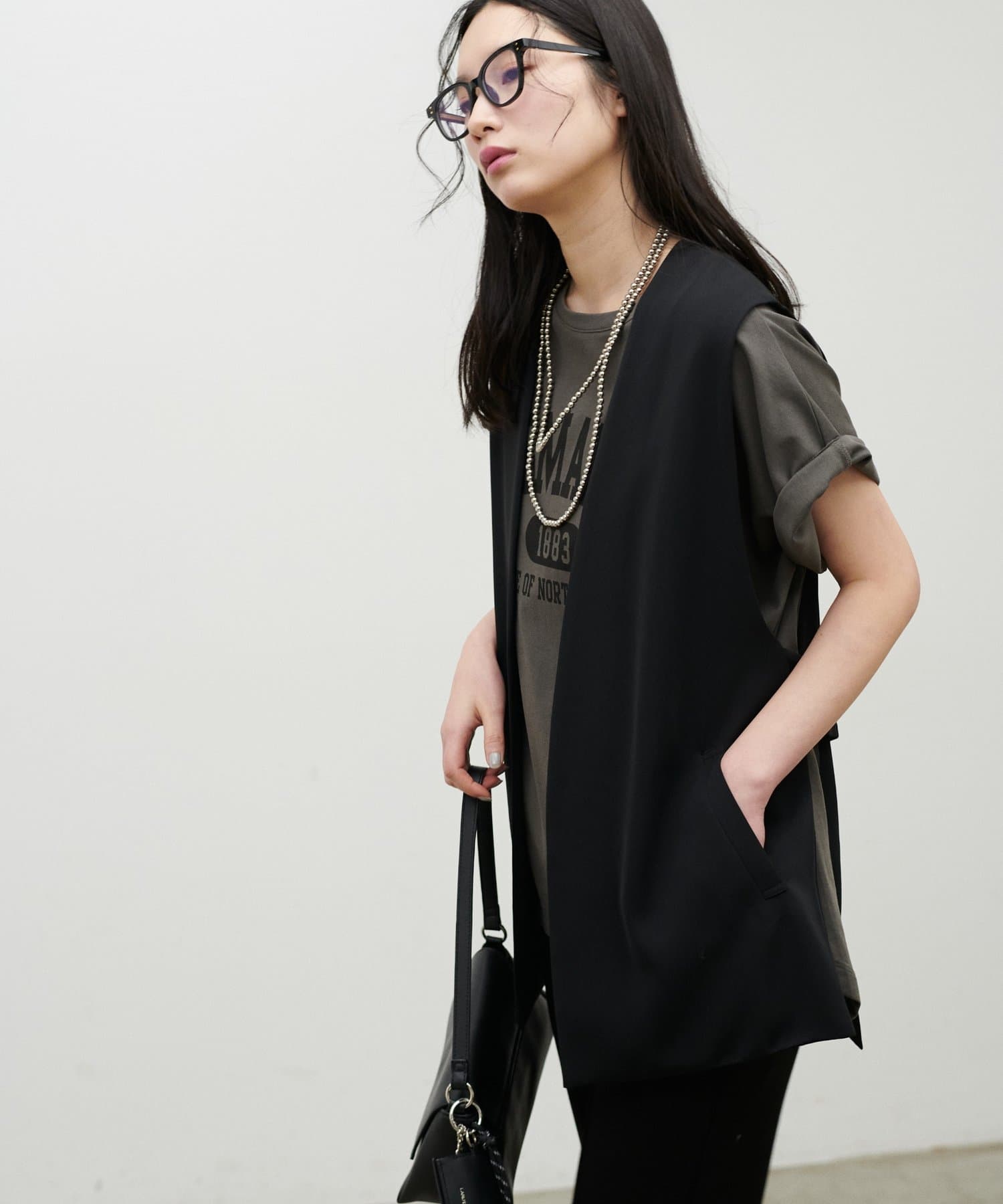 ヒップにかかる絶妙な着丈で、縦のラインを強調しながらすっきりとした印象に仕上げました。