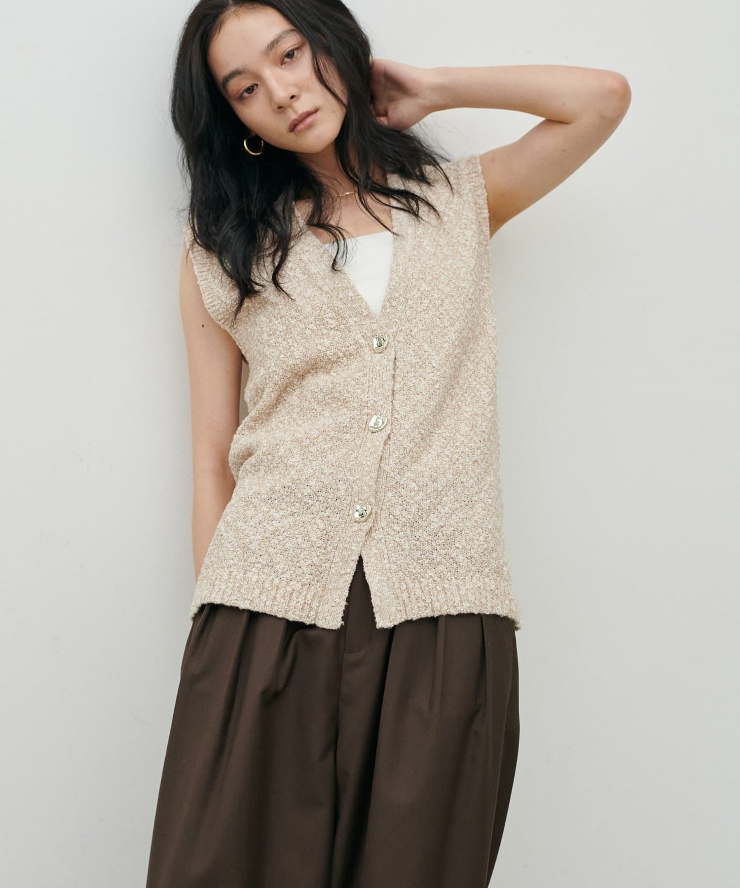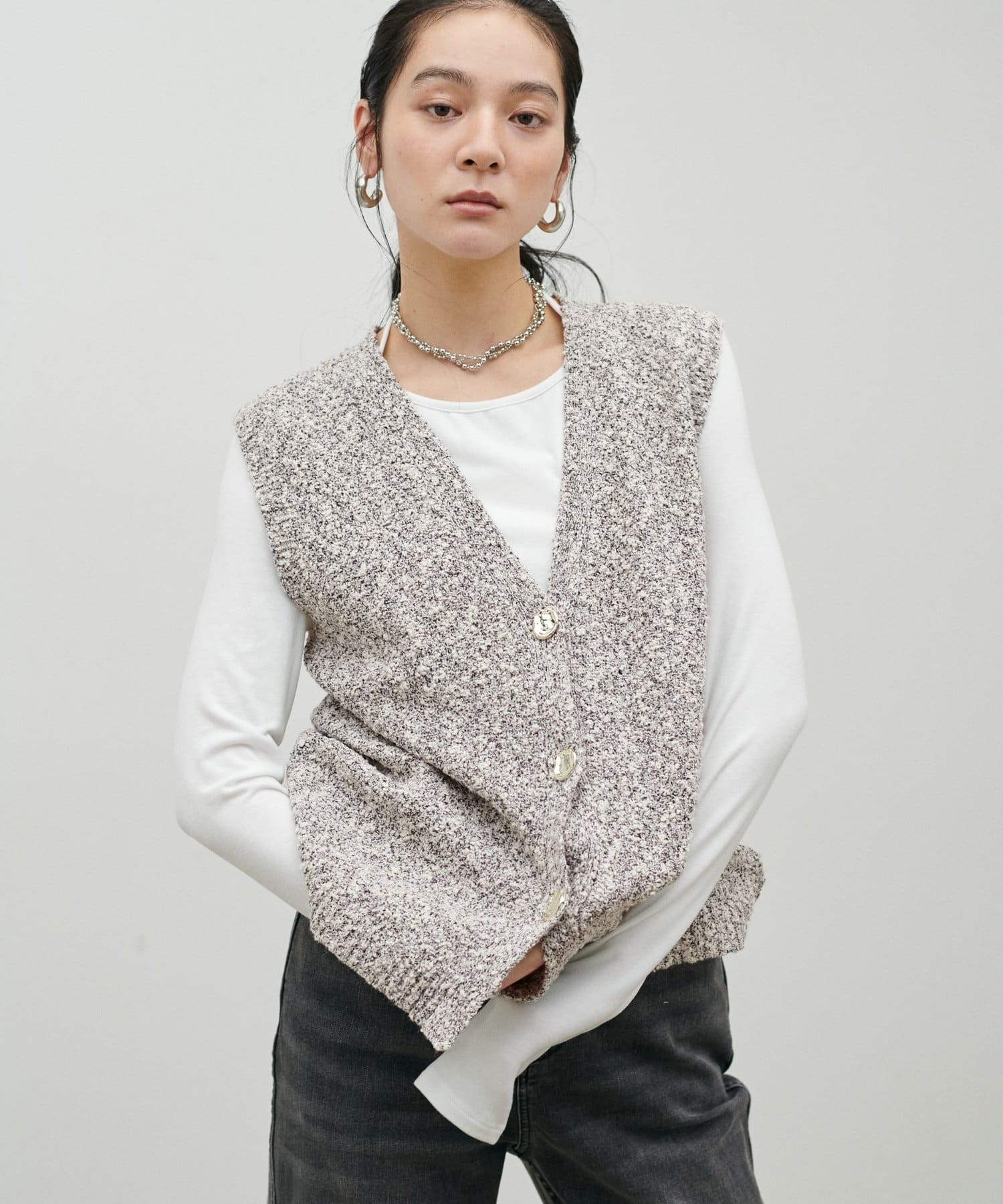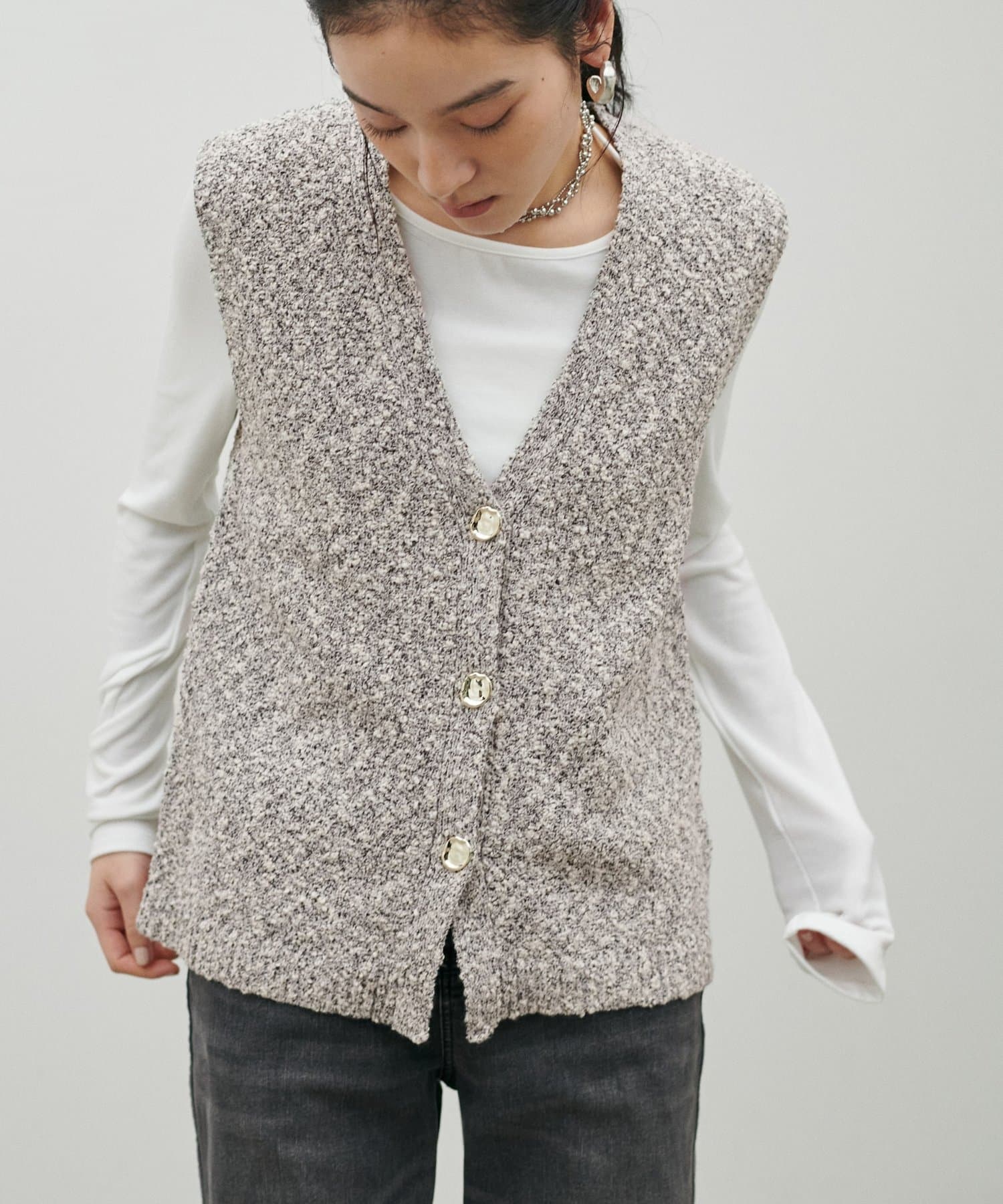 スラブ糸の表情のある素材感とMIX糸が特徴的なベスト。