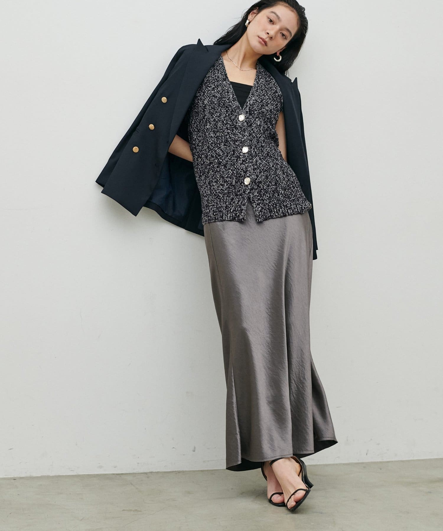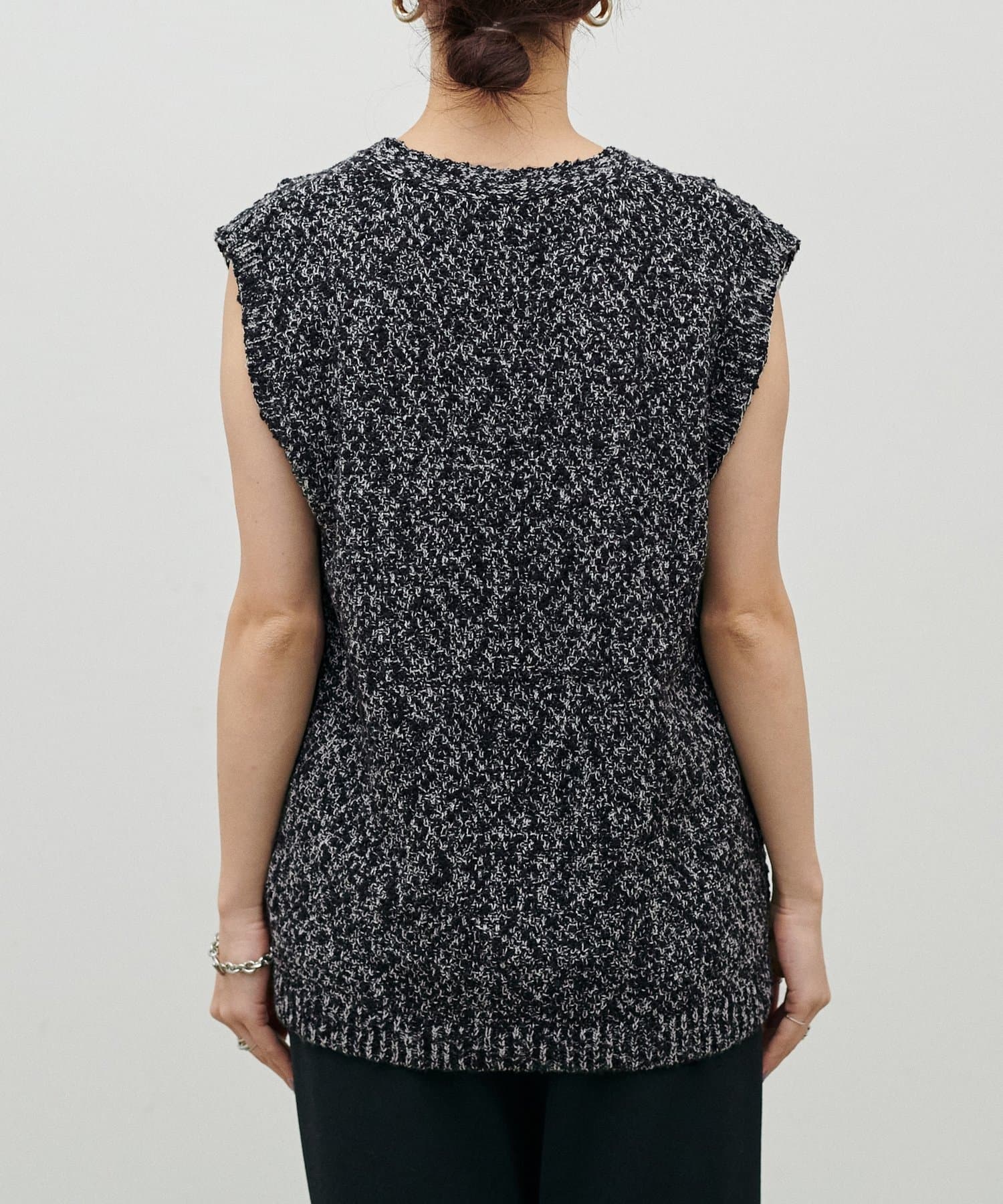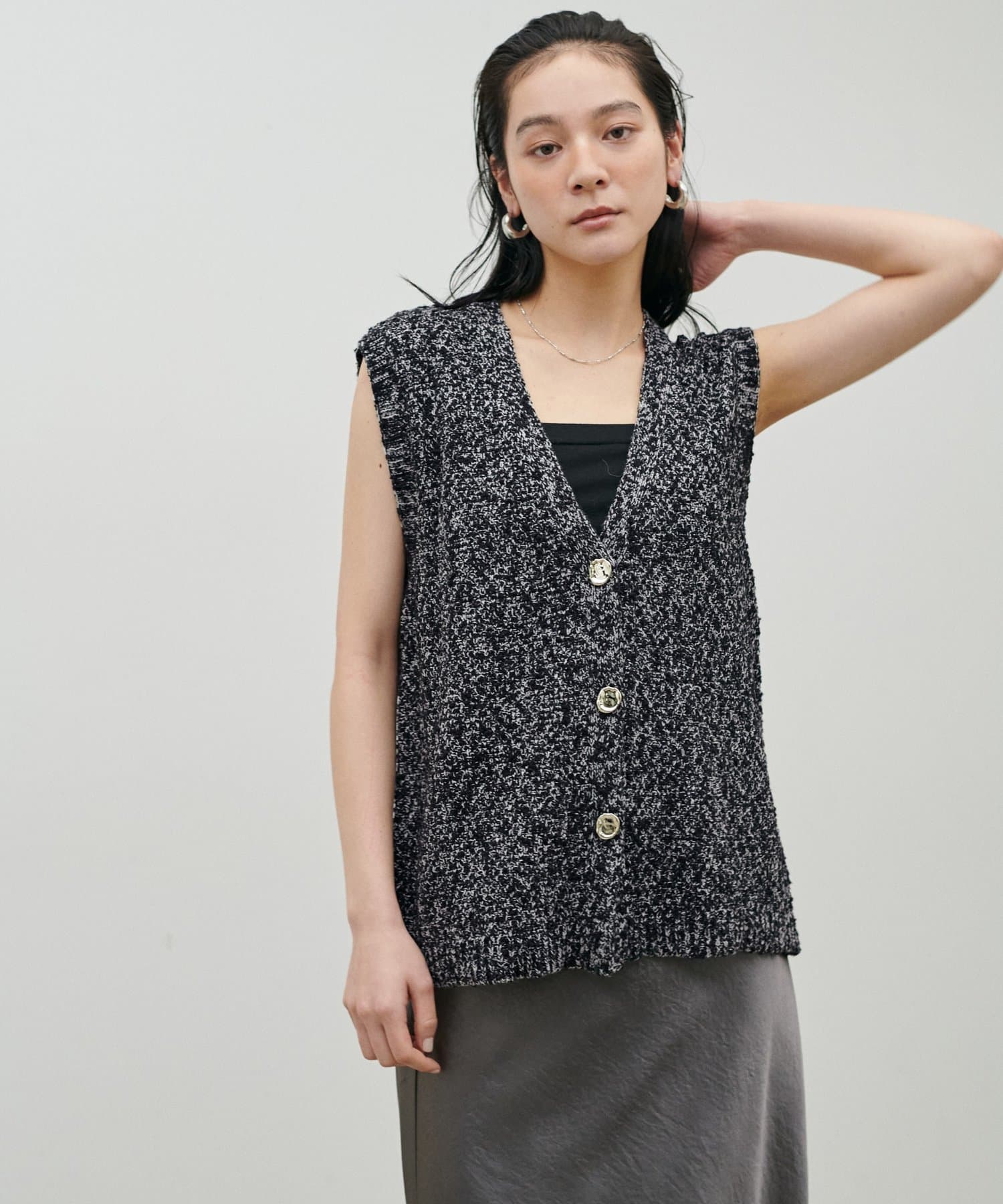 スラブ糸の表情のある素材感とMIX糸が特徴的なベスト。