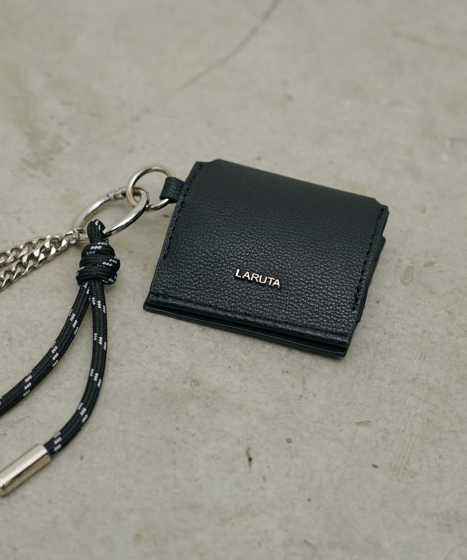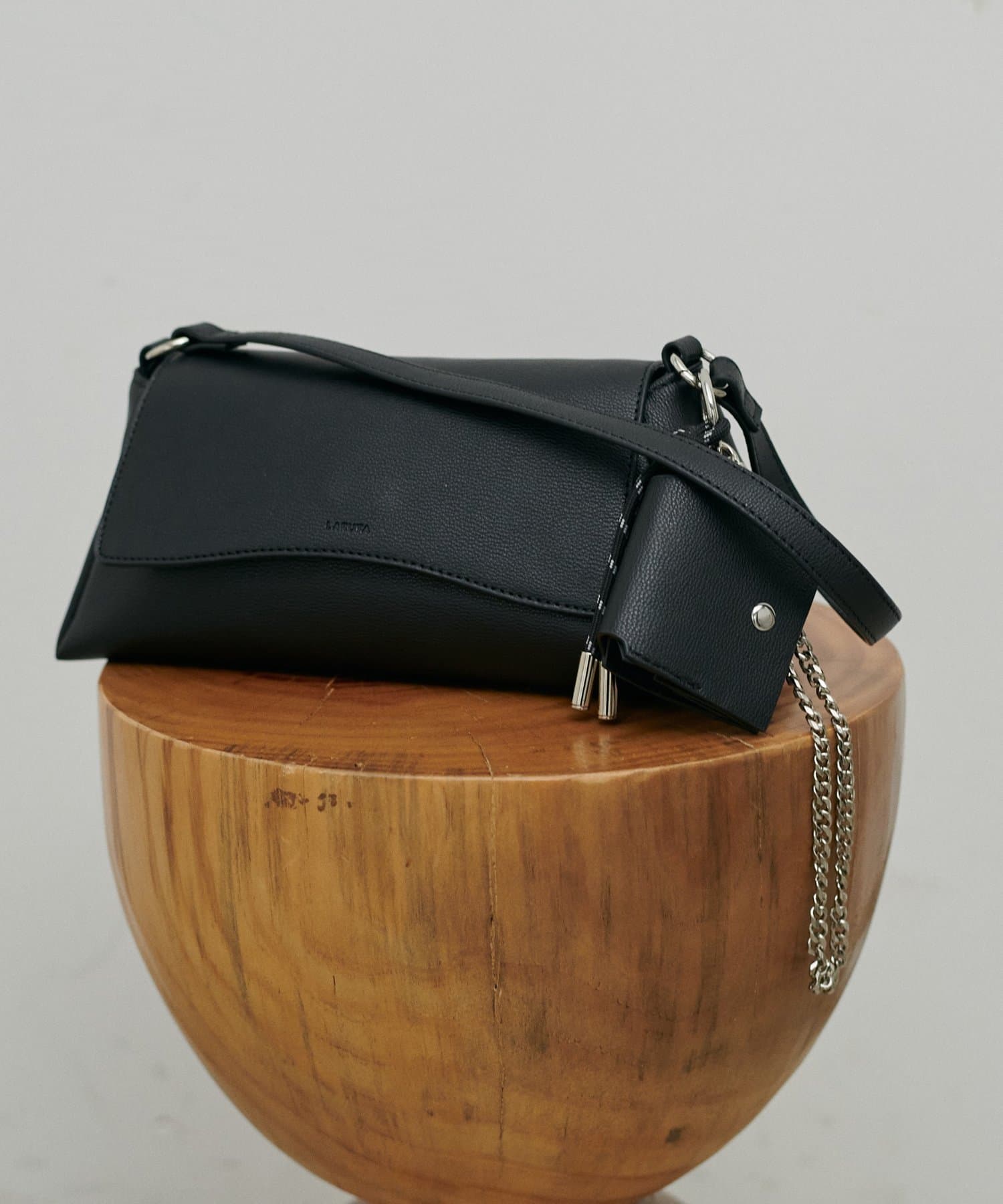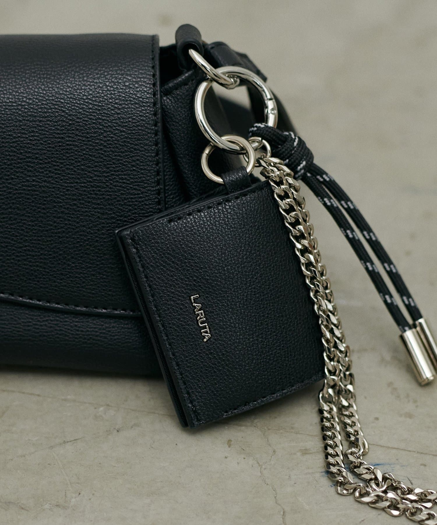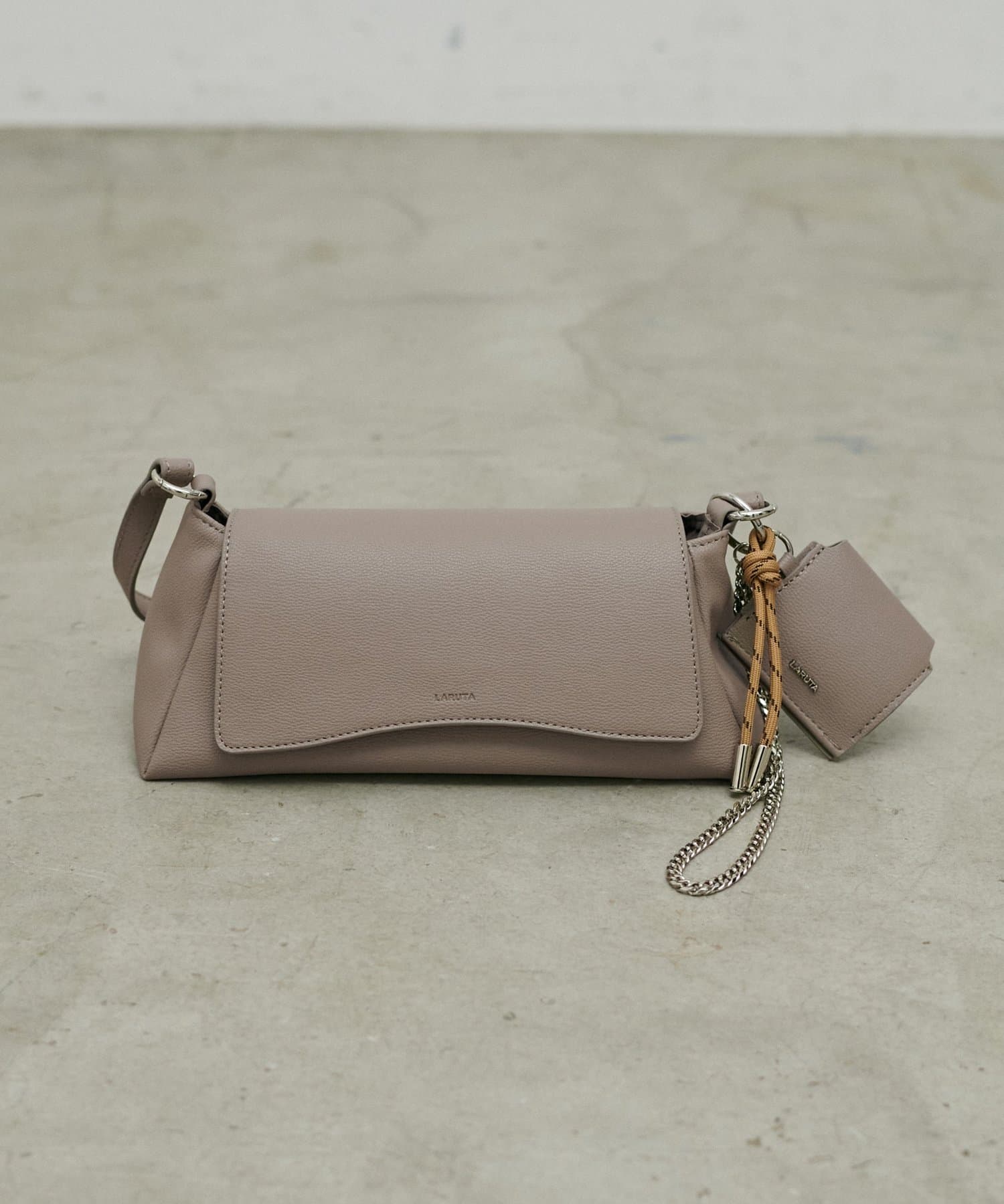 立体的なLARUTAのエンボスデザインや、トレンドのチャームもついているのがポイント。