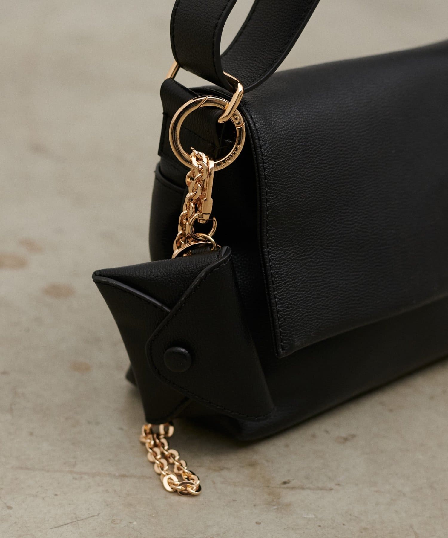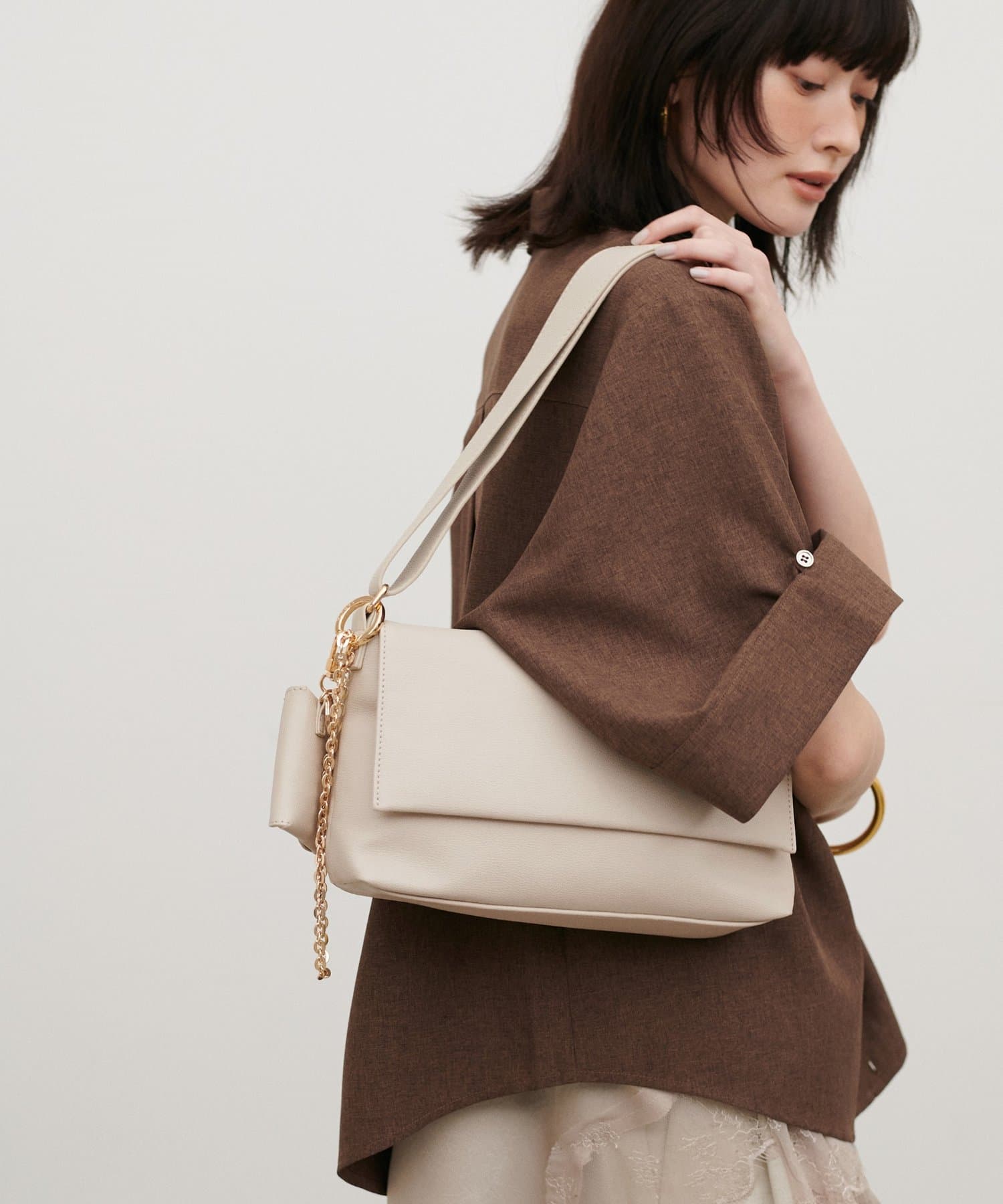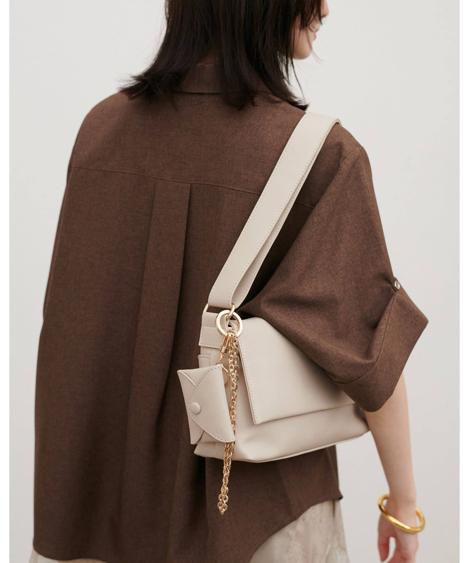 サイドのミニポーチには鍵が取り付けられるチェーン付き。
