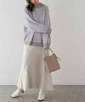 腰回りが隠れる着丈は、ロングスカート合わせでIラインを強調したコーデがおすすめ。