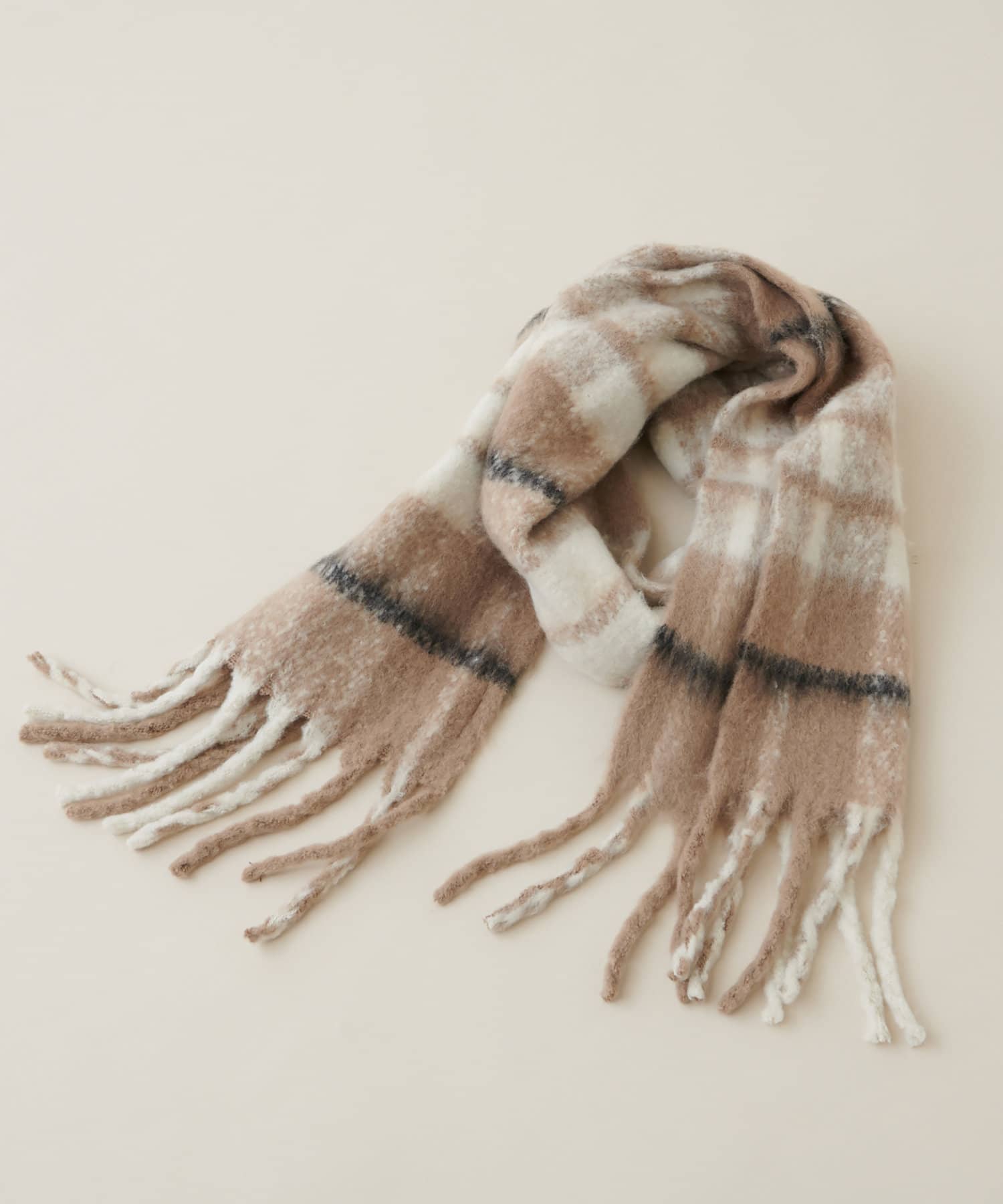 ふわふわでボリュームたっぷりなフリンジマフラーは、