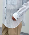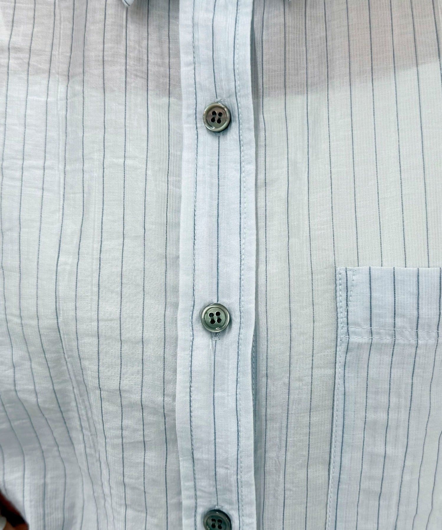 ・軽やかな素材で涼しく着用できるストライプシアーシャツです