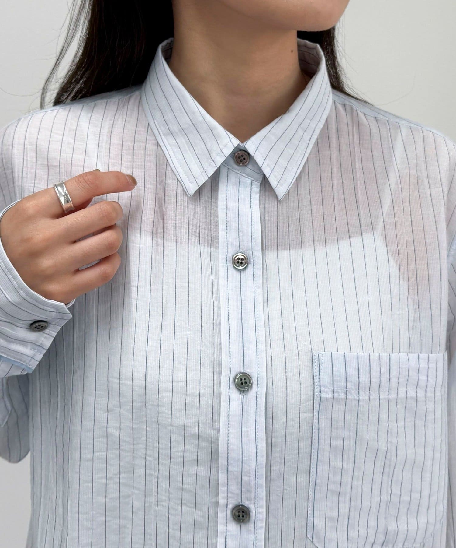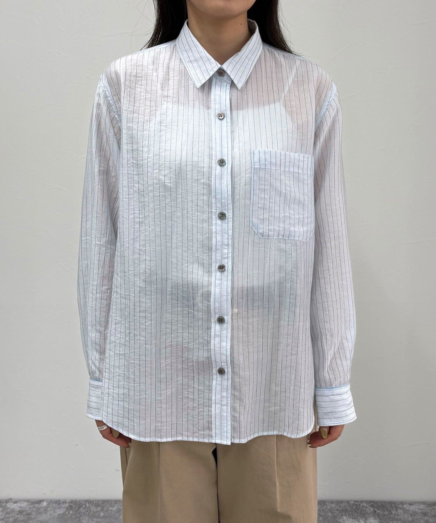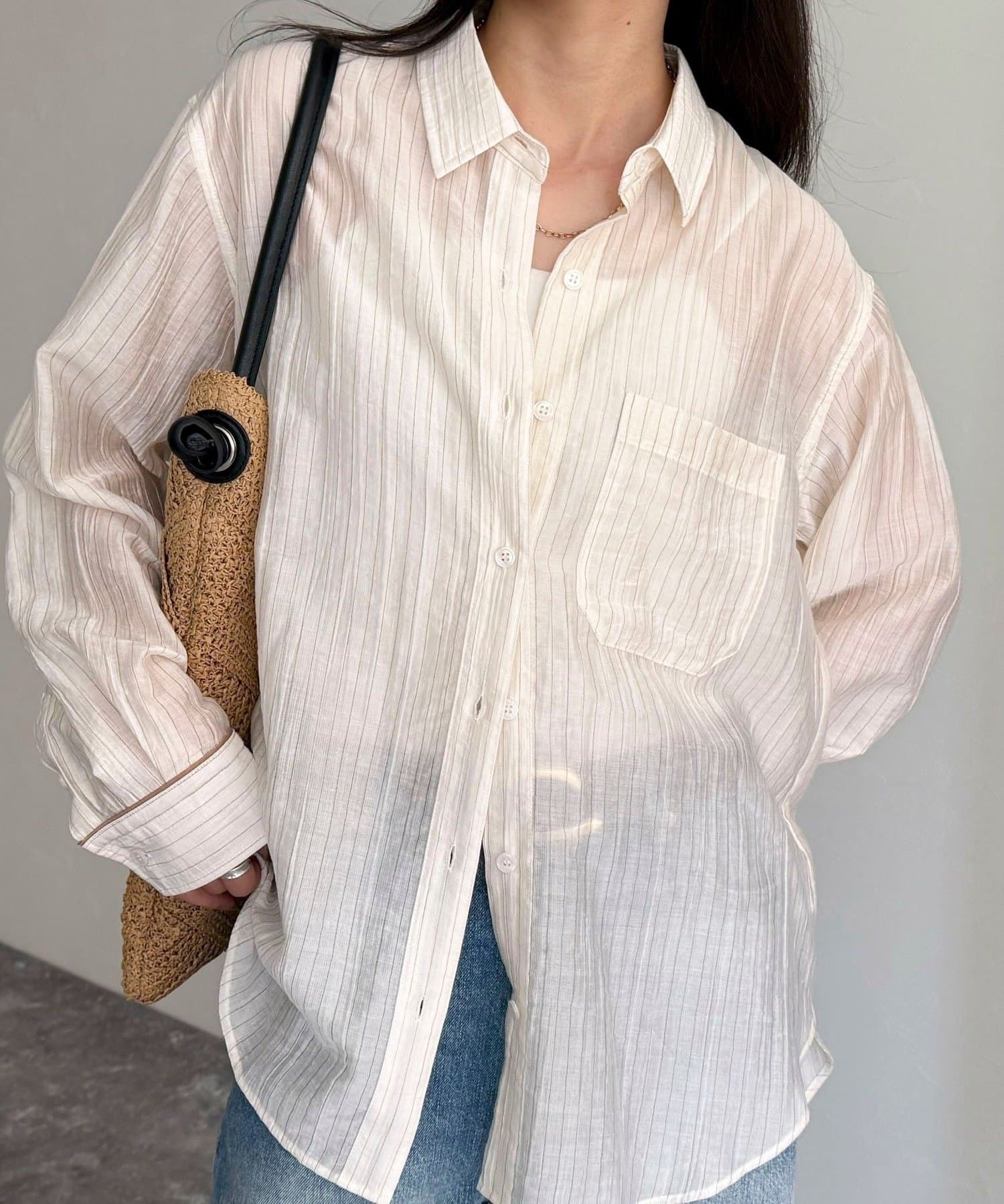 爽やかな透け感が魅力のストライプシアーシャツ