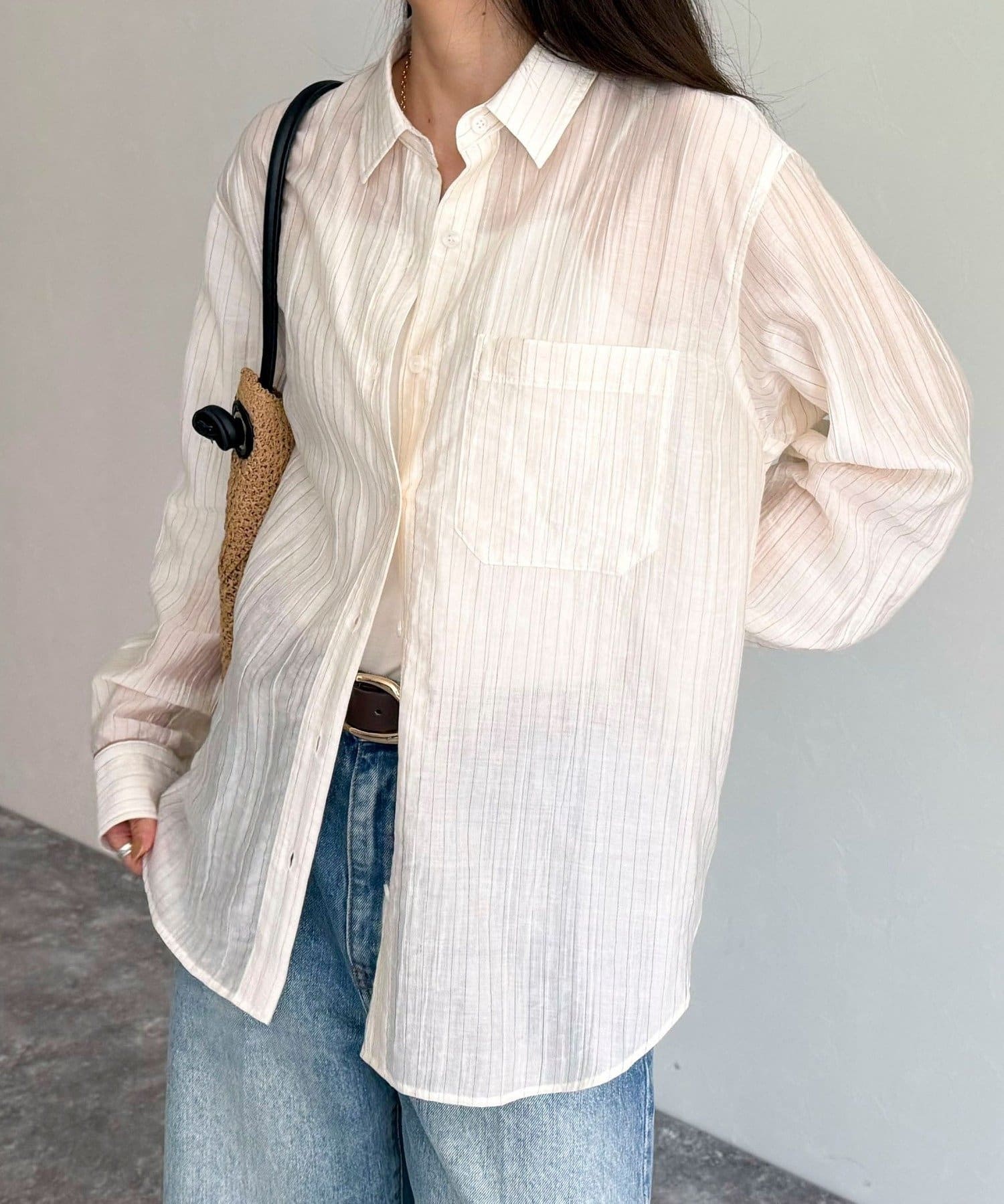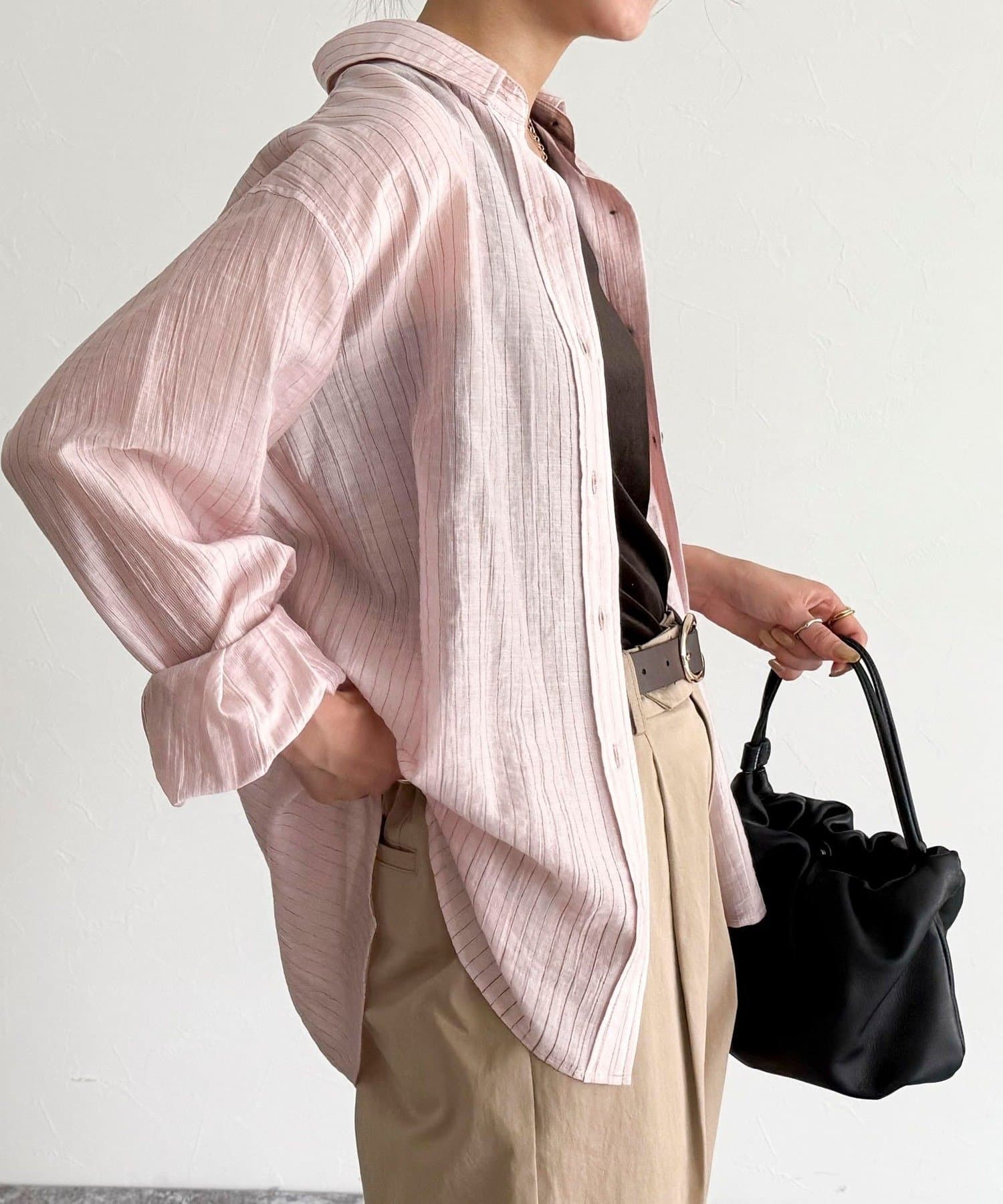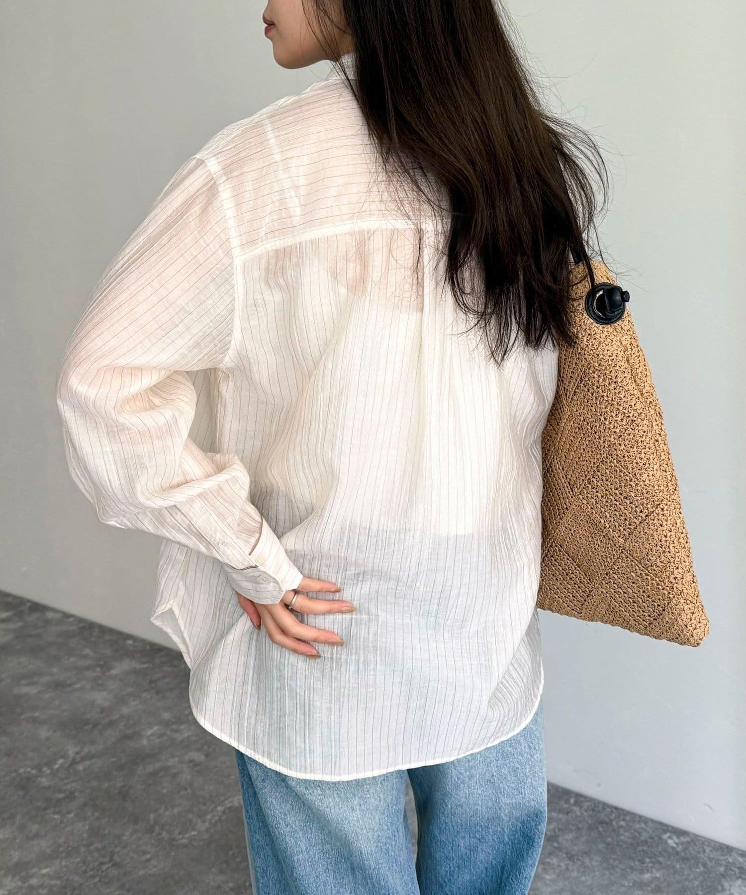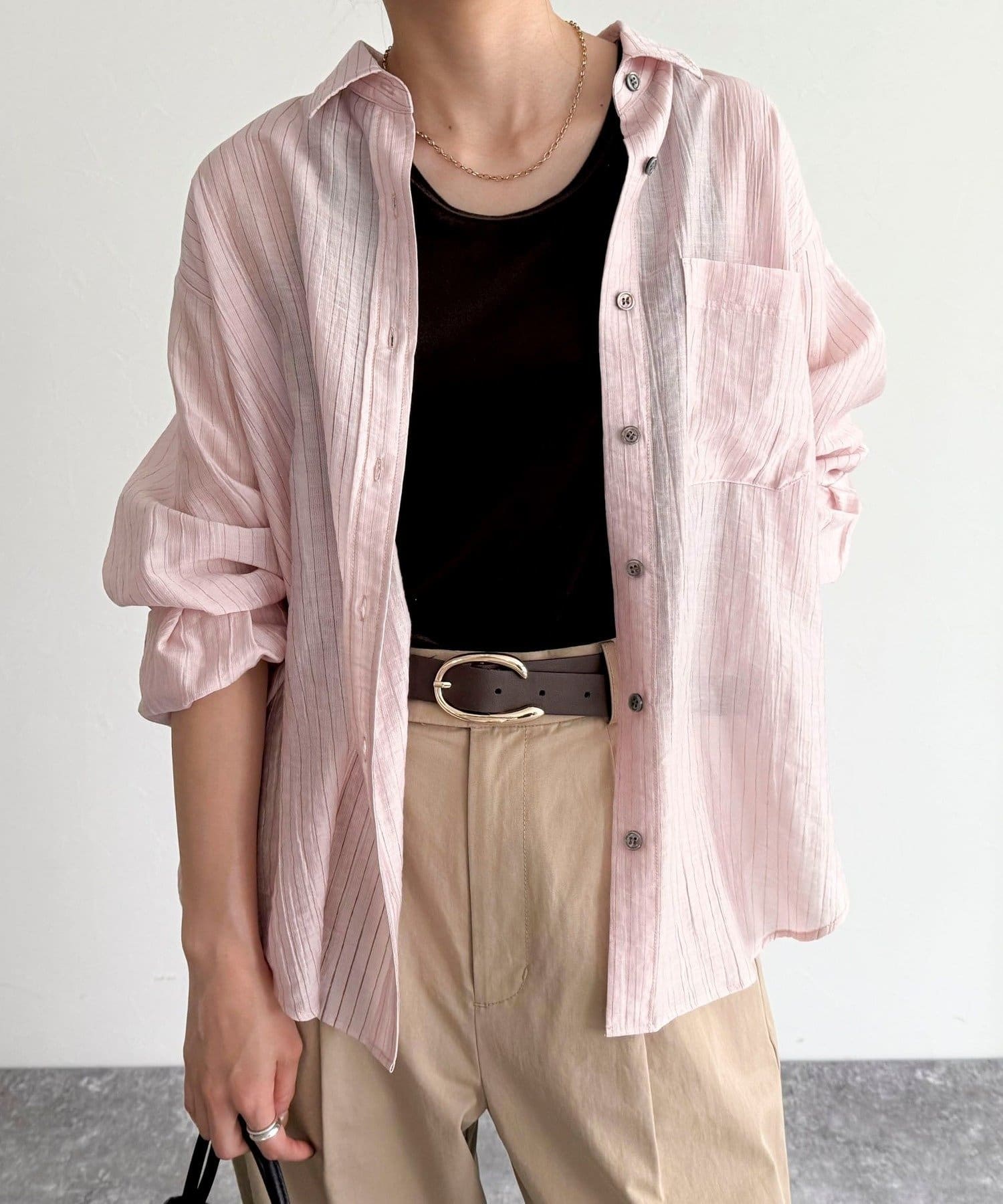 ・程よい透け感が抜け感を演出し、インナーとのレイヤードでさまざまな着こなしが楽しめます