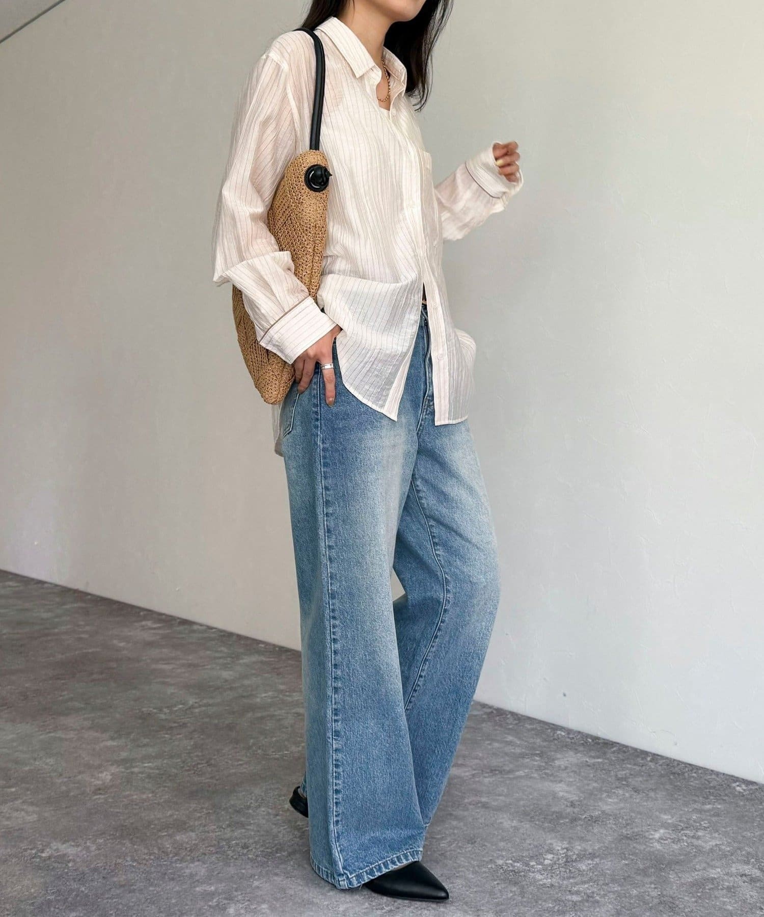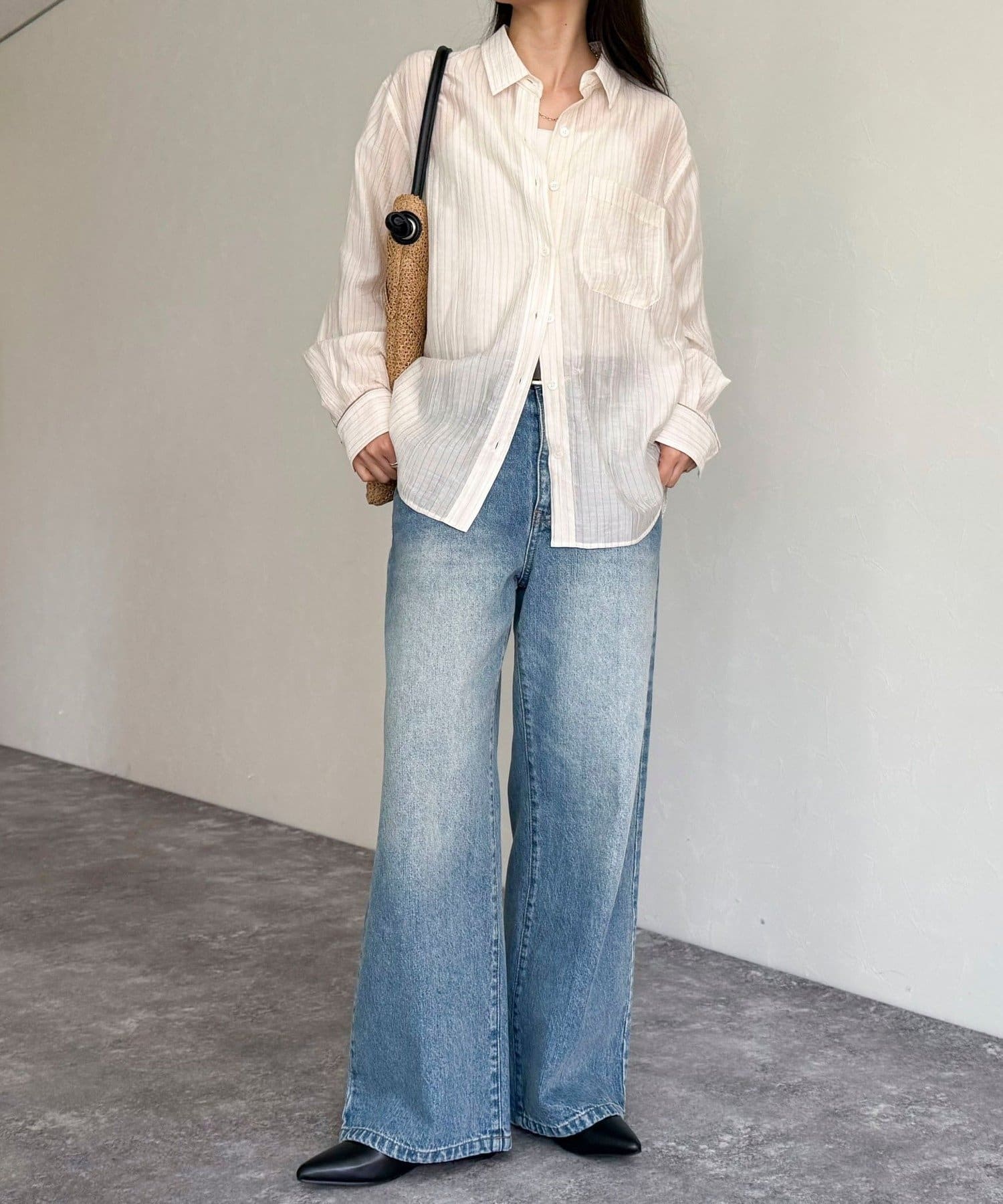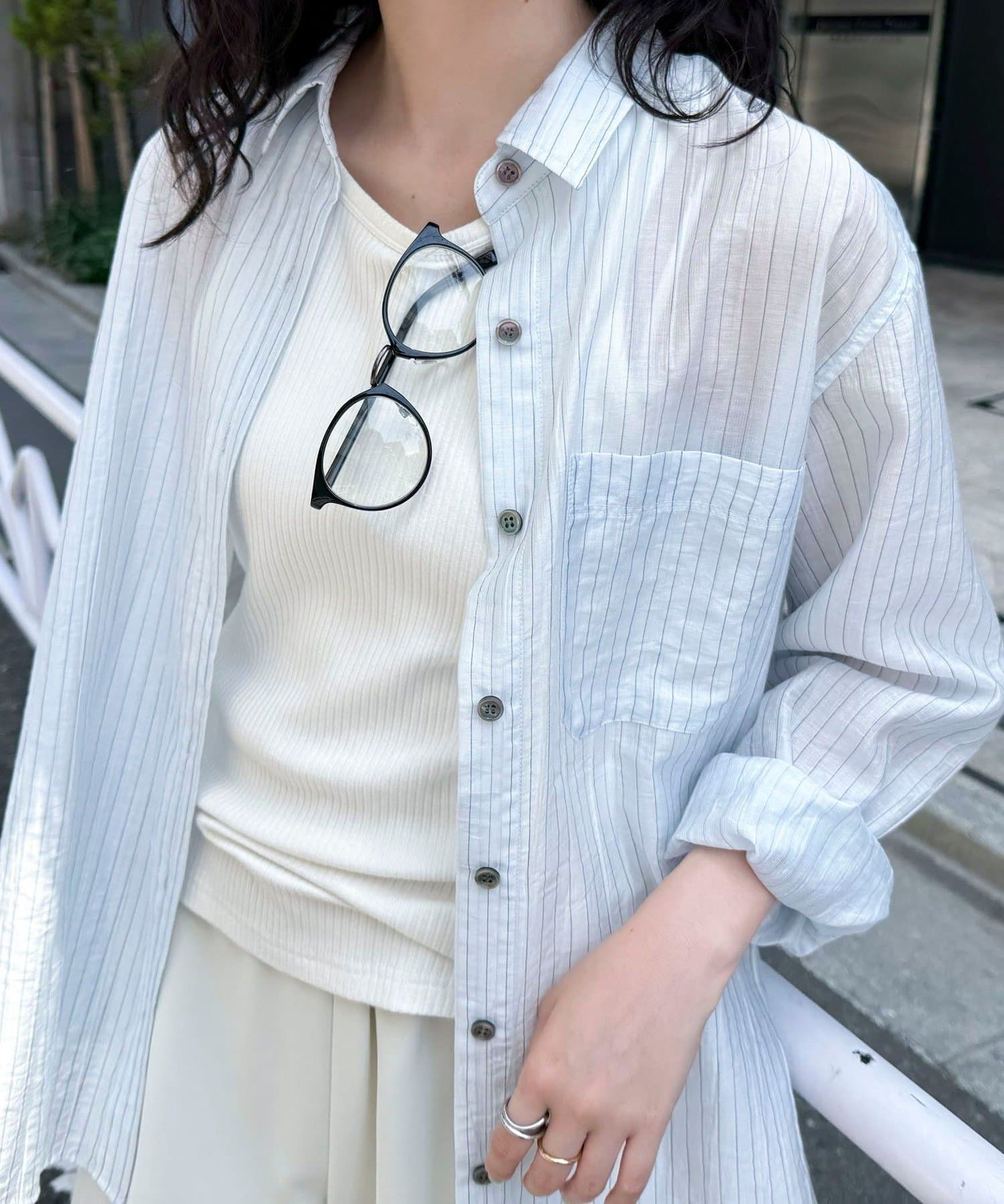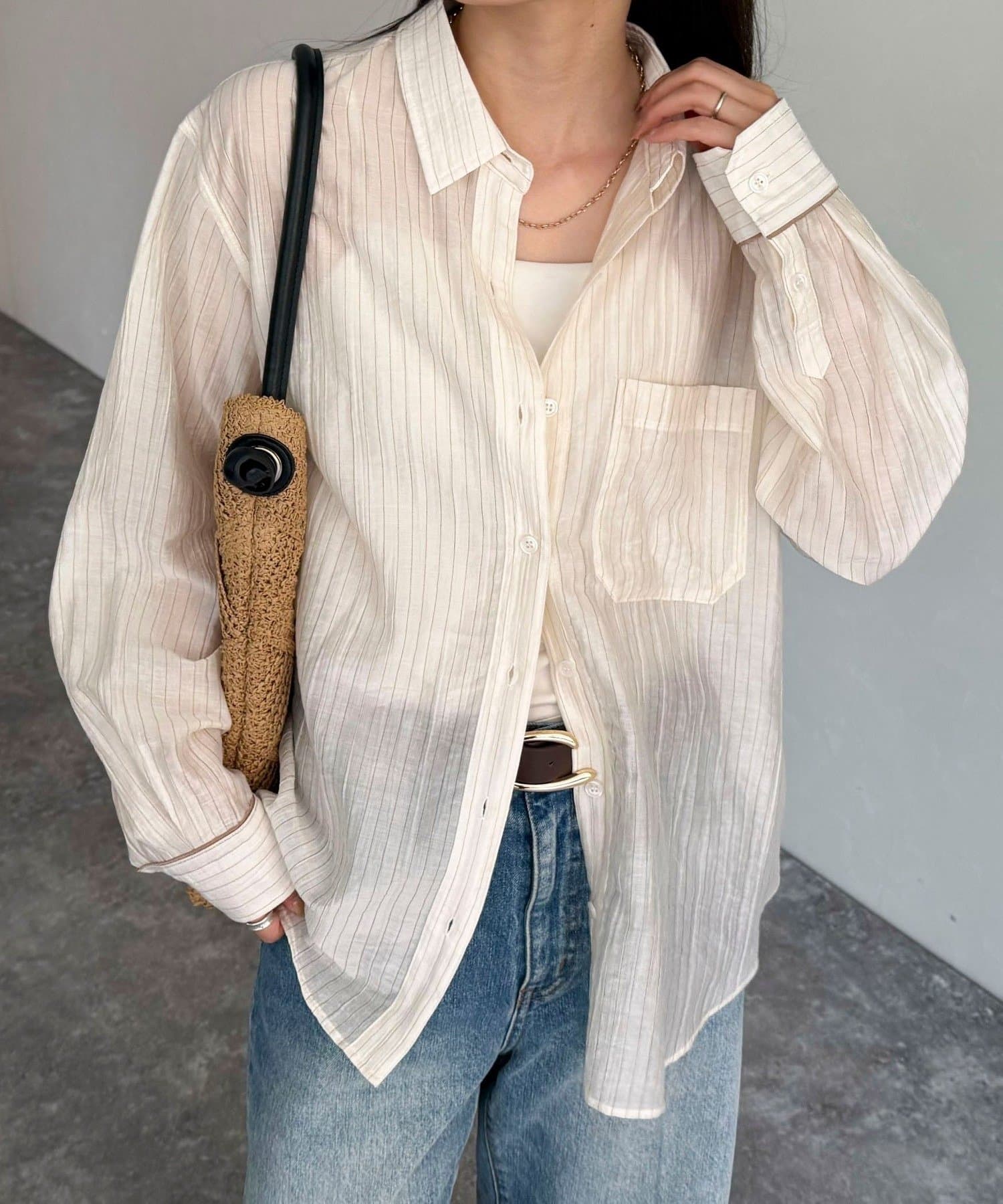 ・程よい透け感が抜け感を演出し、インナーとのレイヤードでさまざまな着こなしが楽しめます