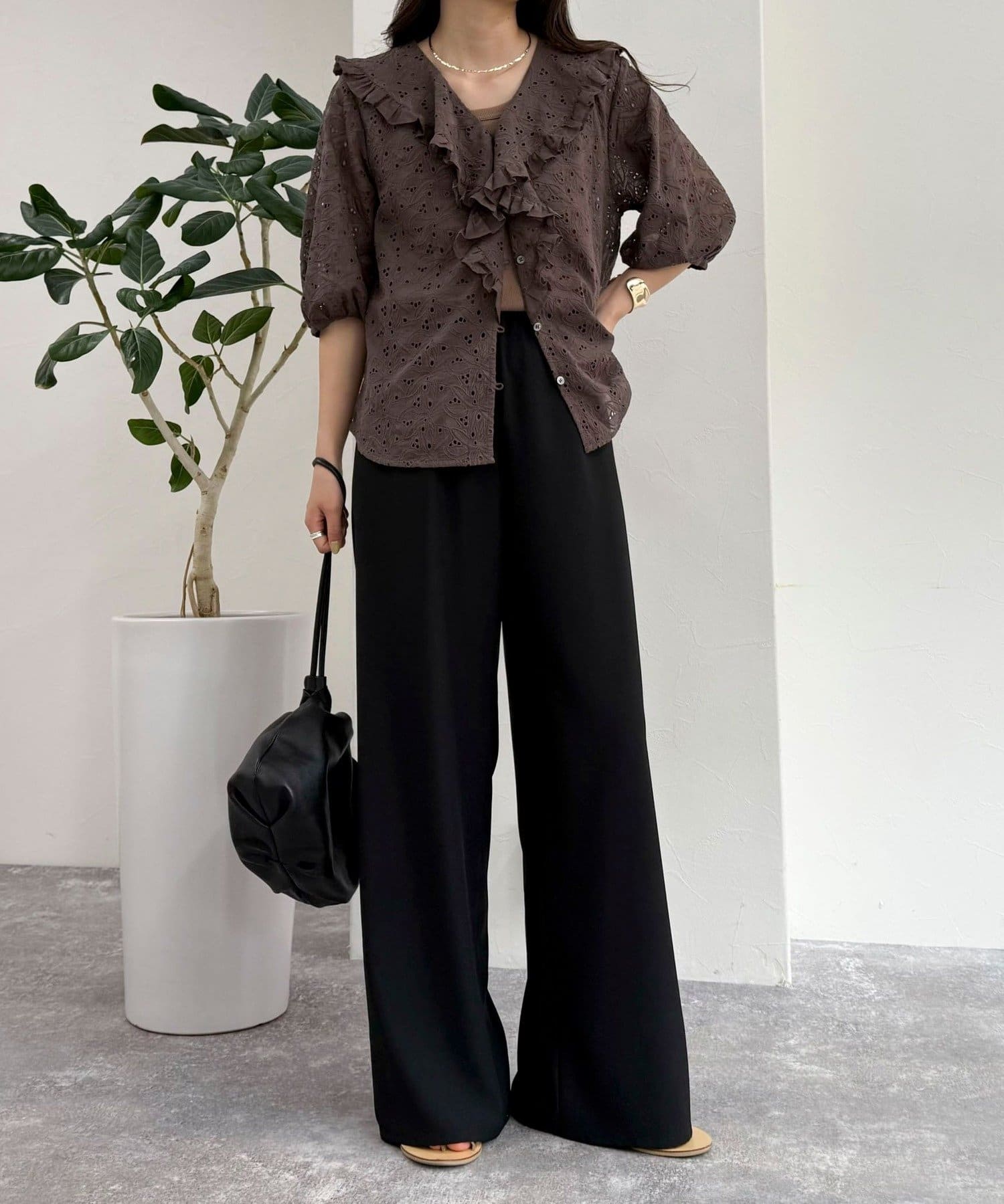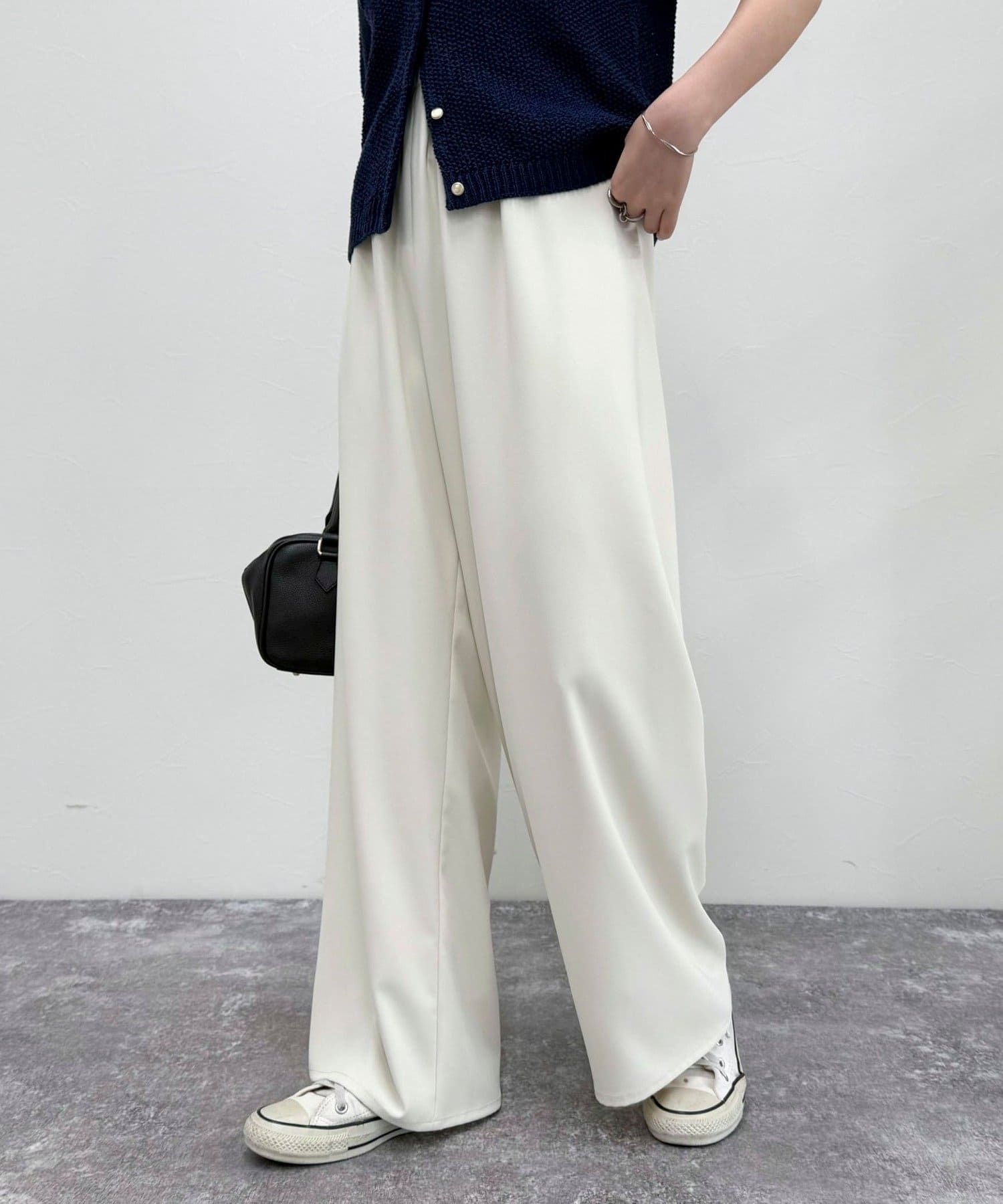 シンプルなのに洗練された印象を与えてくれるイージーパンツ