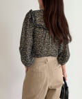 ・袖口はゴム仕様でふんわりとしたシルエットに仕上げ、手元を華やかに見せるデザイン