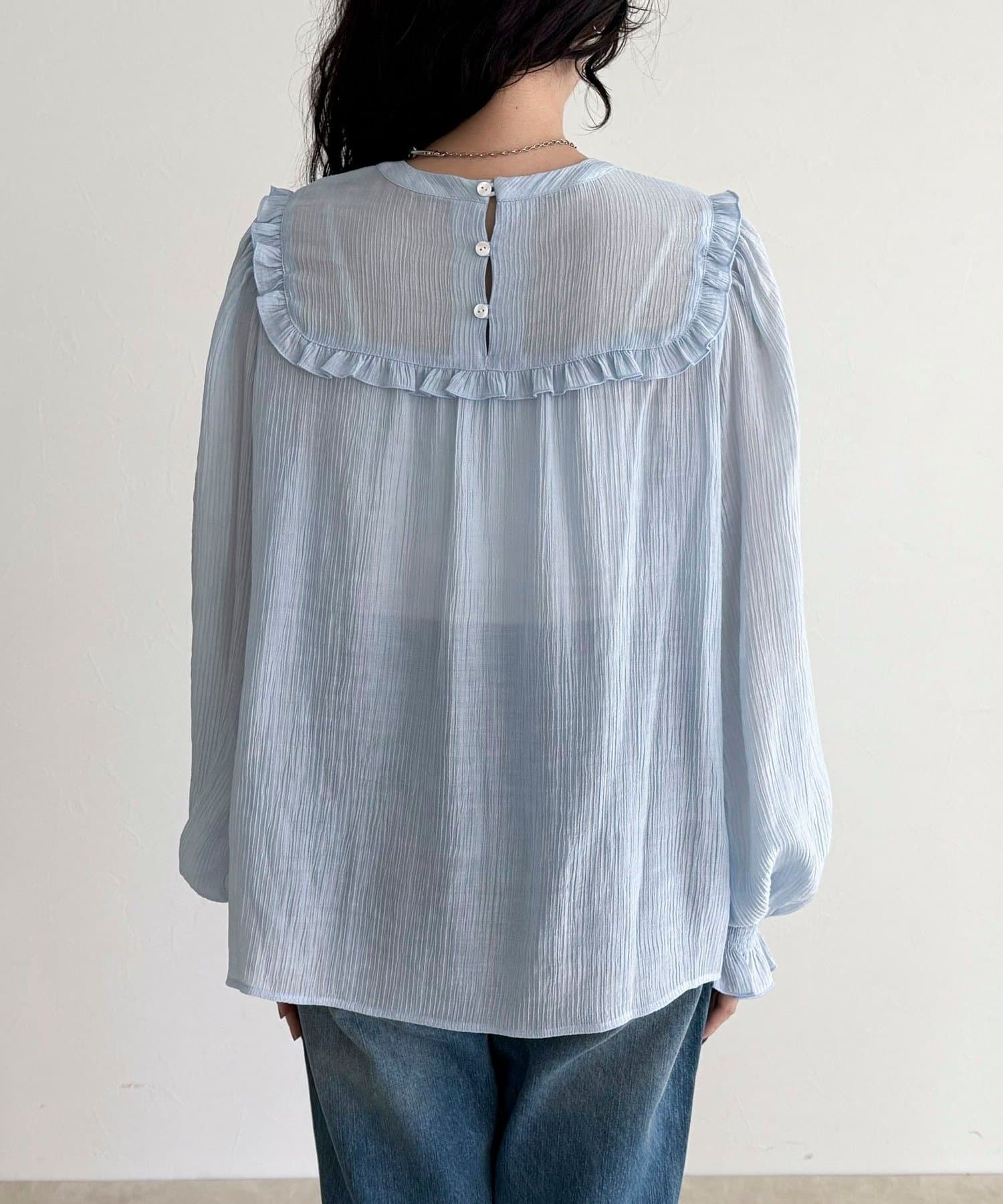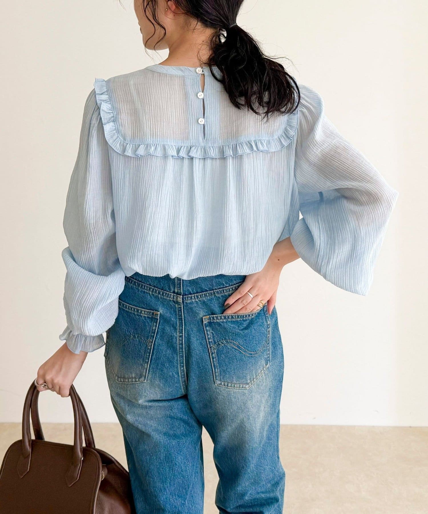・軽やかで程よい透け感のある素材が上品な抜け感をプラス
