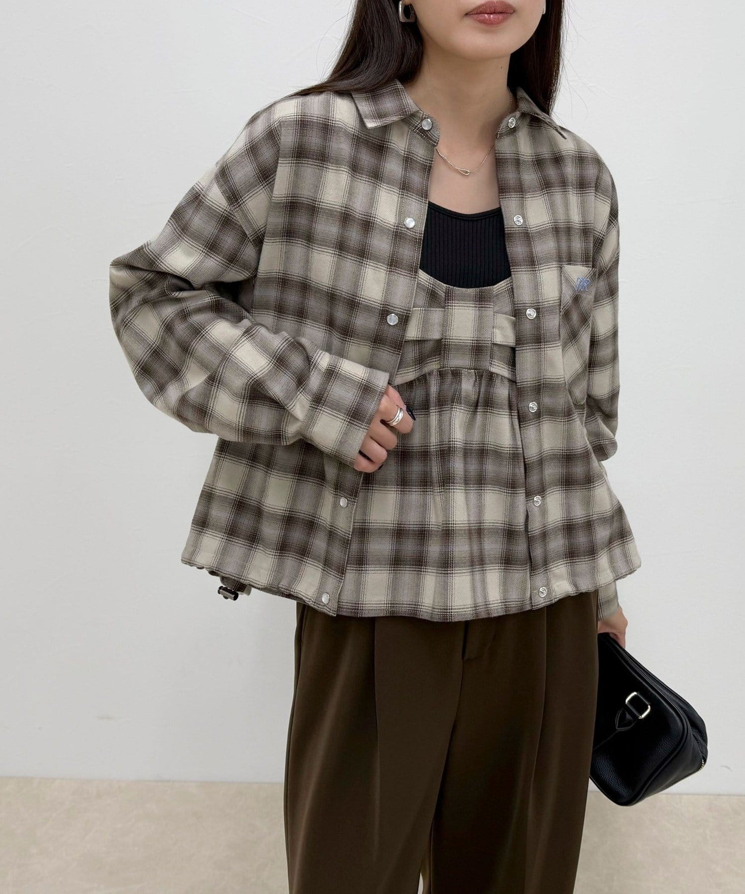 (5-0021-5-21-201 オンブレーチェックシャツブルゾン)