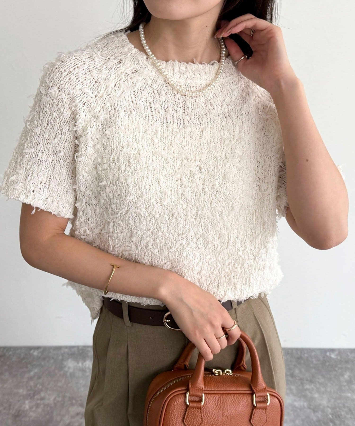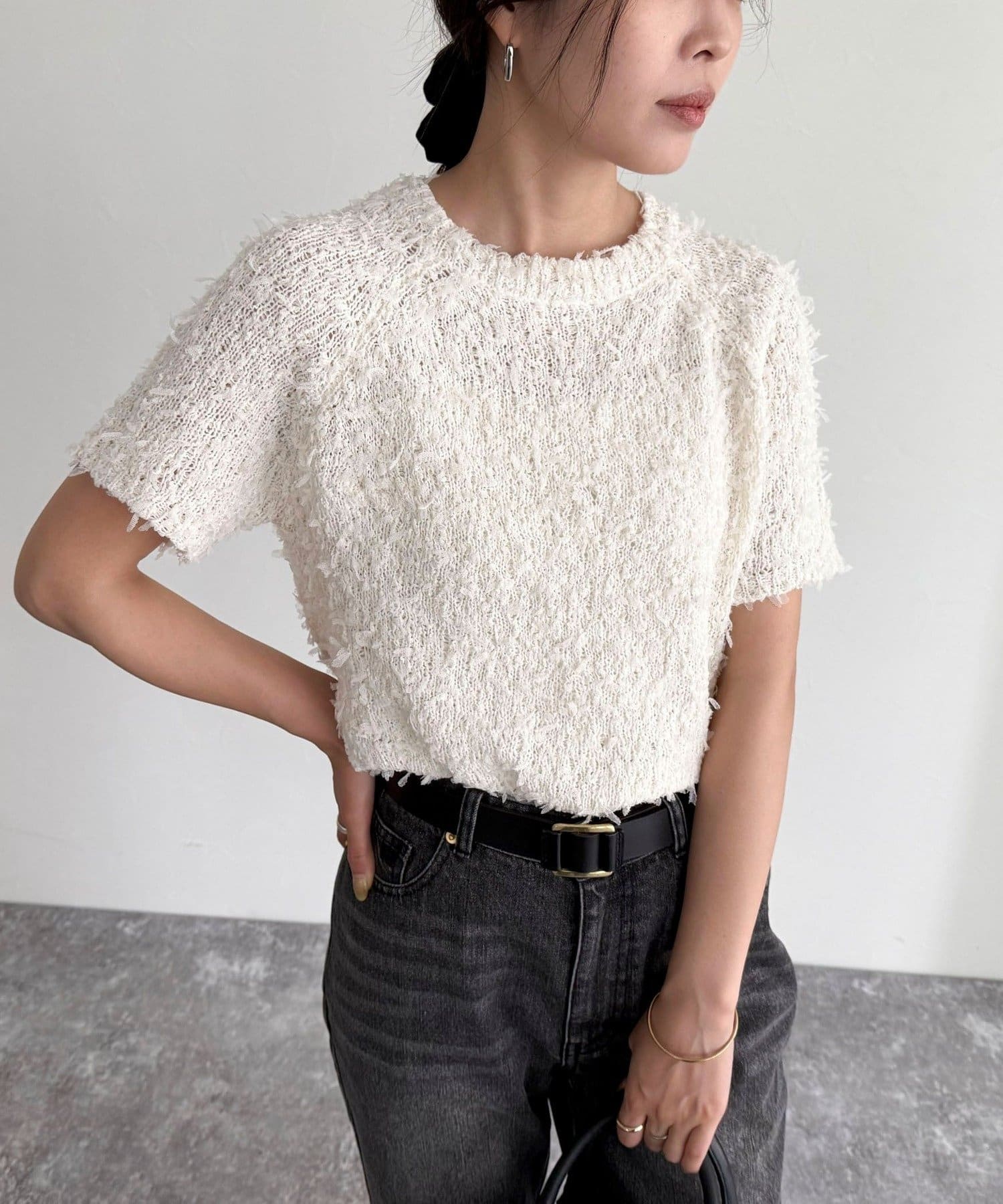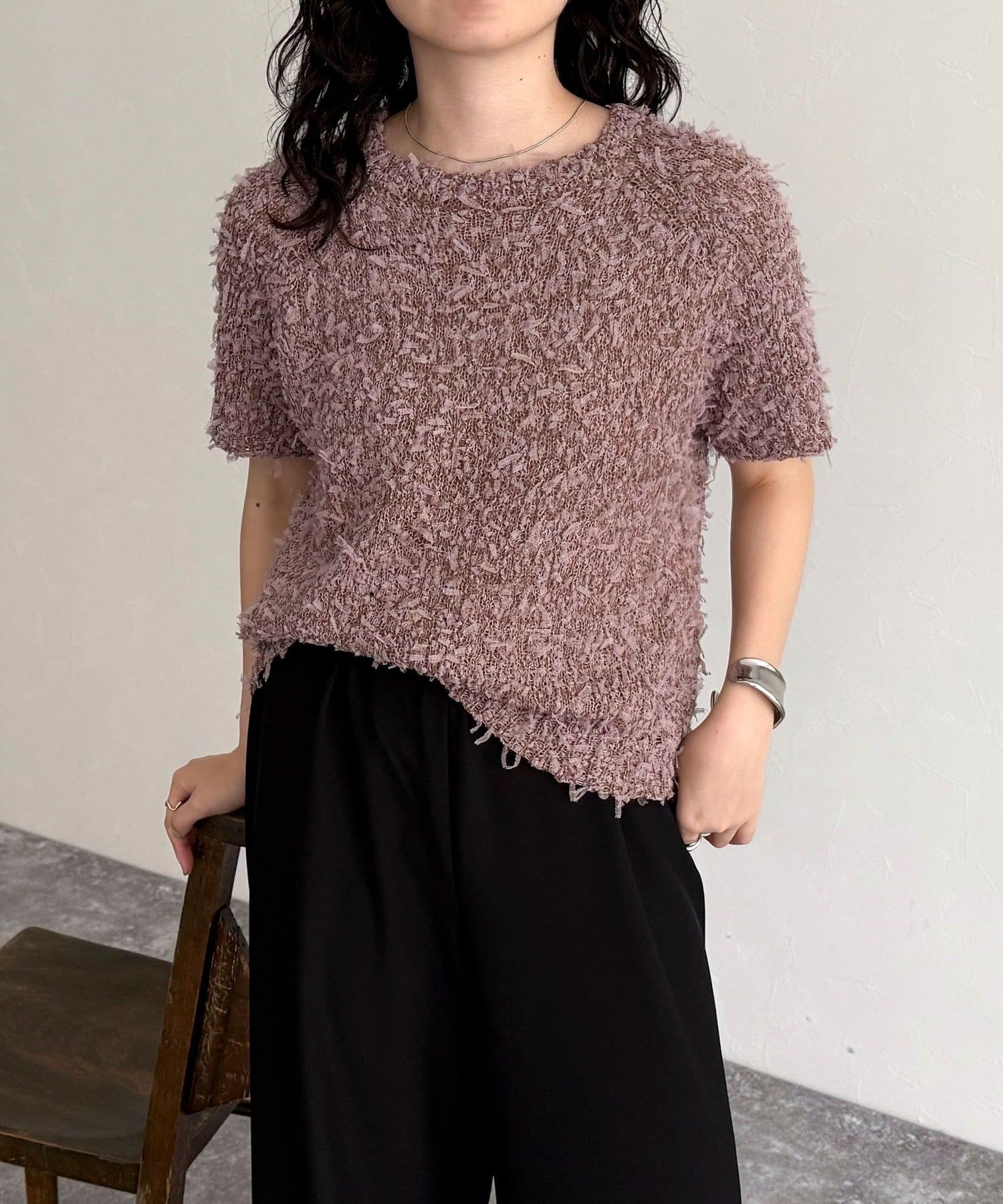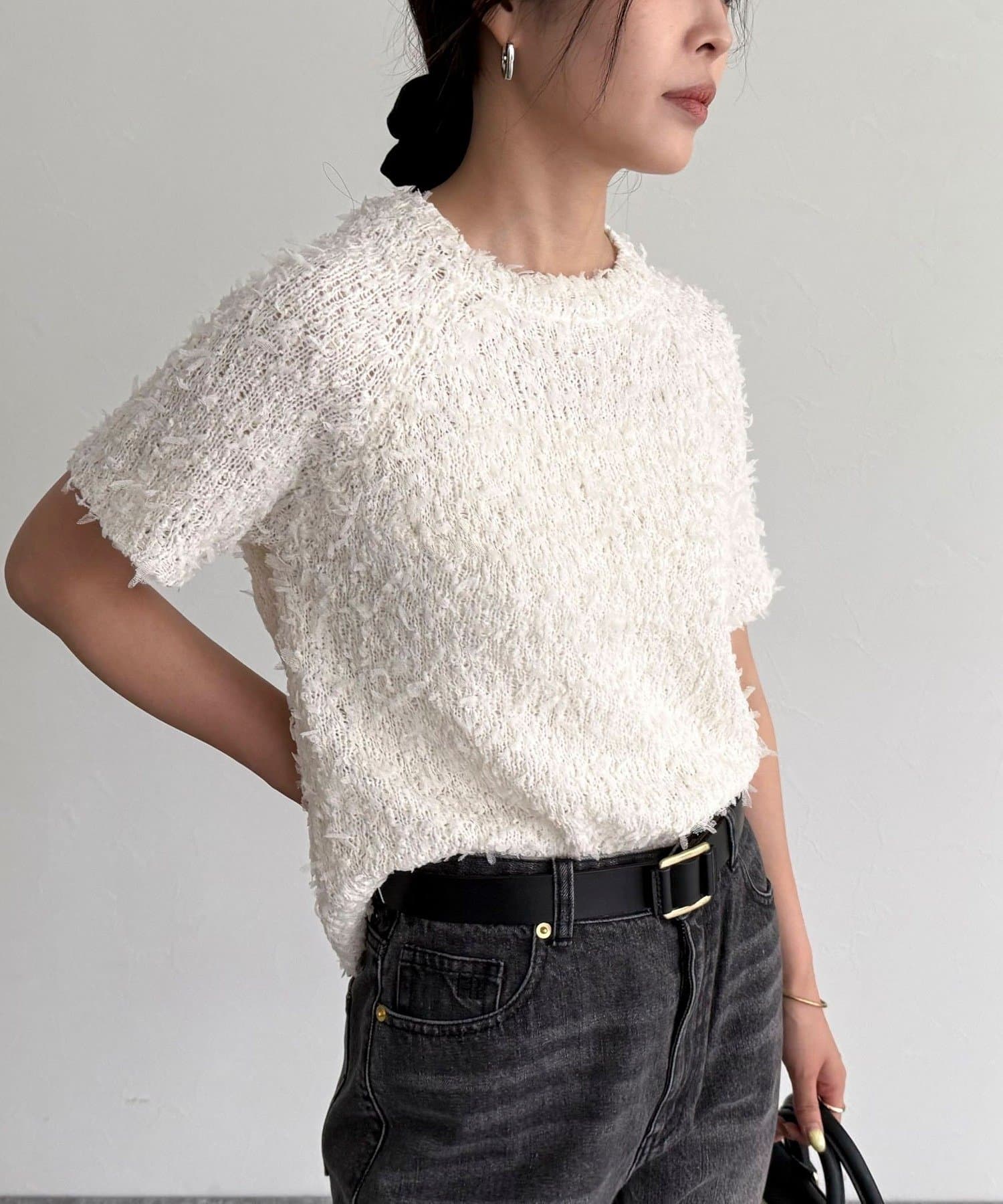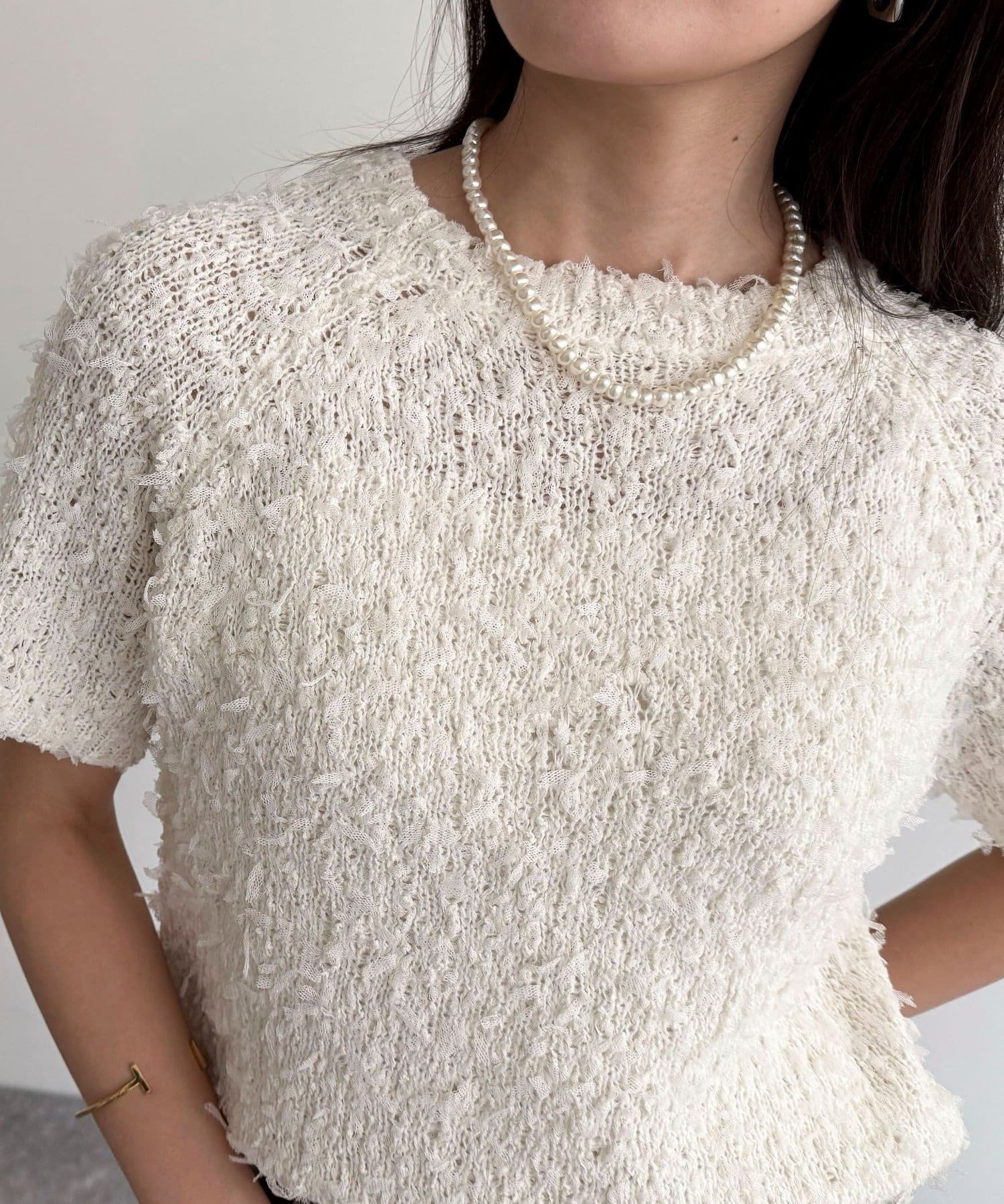 TOP > FREDY & GLOSTER > レディース > トップス > ニット/セーター > チュールテープ半袖ニットプルオーバー