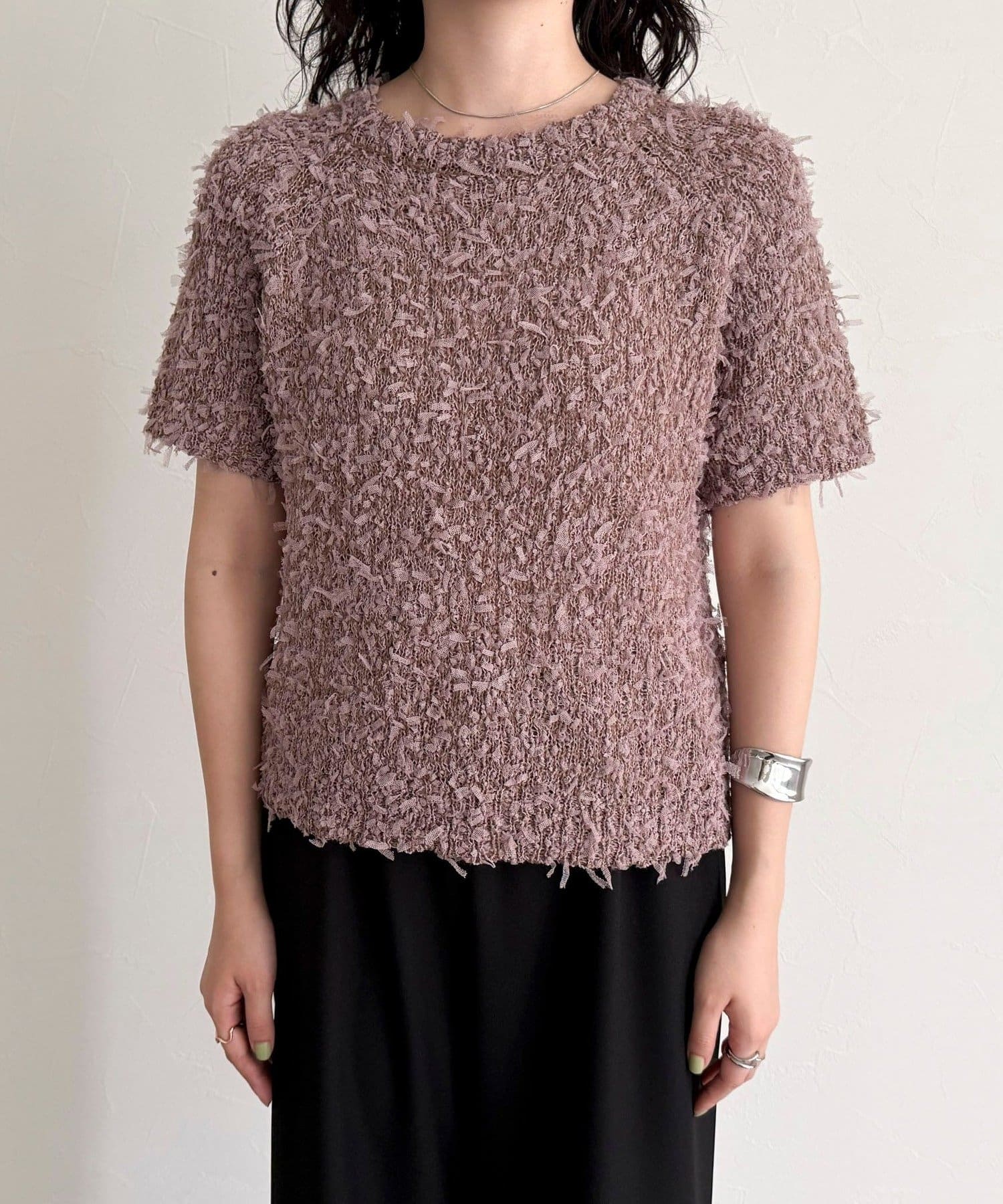 • FREDY & GLOSTER(フレディ アンド グロスター) チュールテープ半袖ニットプルオーバー