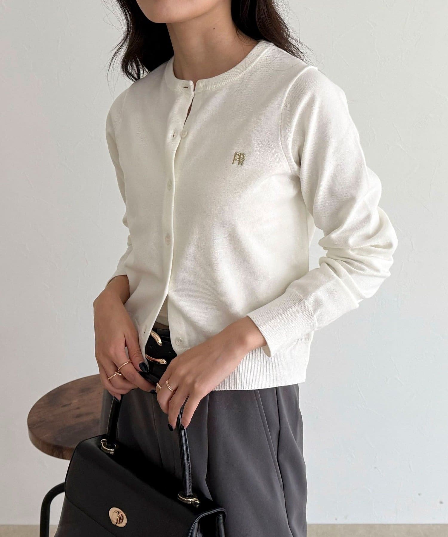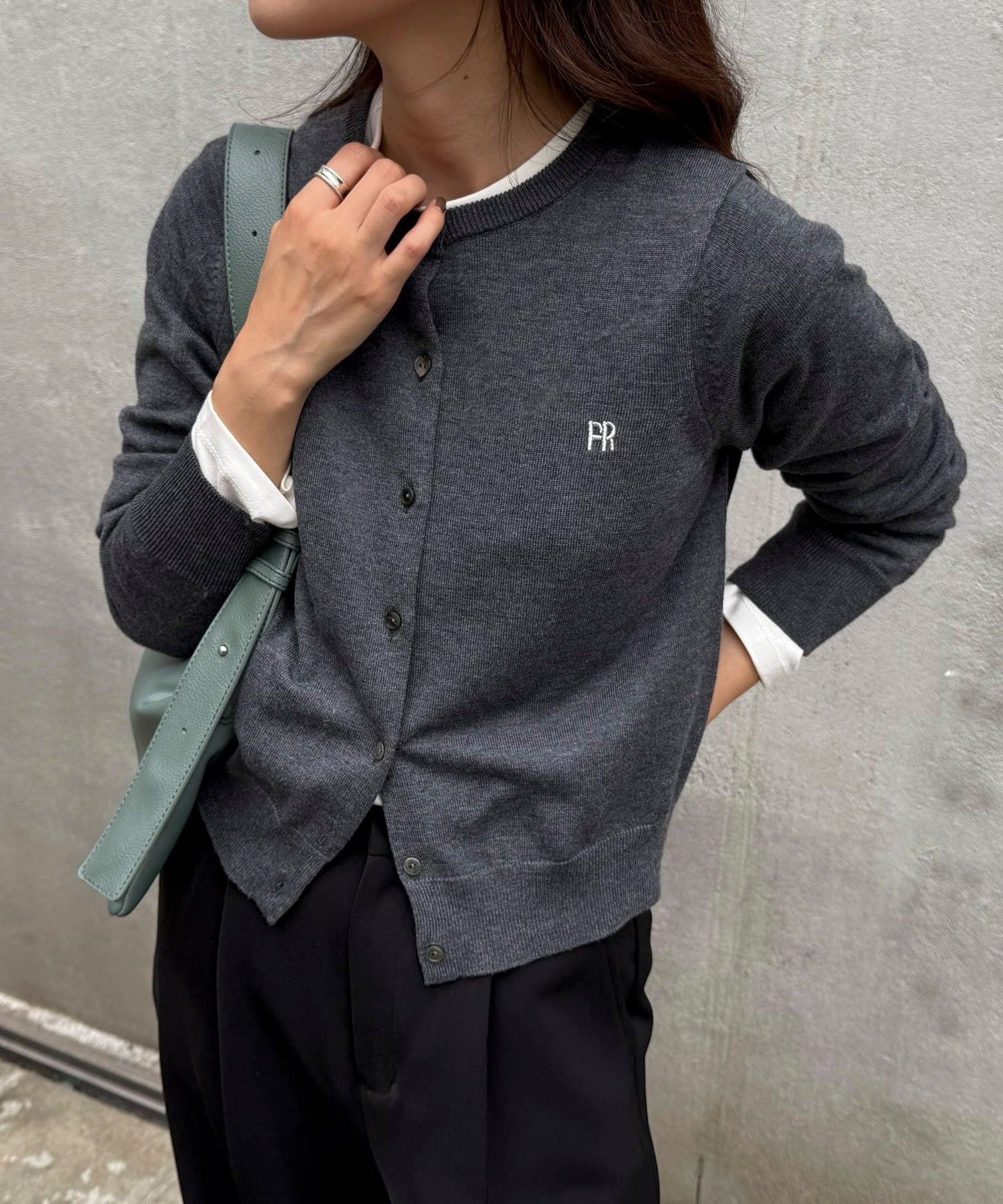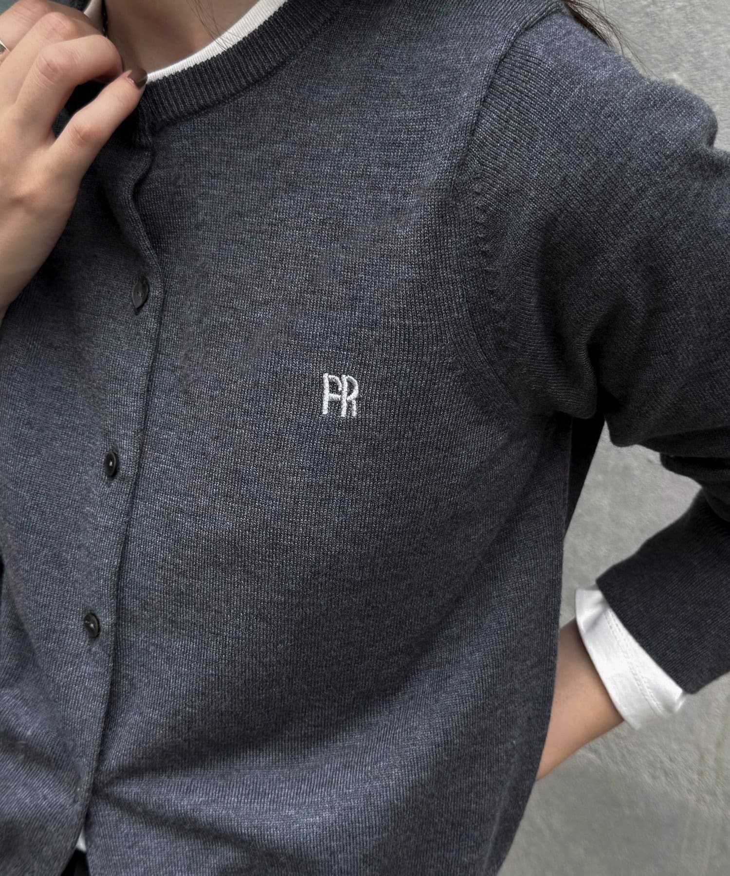 ・胸元のFR刺繍がアクセントのベーシックカーディガン