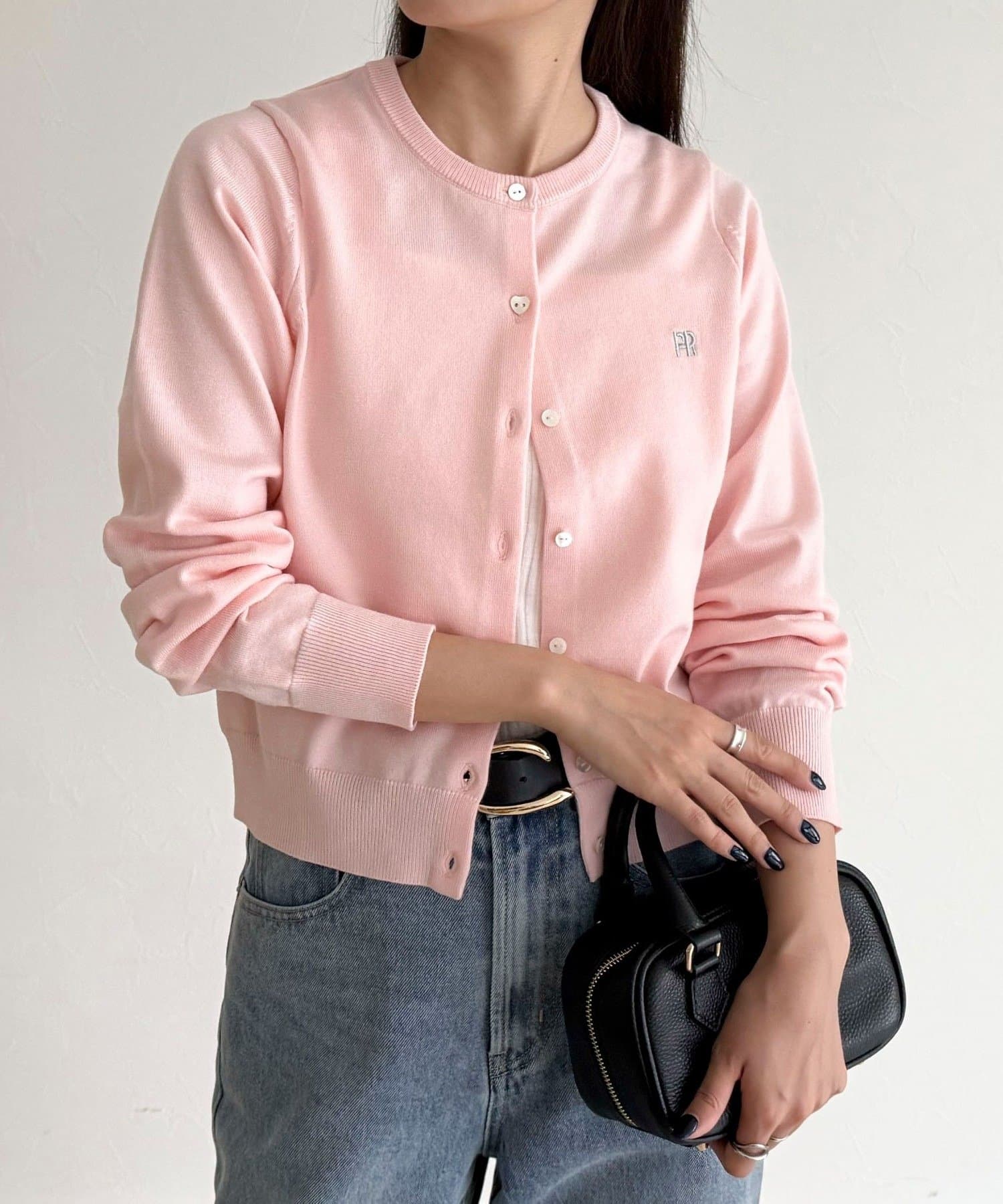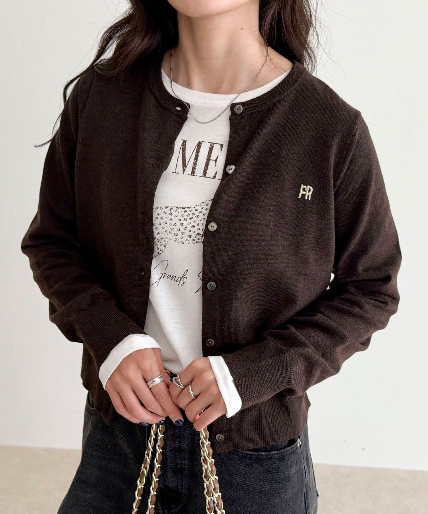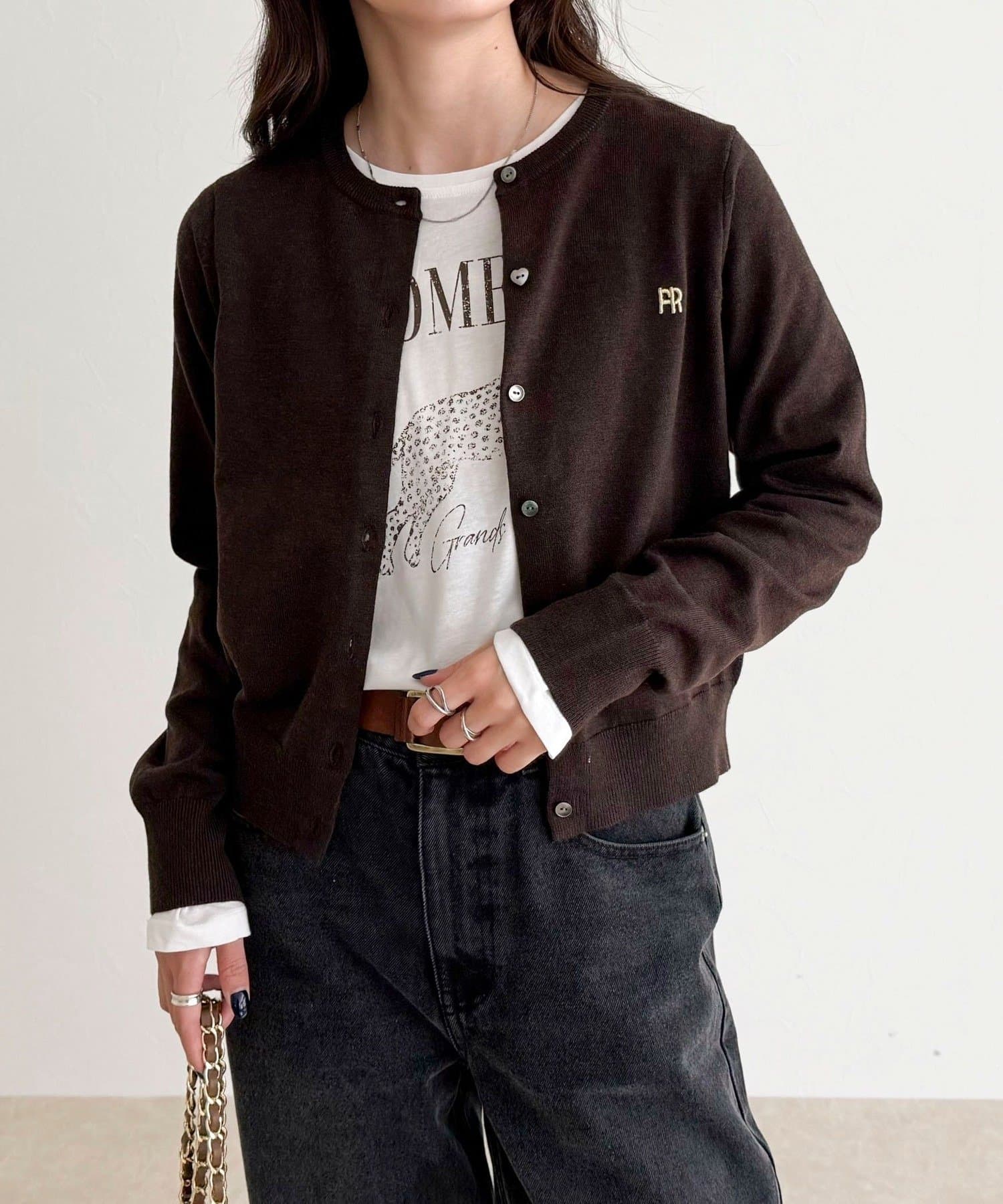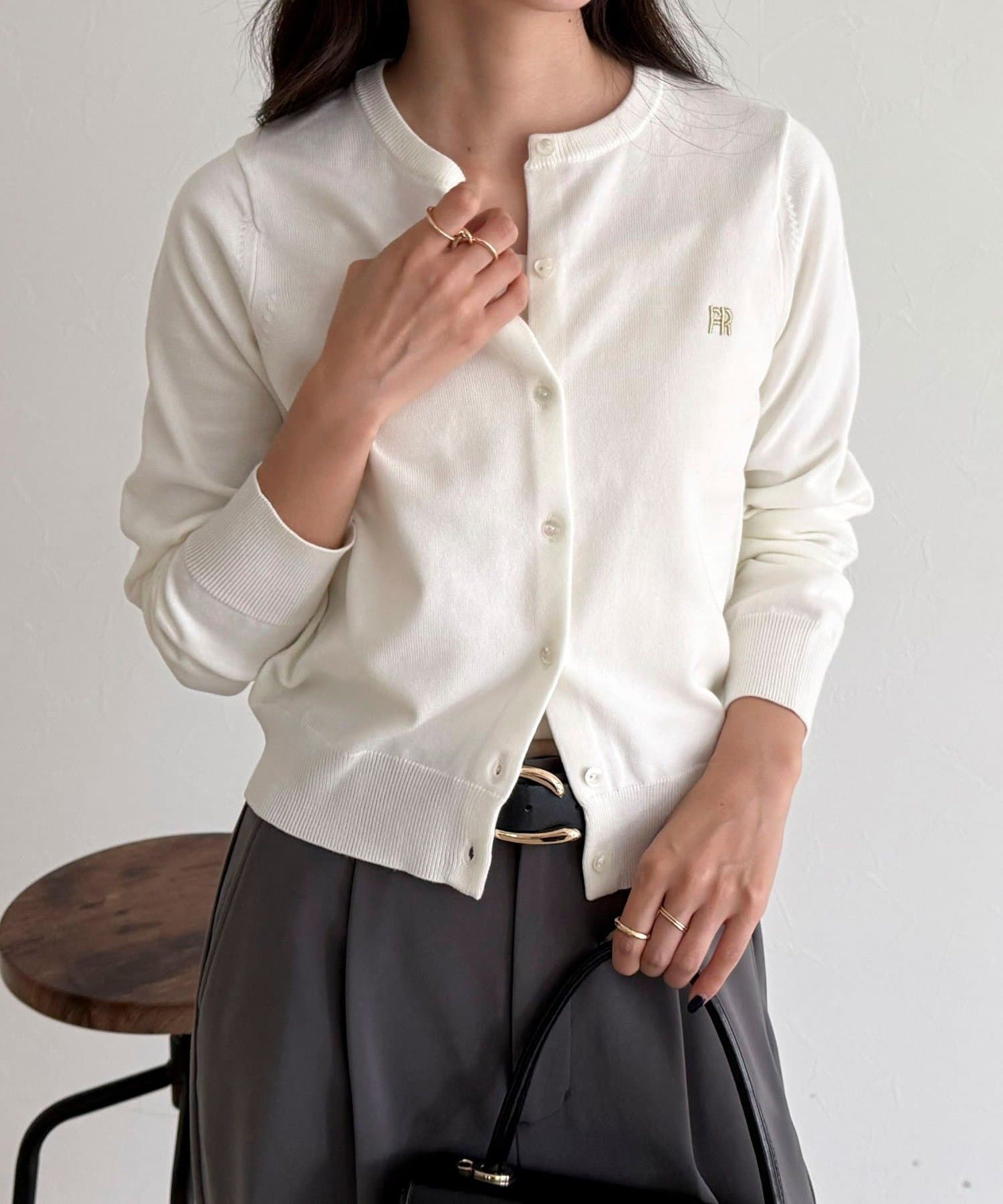・胸元のFR刺繍がアクセントのベーシックカーディガン