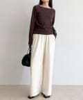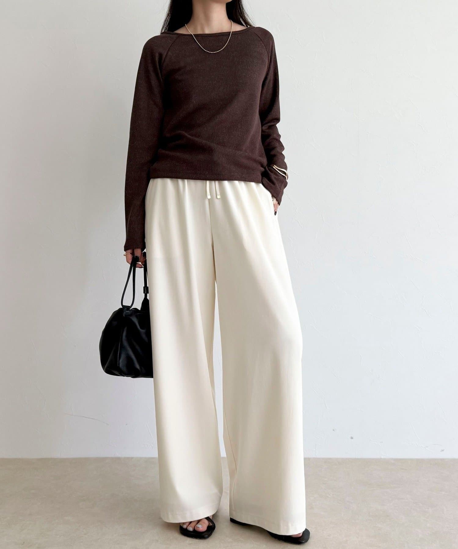 ・ボートネックのネックラインが首元をすっきりと見せ、女性らしいシルエットに