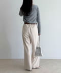 *この製品は、生地の特性上引っかかると糸が飛び出しやすい傾向があります。着用時にはベルトやバック、周囲の壁など表面の粗いものとの摩擦や引っかかりにご注意ください。